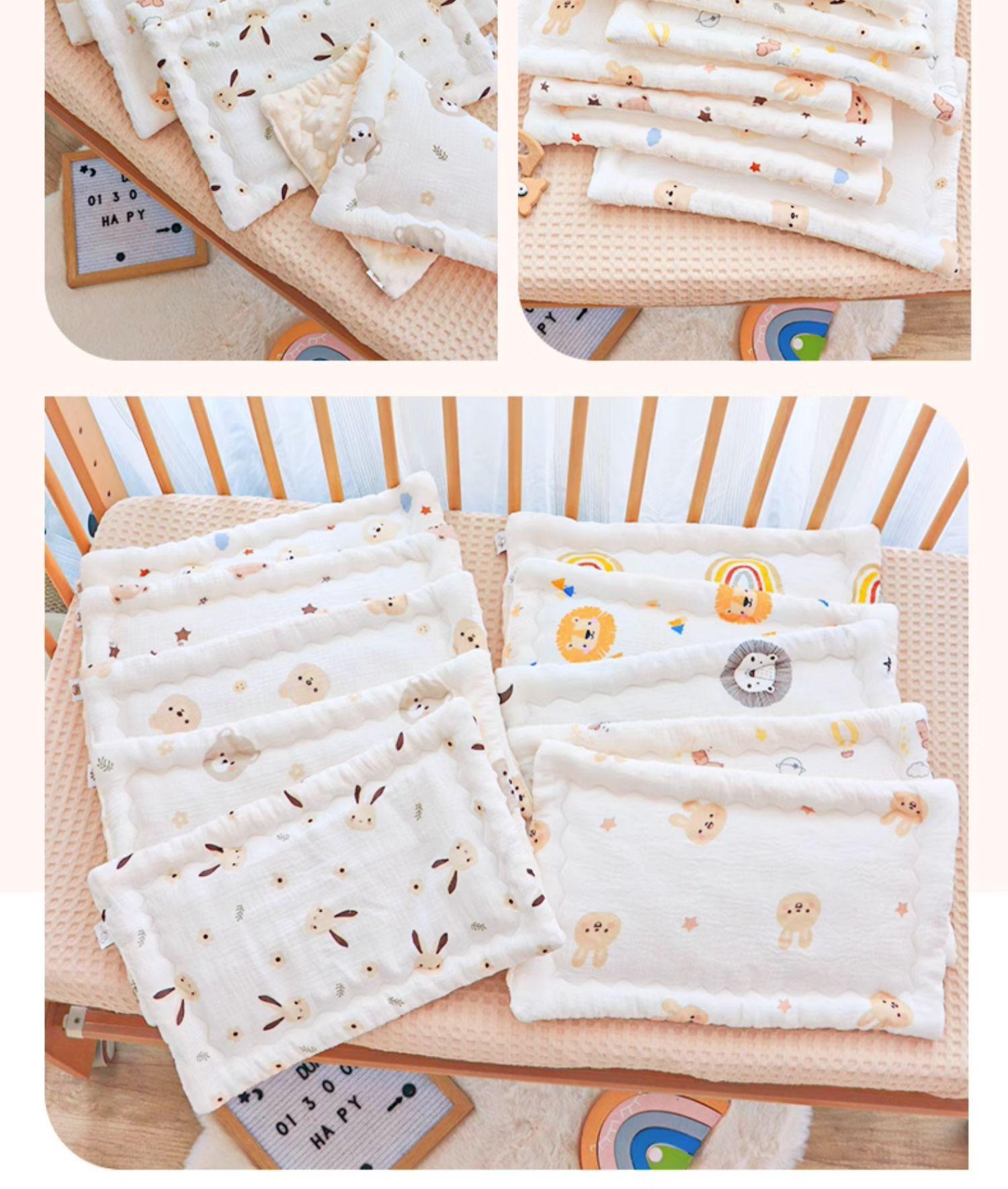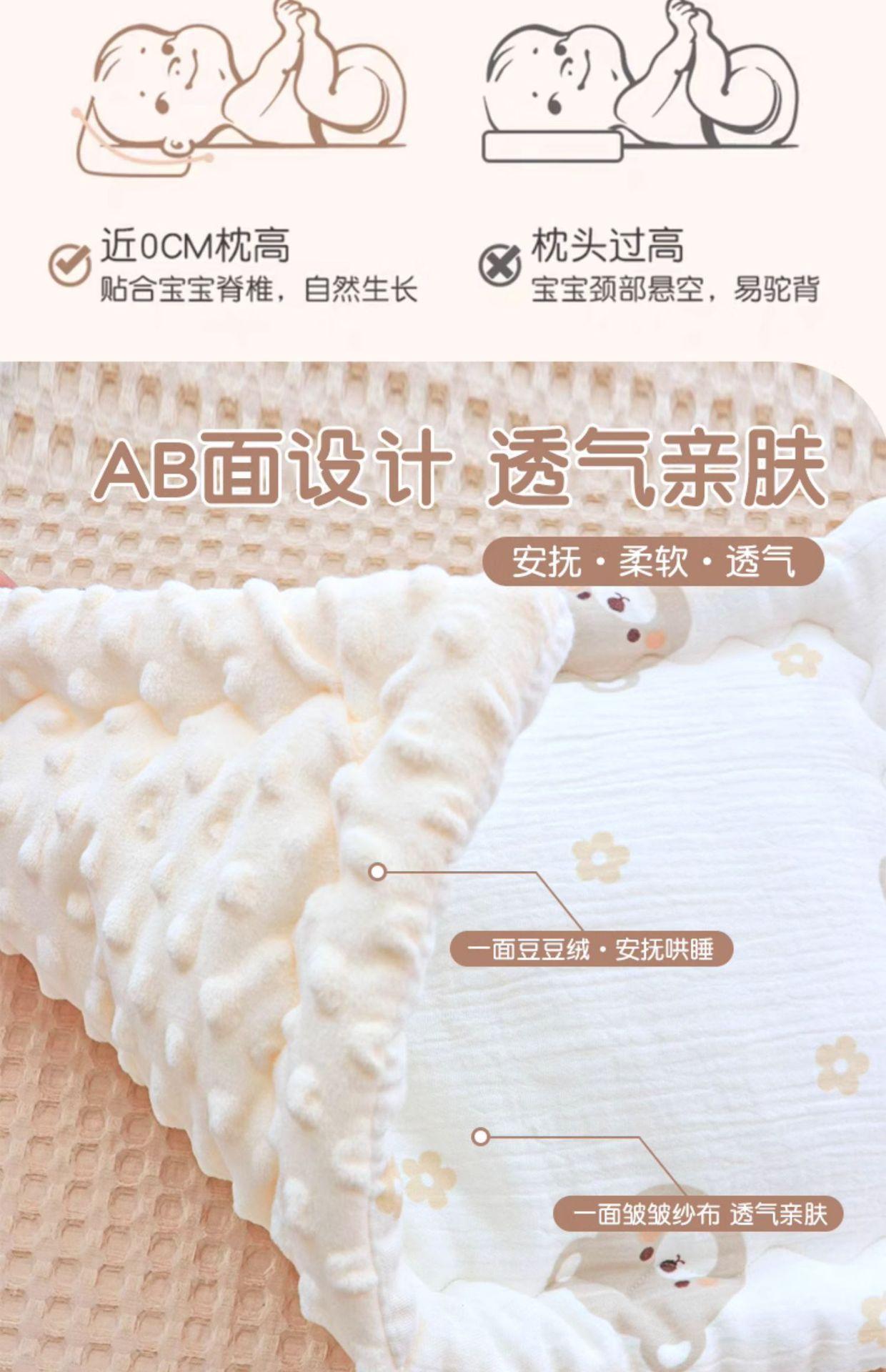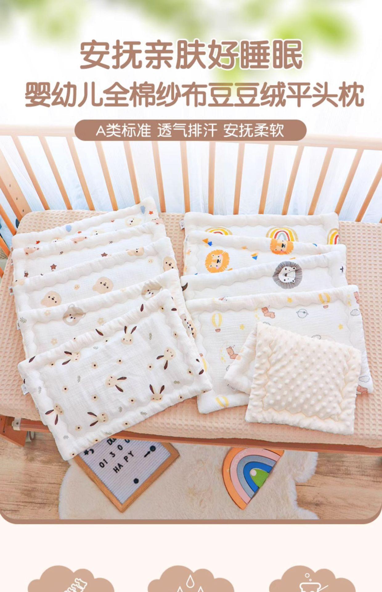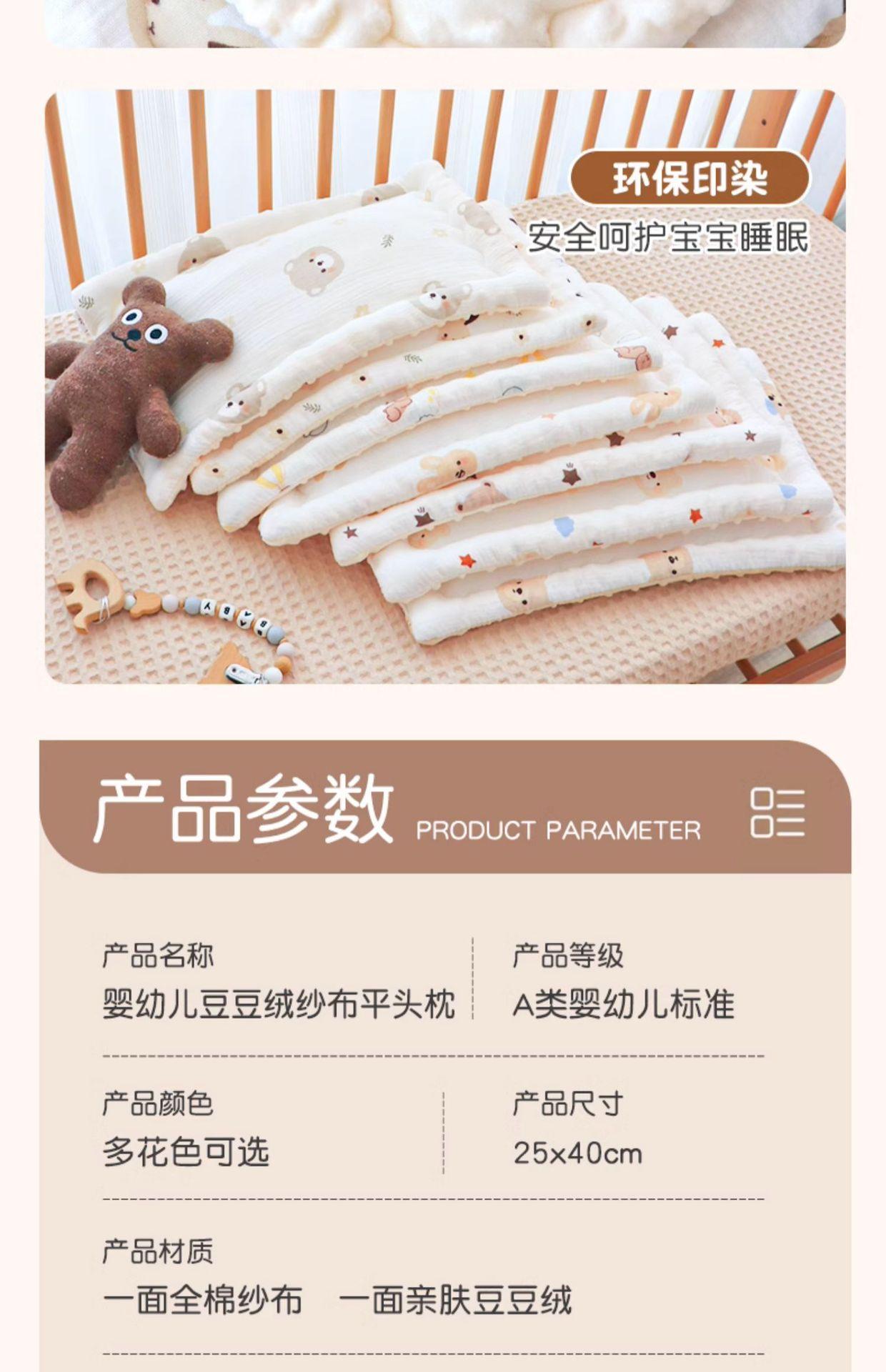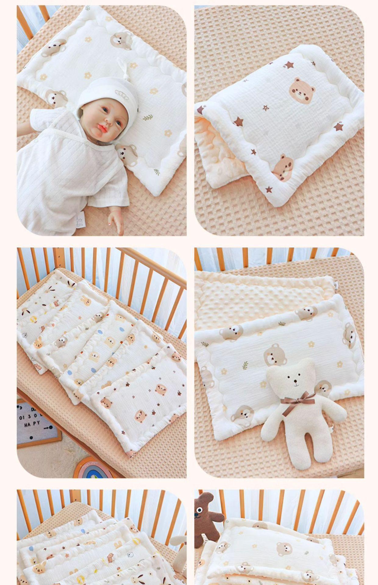 Almohada para Bebé Recién Nacido Algodón Puro Terciopelo de Frijol Almohada Plana Funda de Almohada 0-12 Meses Almohada Cojín para Bebé Infantil Universal para Todas las Estaciones