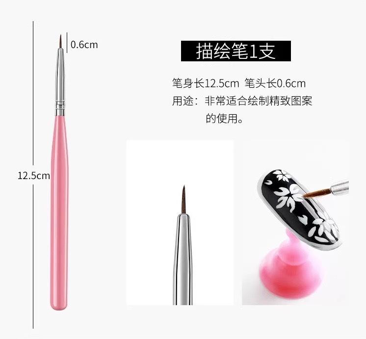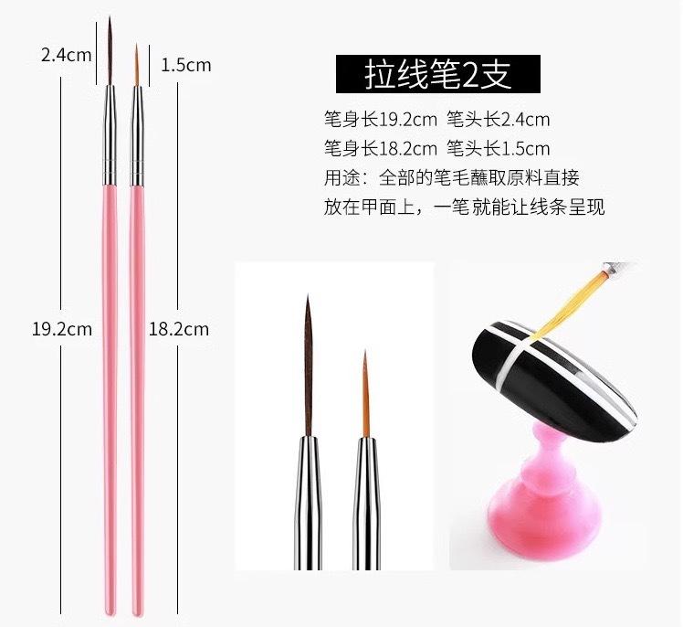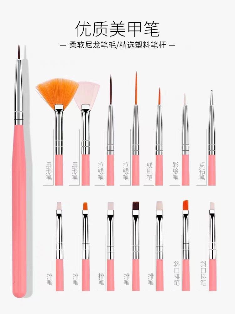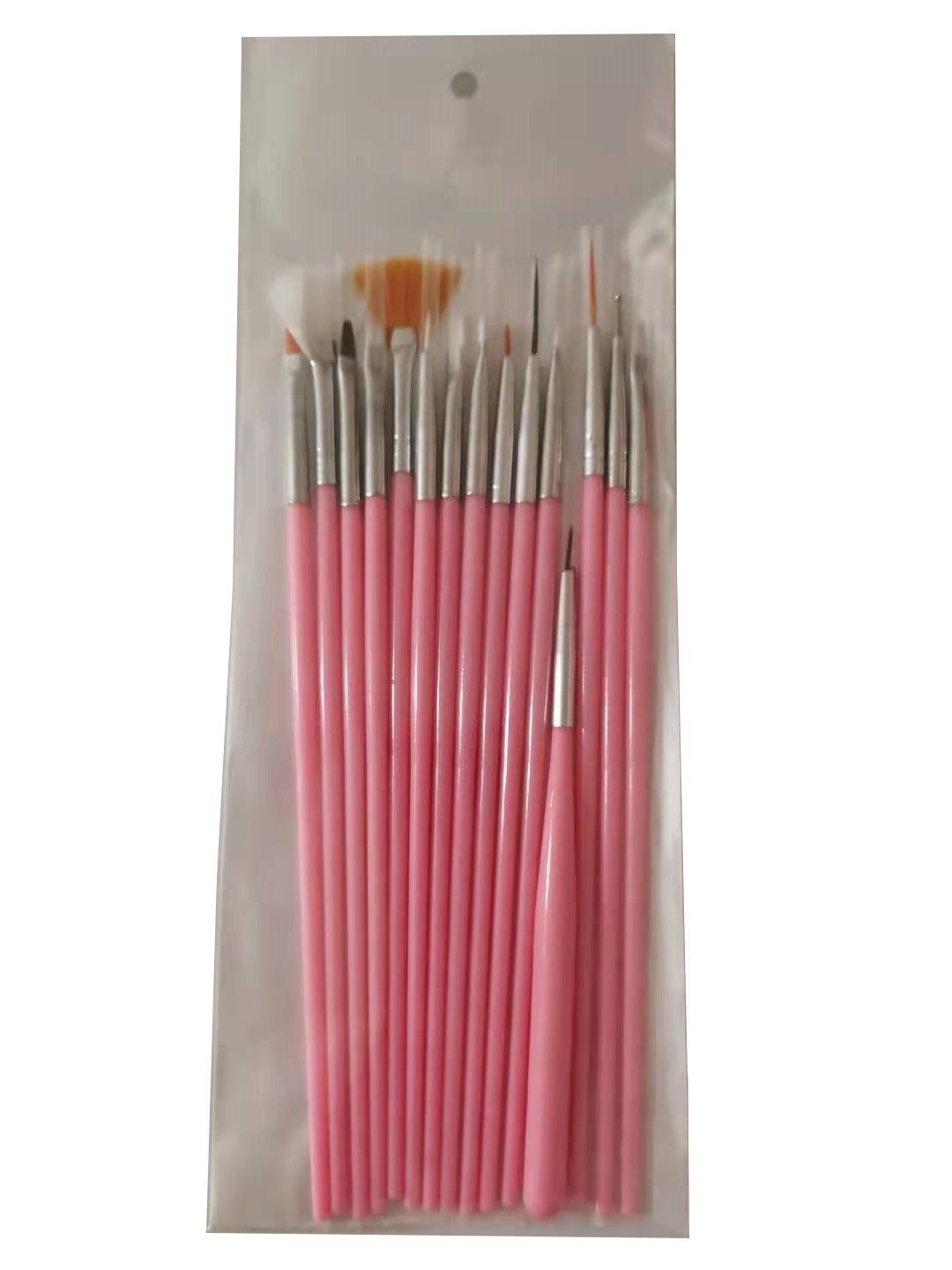 Nail art brush 1 pack of 15 pieces (pink)