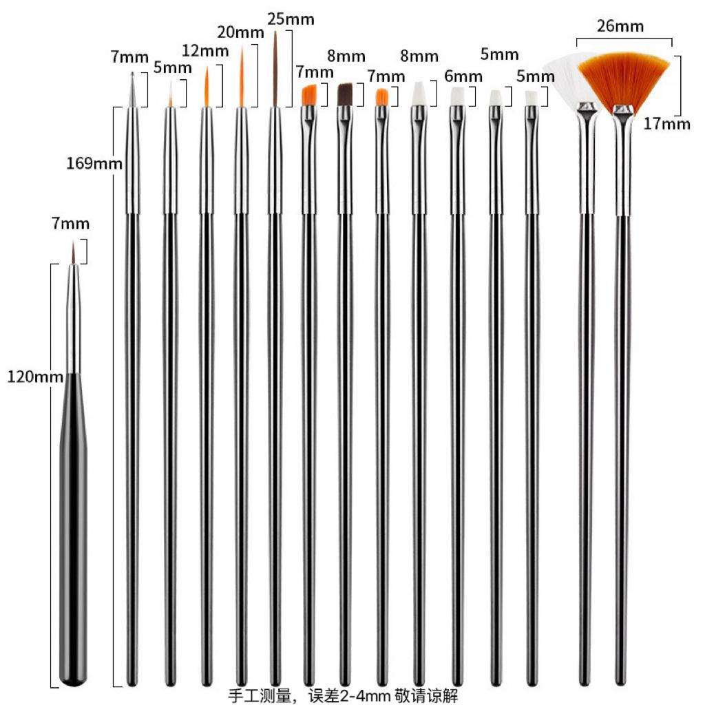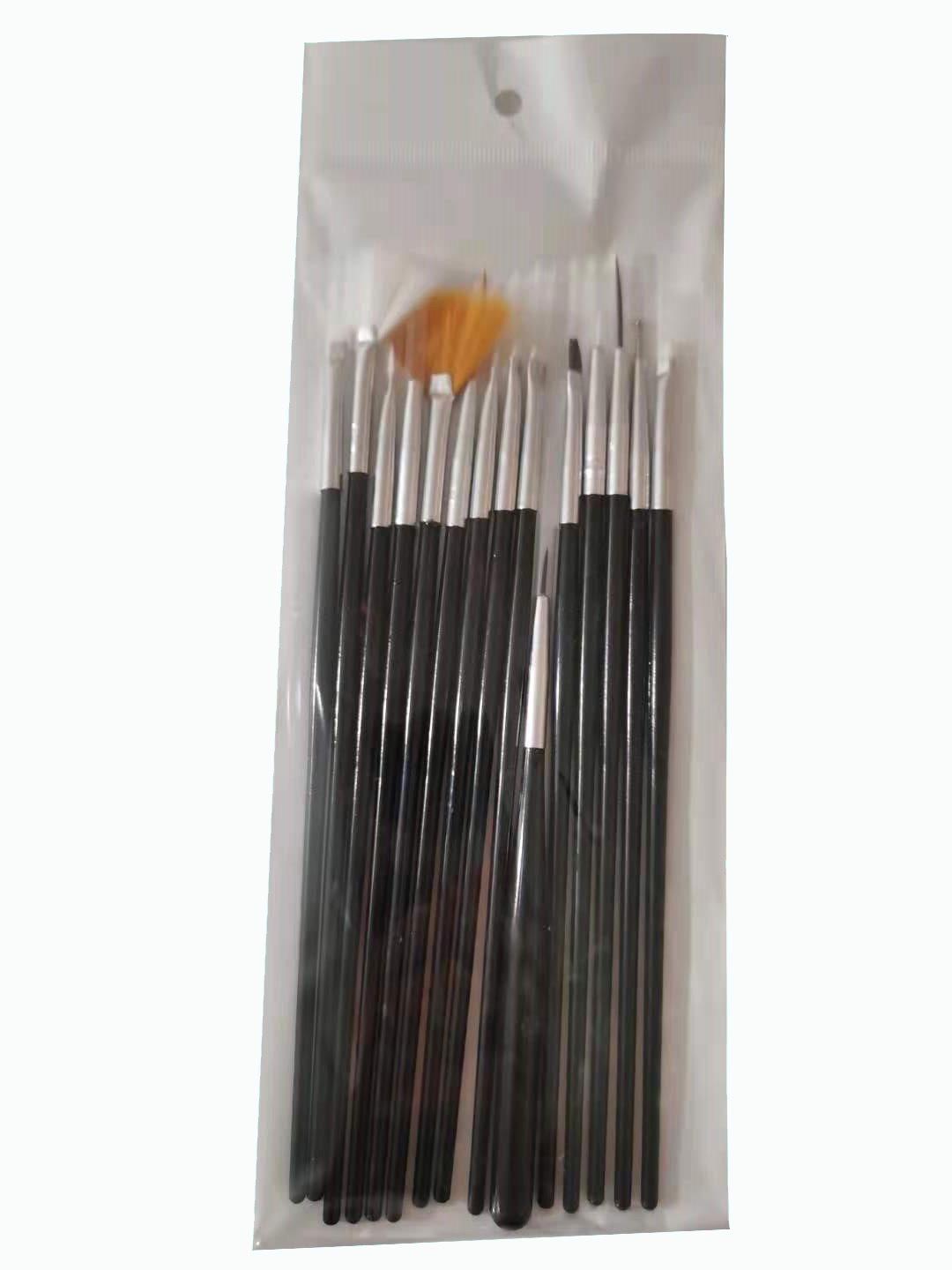 Nail art brush 1 pack of 15 pieces (black)