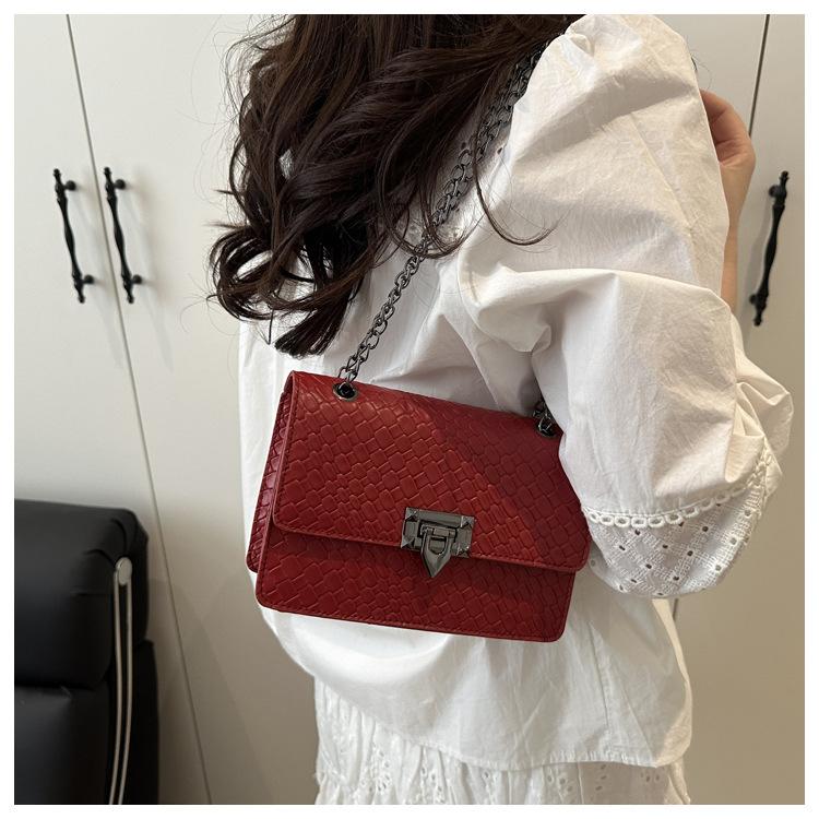 Bolso Cuadrado Pequeño de Cadena Moda Urbana Elegante Patrón de Piedra Bandolera Bolso de Mujer Verano Nuevo Casual Simple Bolso de Hombro