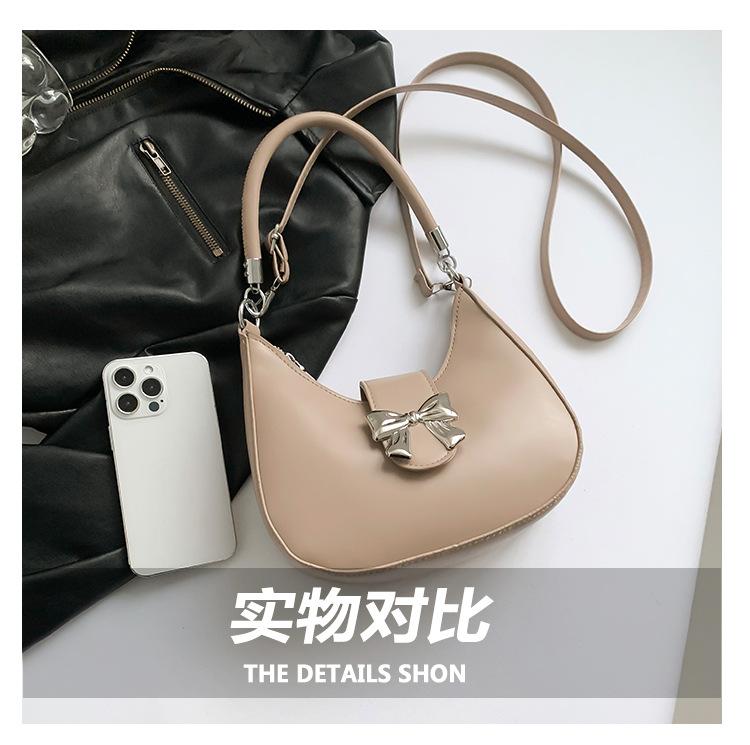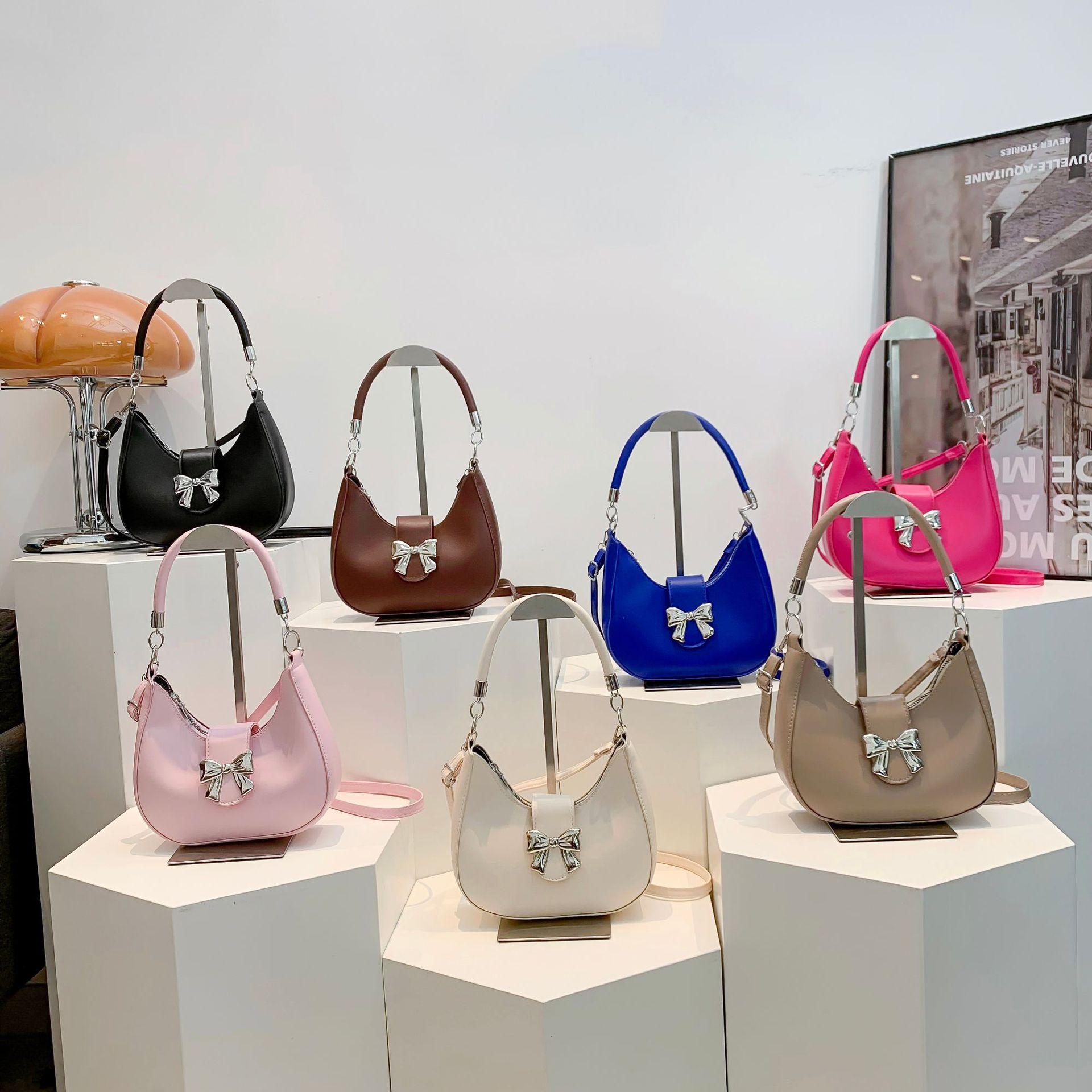 Bolso de Mujer de Moda Nicho Francés 2025 Nuevo Bolso de Axila Dulce Color Sólido Lazo Bolso de Mano Bolso Bandolera