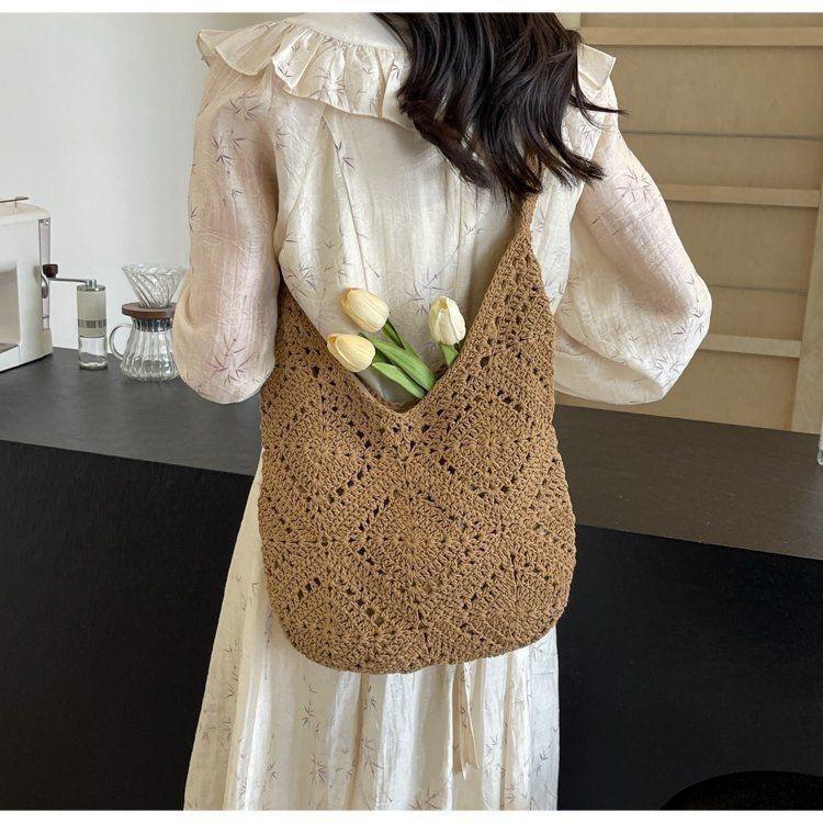 Bolso Tejido Artístico de Moda Bolso de Hombro para Mujer 2025 Nueva Moda Estilo Simple y Relajado Bolso Tote de Gran Capacidad