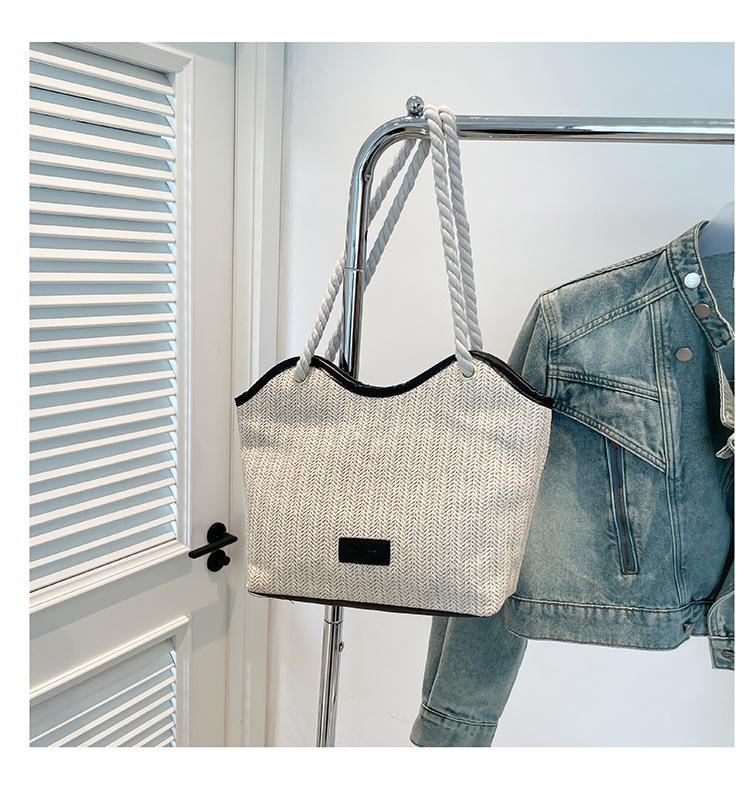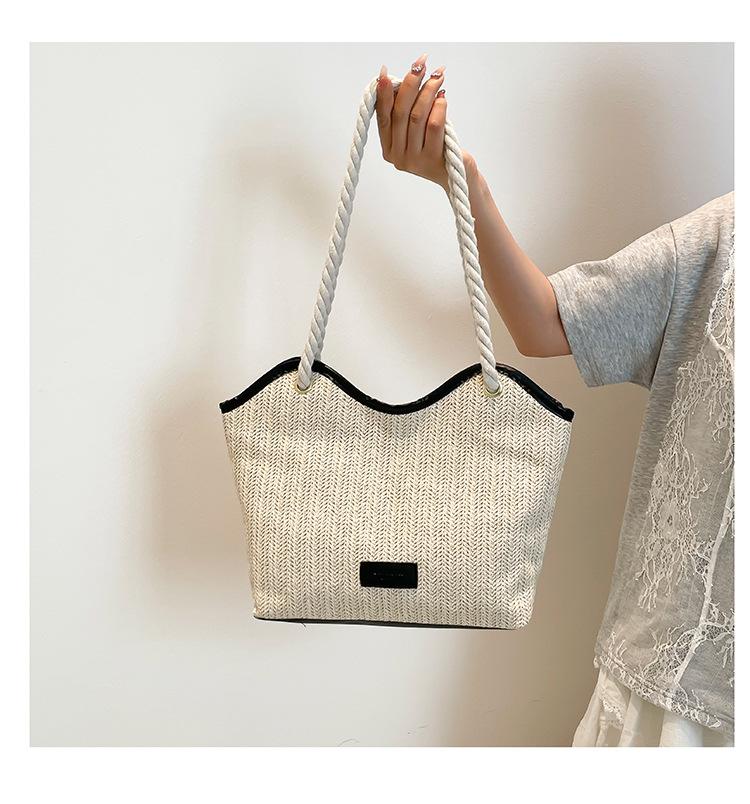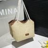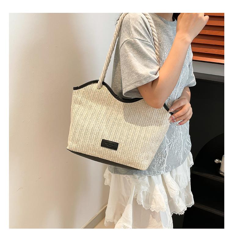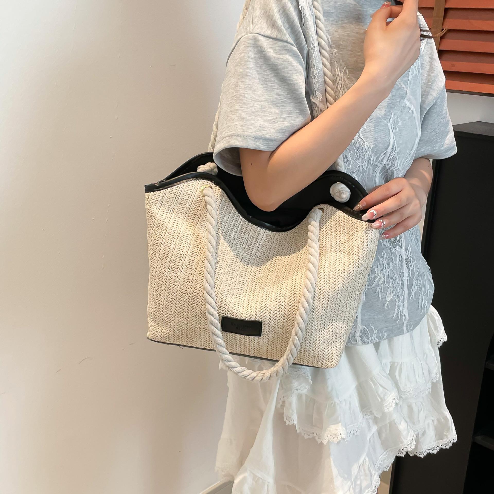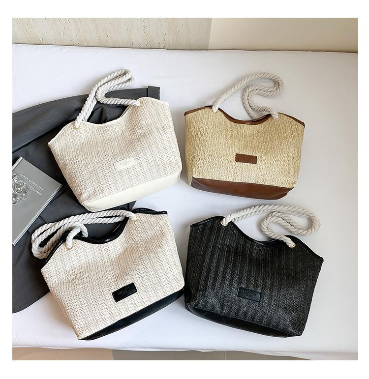 Bolso de Mano Retro Tejido Bolso Tote 2025 Gran Capacidad Bolso de Paja Simple Moda Trendy Nuevo Empalmado Bolso de Un Hombro