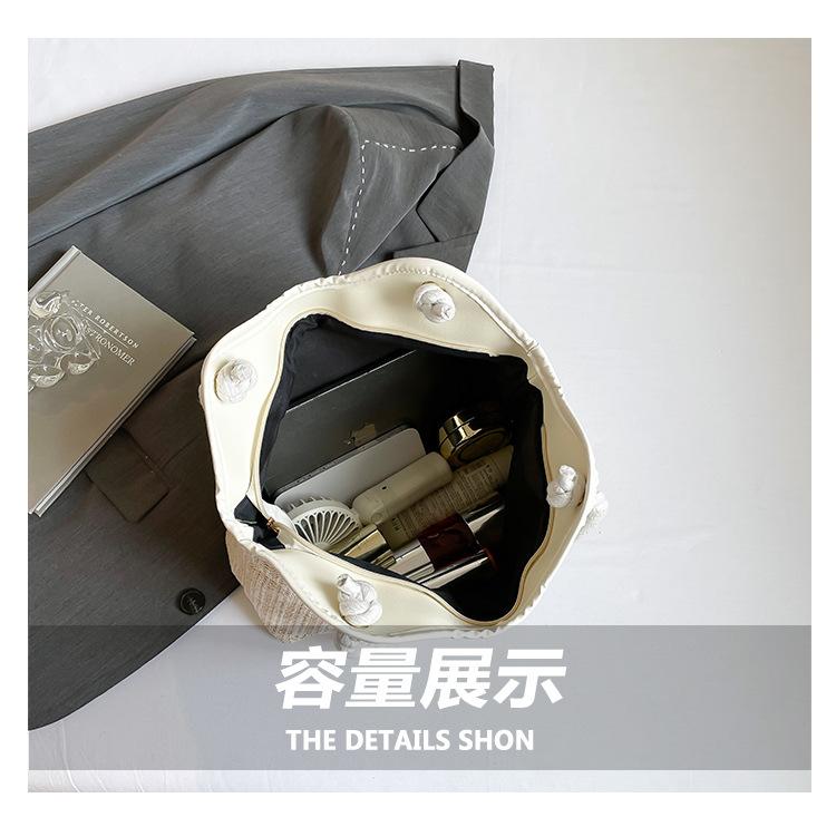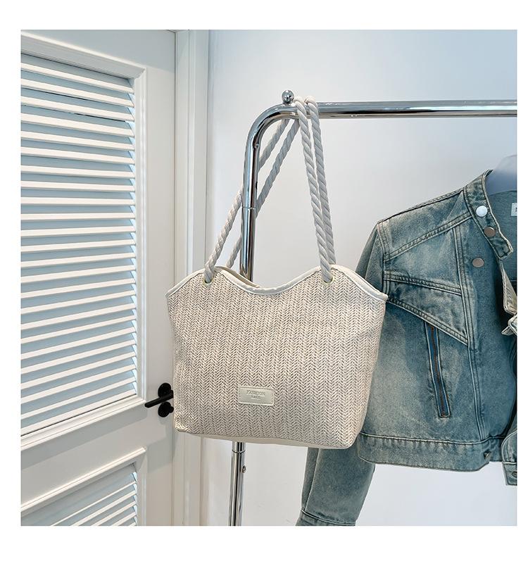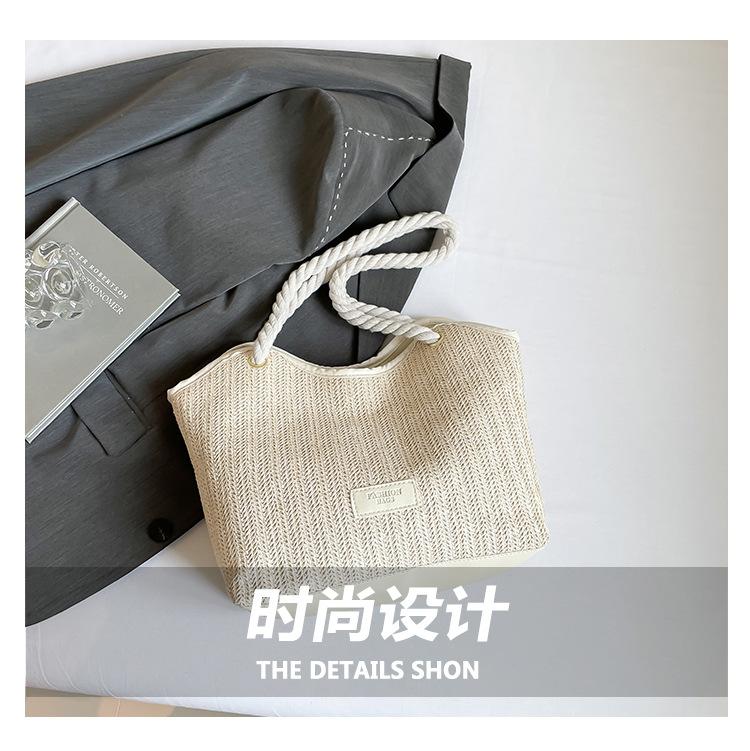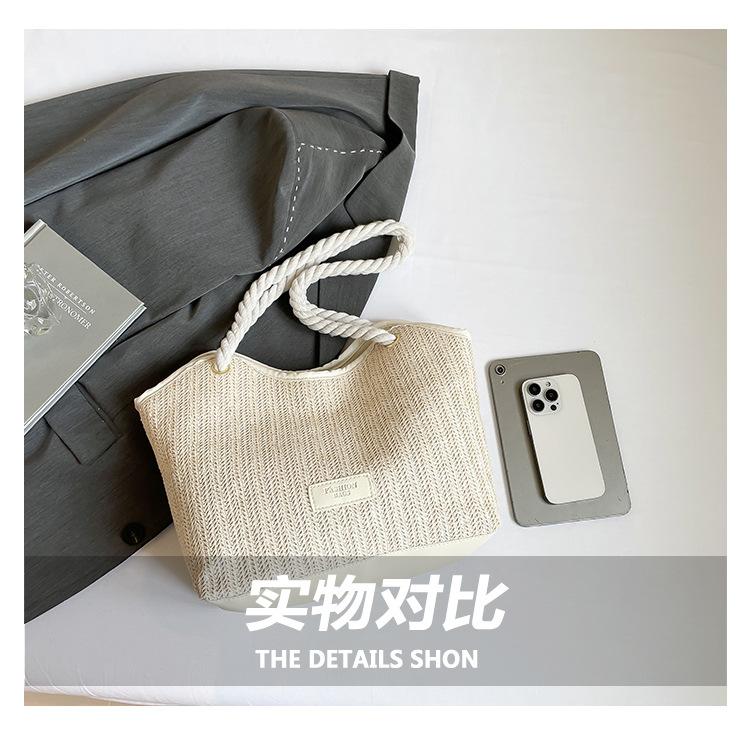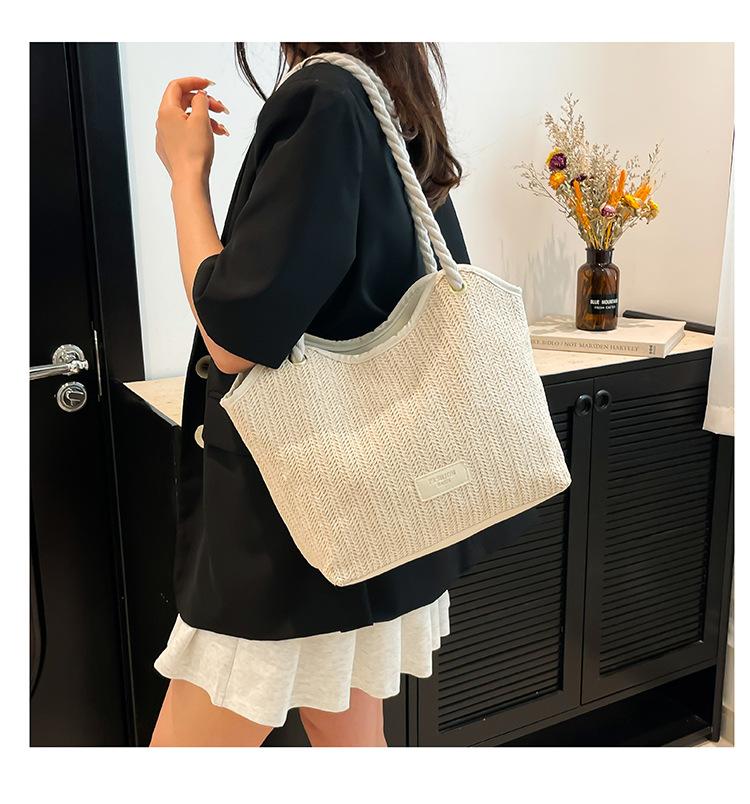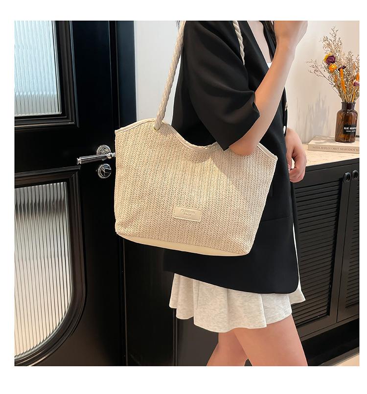 Bolso de Mano Retro Tejido Bolso Tote 2025 Gran Capacidad Bolso de Paja Simple Moda Trendy Nuevo Empalmado Bolso de Un Hombro