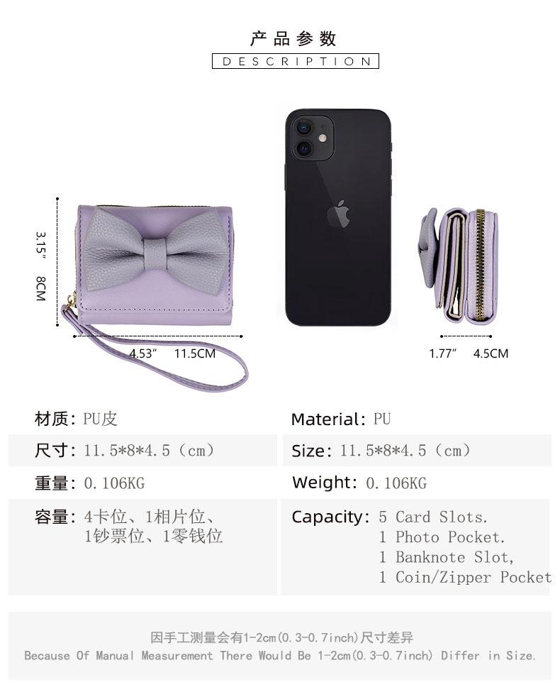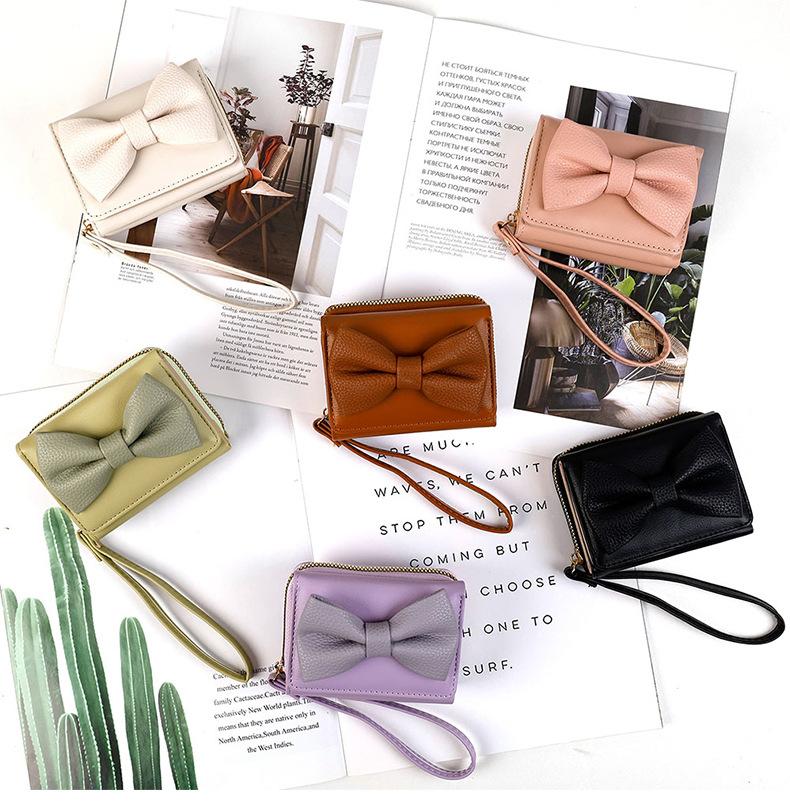 Estilo K de Billetera Elegante con Lazo para Mujer Corta Moda Simple Cuero PU Bolso Clutch 70% de descuento Billetera Tarjetero Monedero