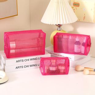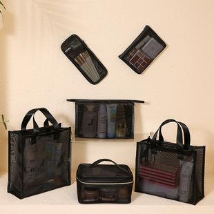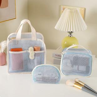 Nueva bolsa de cosméticos de malla para viaje, lavado conveniente, transparente, portátil, para mujer, bolsa de almacenamiento de ropa para cosméticos al por mayor