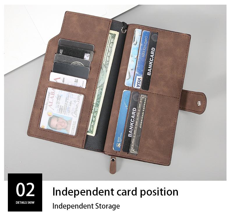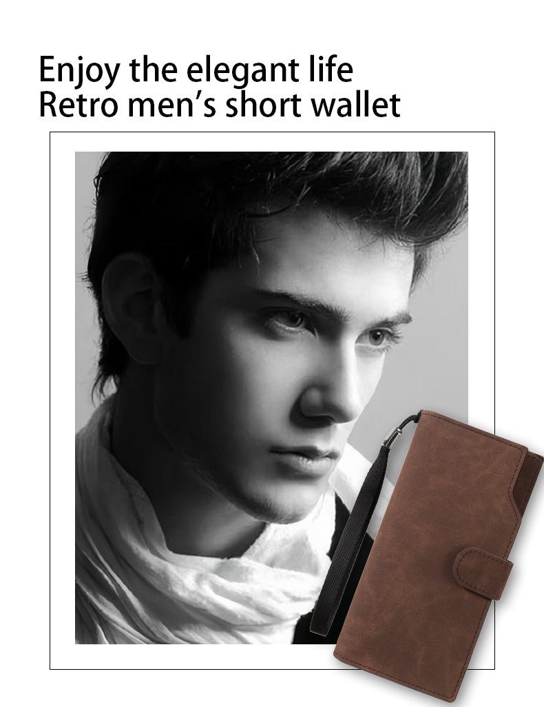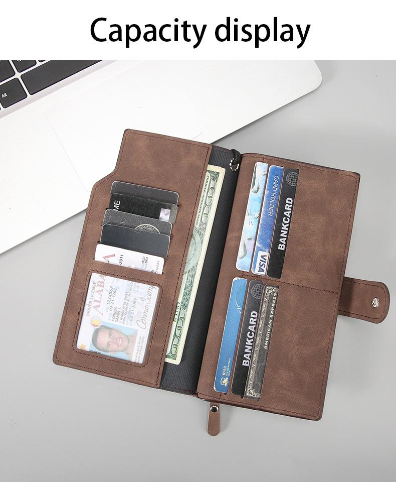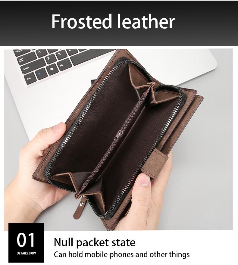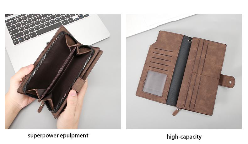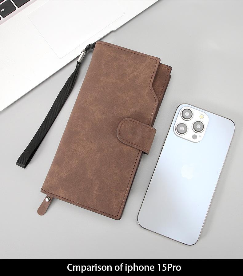 Billetera de hombre larga texturizada para hombre transfronteriza, con cremallera, de gran capacidad, bolsa portátil para teléfono de hombre, bolso de mano, billetera minimalista