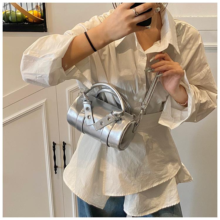 Bolso Cilíndrico Exquisito y Compacto para Mujer Commuter Transfronterizo 2025 Primavera Nuevo Diario Viaje Bolso de Hombro Cruzado para Mujer