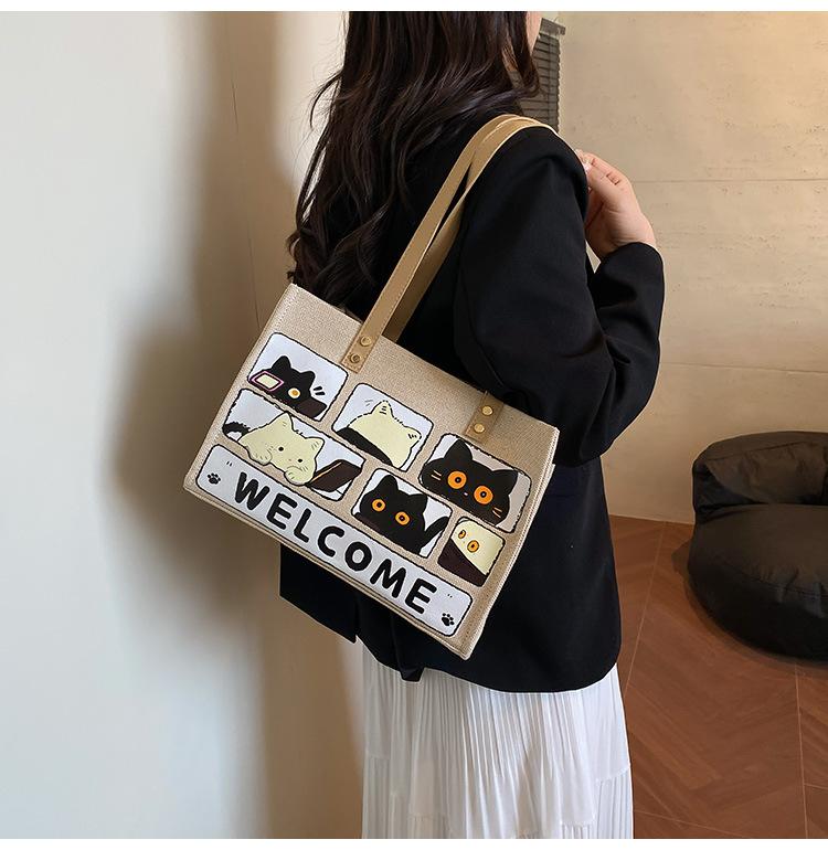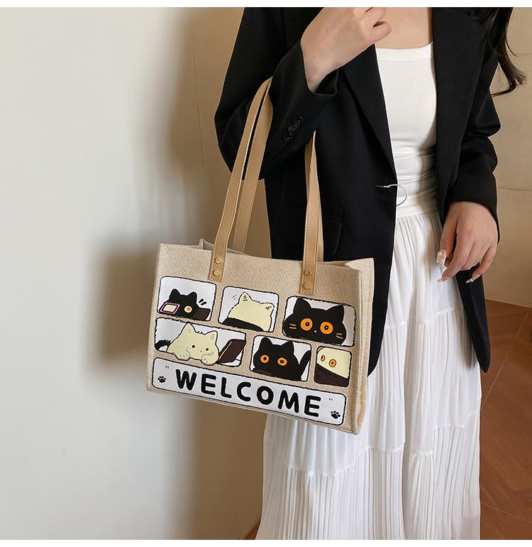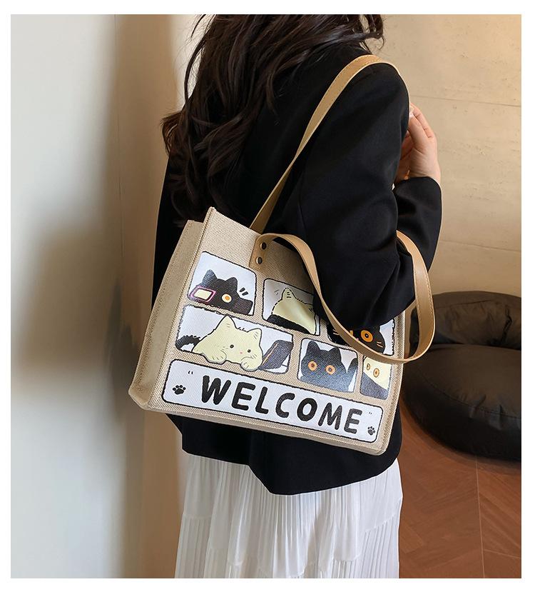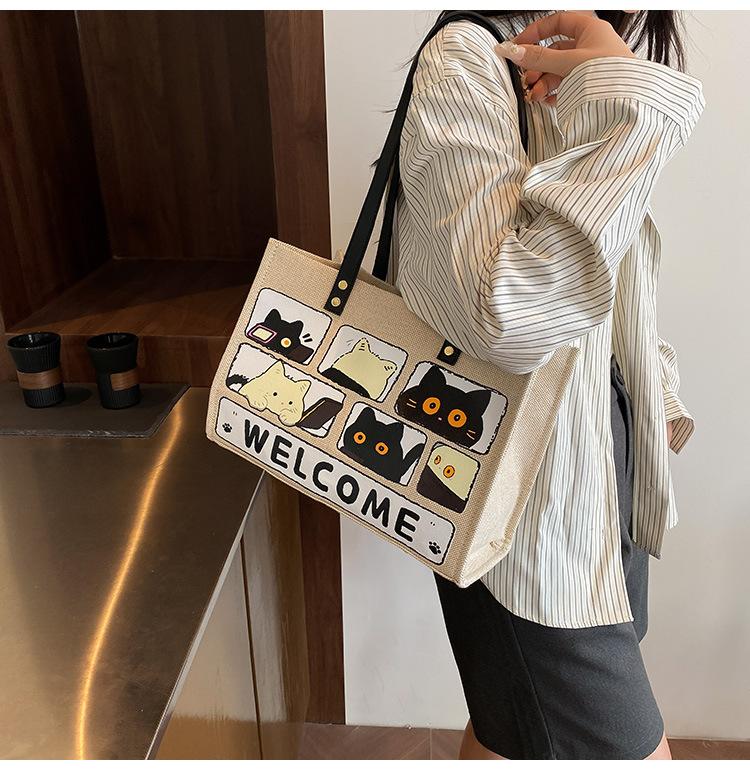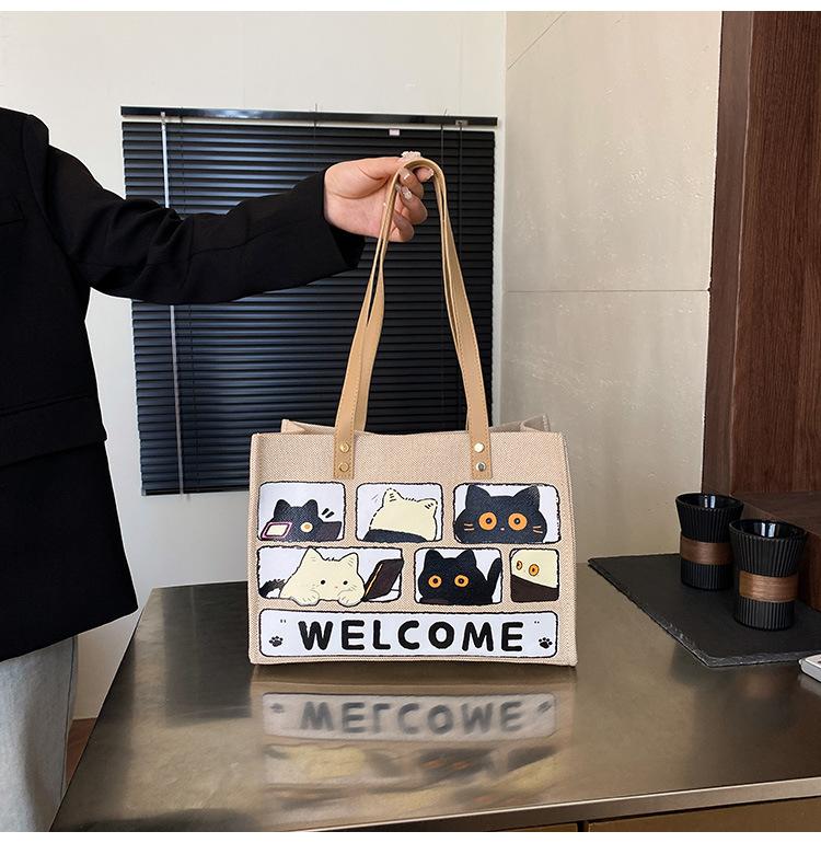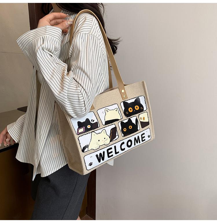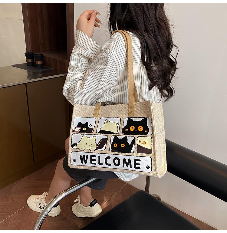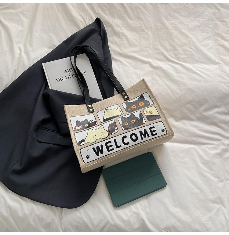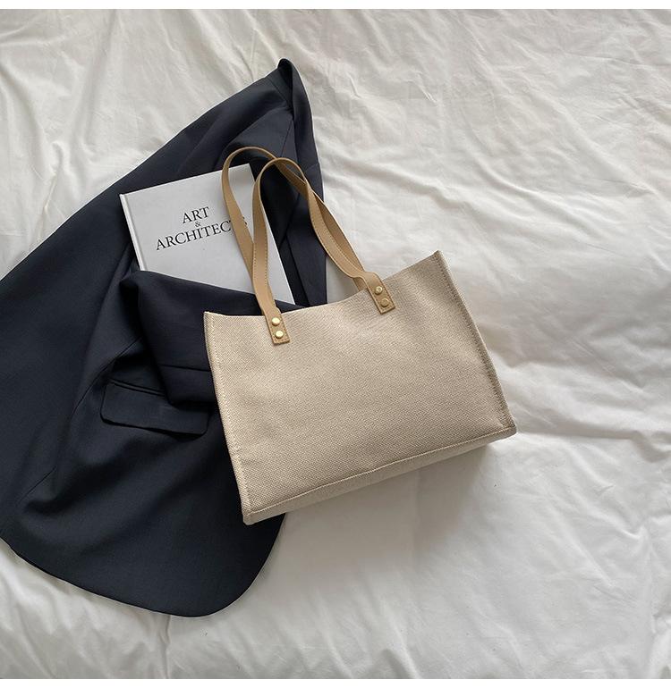 Bolso de Lona de Gran Capacidad para Mujer Primavera y Verano 2025 Nuevo Bolso Bandolera de Hombro para Viajero Bolso Tote Casual de Lino Forestal