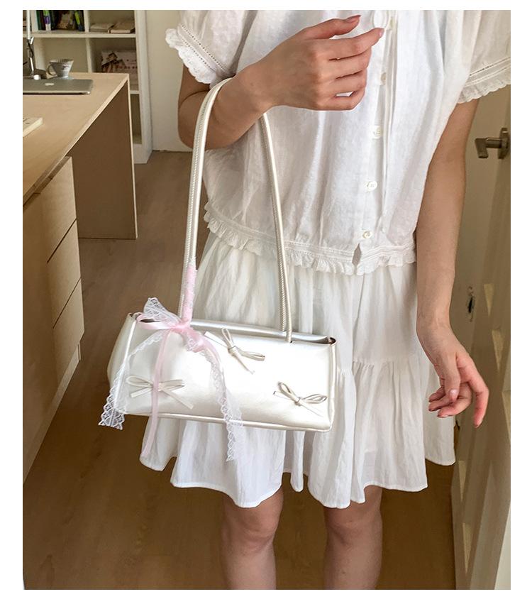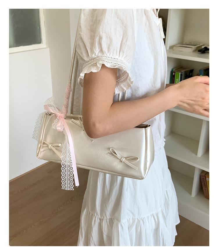 2025 Nuevo Bolso de Hombro con Lazo para Mujer Pequeño Fresco de Mano Axila Bolso para Mujer Moderno Simple Versátil Bolso Cuadrado Pequeño