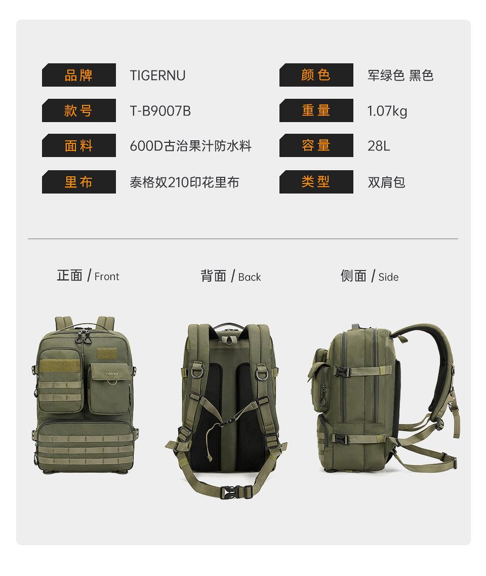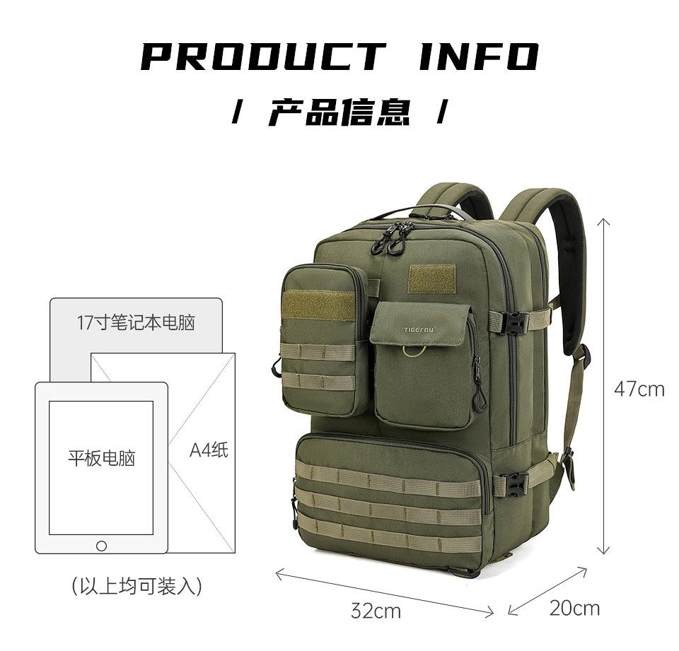 Mochila Táctica de Entrenamiento de Nailon para Hombre Mochila de Viaje de Gran Capacidad para Exteriores Equipo Impermeable Bolsa Deportiva de Montañismo