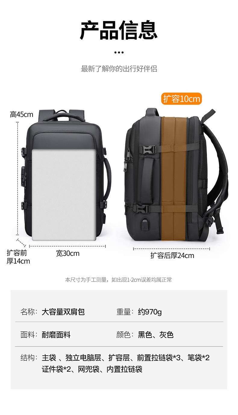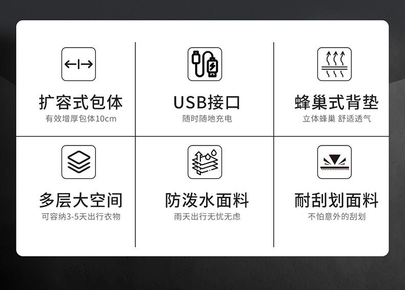 Mochila de Negocios, Almacenamiento Multifuncional, Mochila de Viaje de Gran Capacidad, Bolsa para Laptop Expandible para Desplazamientos al Aire Libre