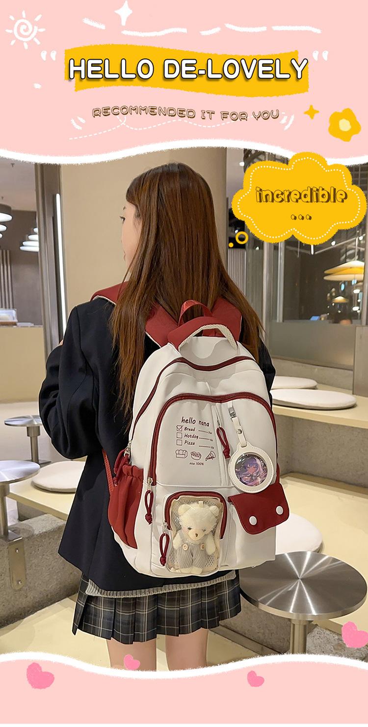 Mochila Escolar Japonesa Linda Femenina Estilo Coreano Casual de Gran Capacidad Mochila de Color Contrastante Nueva Mochila de Gran Capacidad para Secundaria y Preparatoria