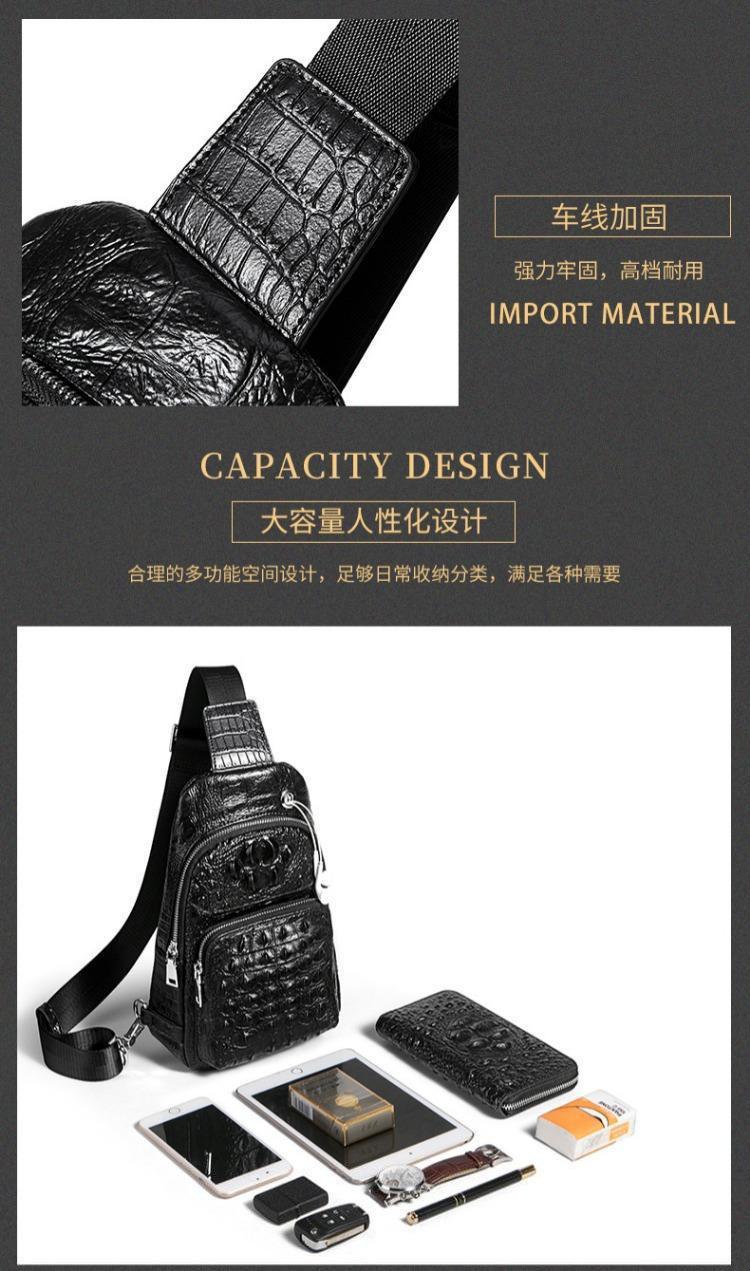 Bolso con Patrón de Cocodrilo Bolso de Pecho para Hombre Multicapa Nuevo Bolso de Hombro Deportivo Bolso para Hombre Cuero Genuino Casual Bolso Cruzado para Hombre