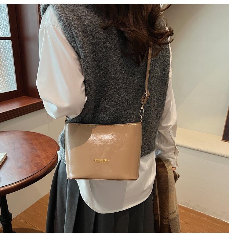 Diseño Nicho Popular Bolso Balde para Mujer 2025 Nuevo Color Sólido Bolso de Hombro Axilar Moda Versátil Bolso Cruzado