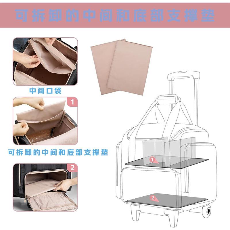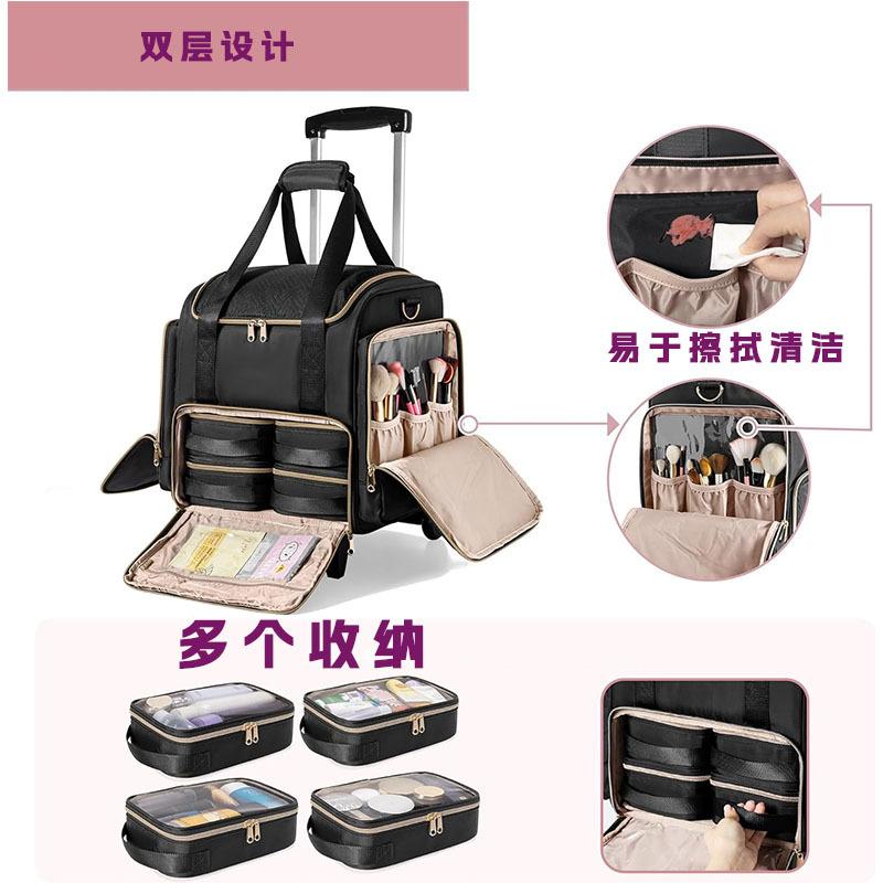 Bolsa de Cosméticos Impermeable de Gran Capacidad, Bolsa de Aseo Portátil para Viaje de Negocios, Carro con Ruedas Desmontable