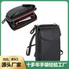 Lona de alta calidad con piel de vaca auténtica Bolsa para teléfono móvil de pantalla grande Casual Ligera de Hombro Cruzada Monedero Bolsa para teléfono móvil para hombre y mujer