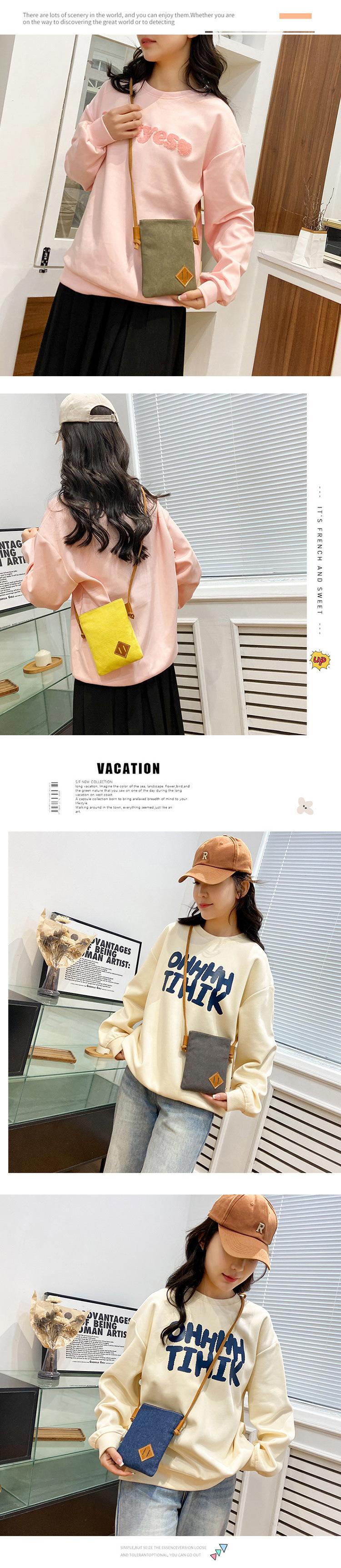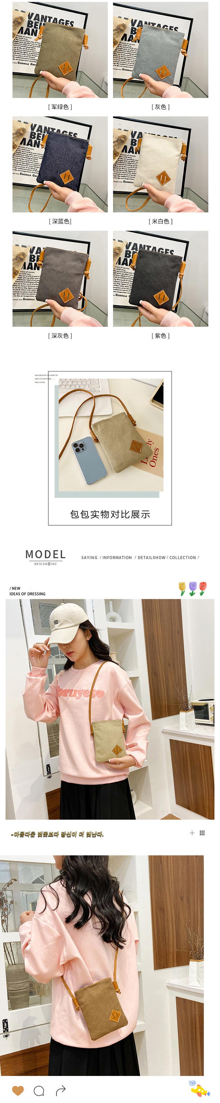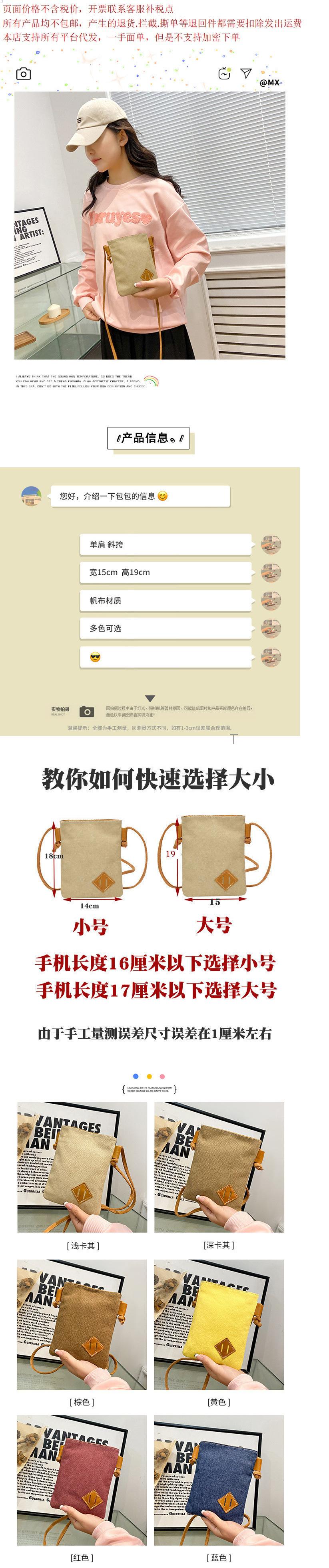 Brown canvas two-piece mobile phone bag, Yellow canvas two-piece mobile phone bag, Black denim two-piece mobil...
