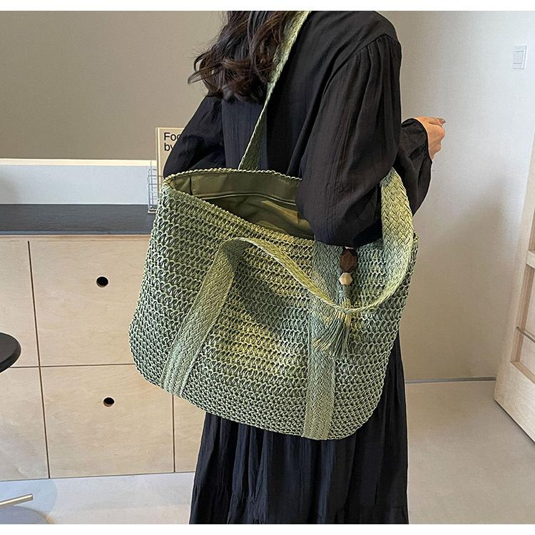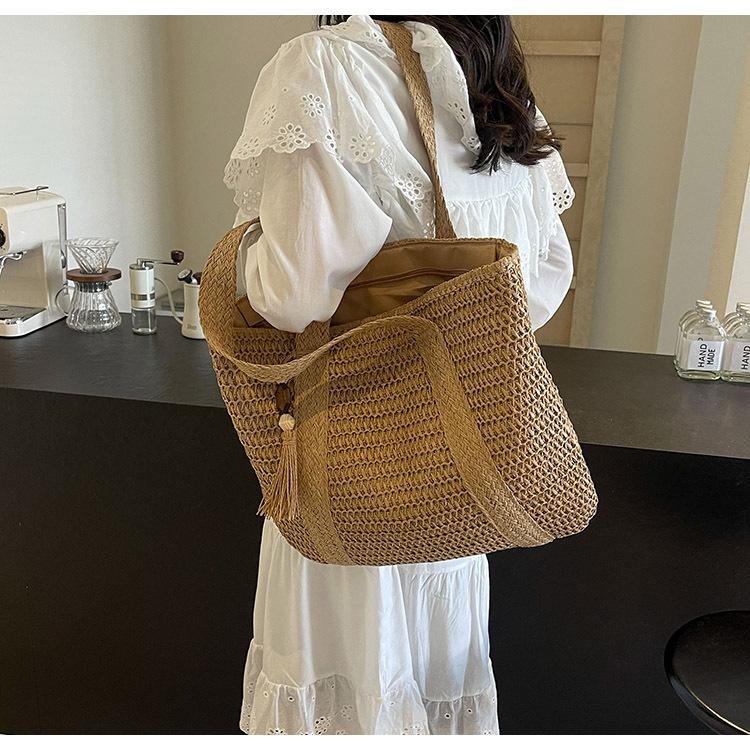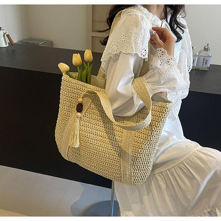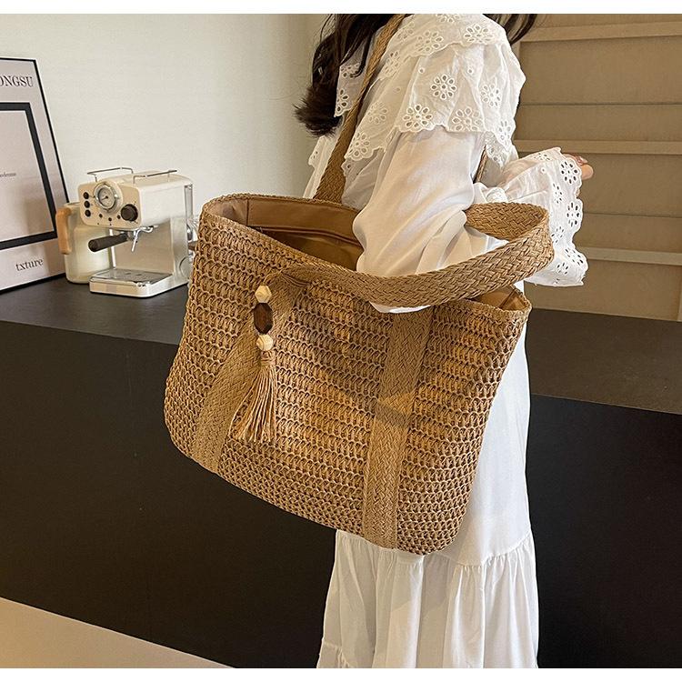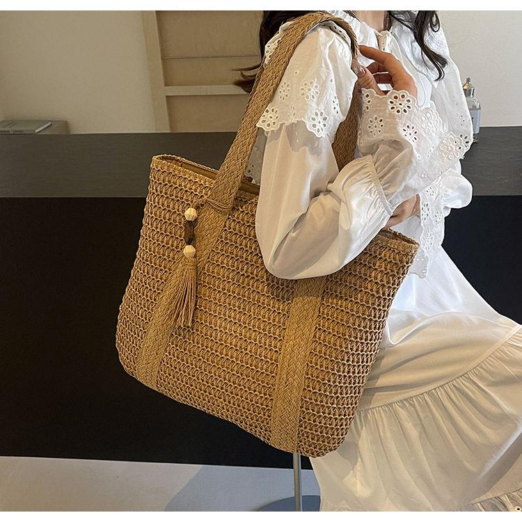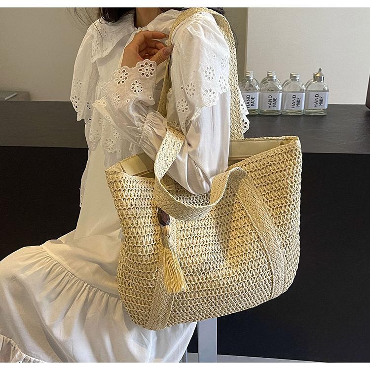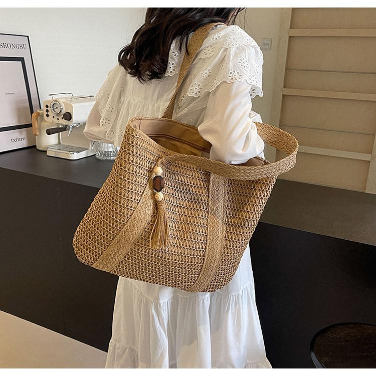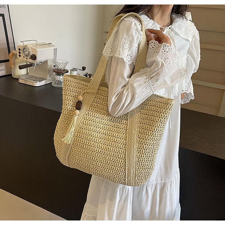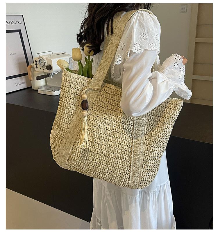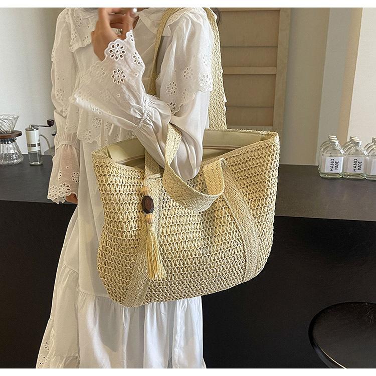Bolso de Paja Tejida Francés de Gran Capacidad para Mujer 2025 Nuevo Bolso de Hombro para Vacaciones en la Playa Bolso Tote Casual para Viajes