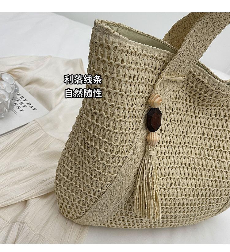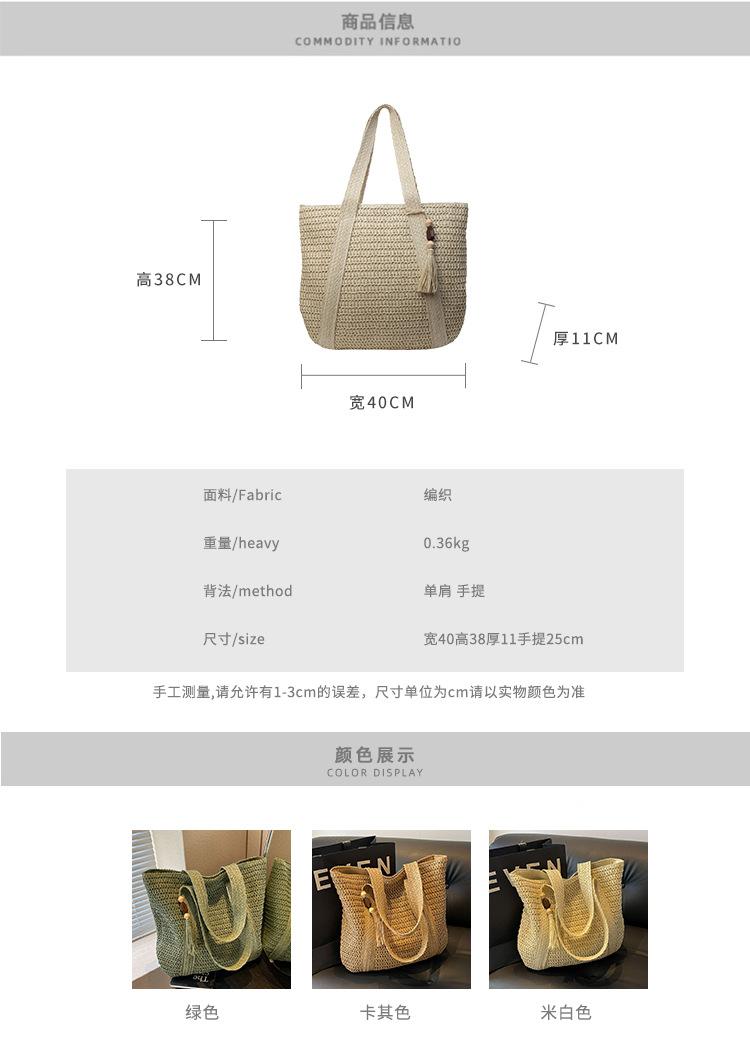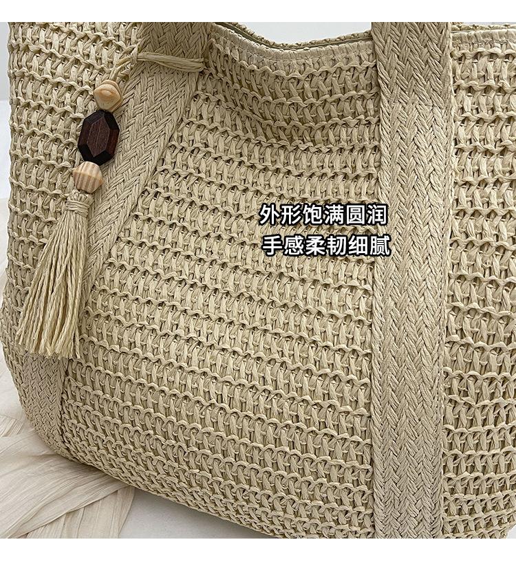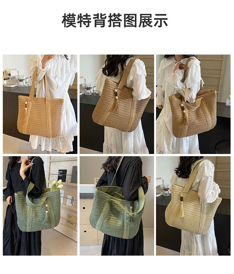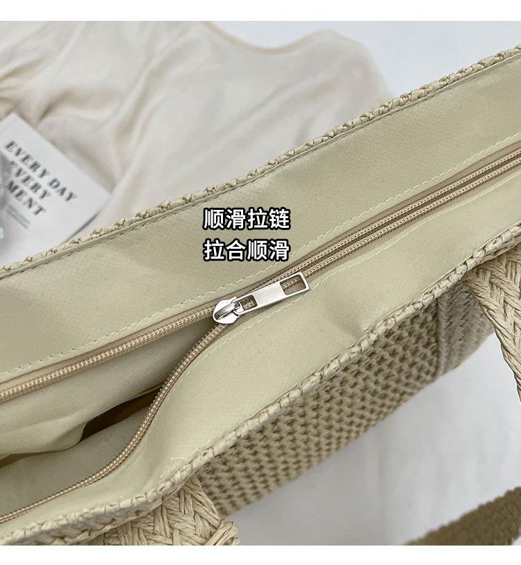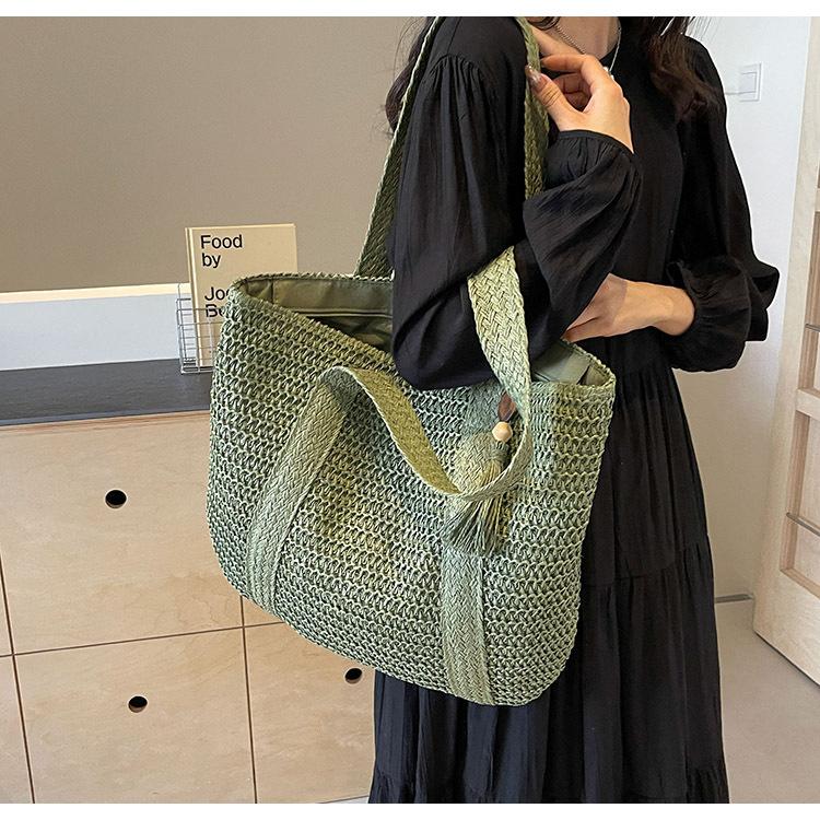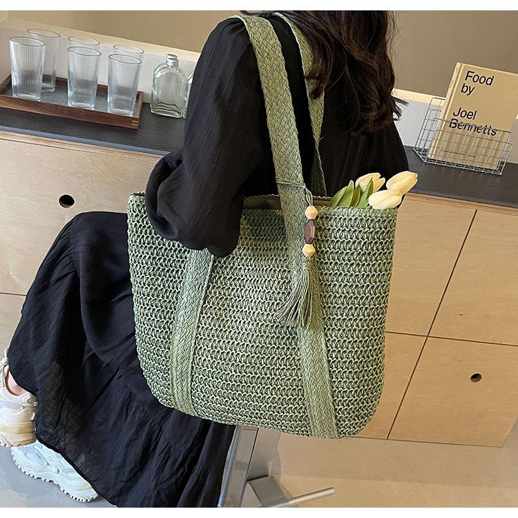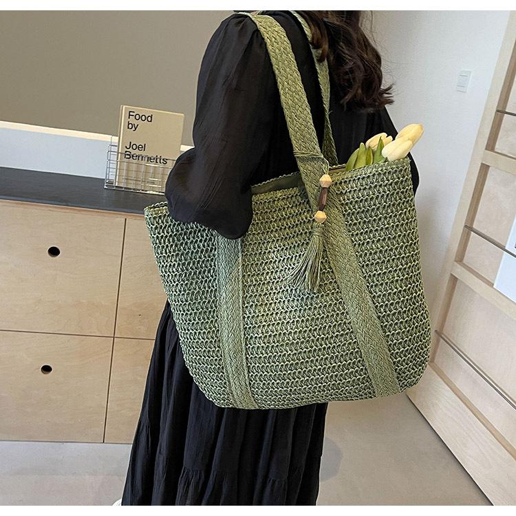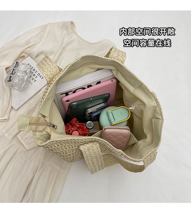 Bolso de Paja Tejida Francés de Gran Capacidad para Mujer 2025 Nuevo Bolso de Hombro para Vacaciones en la Playa Bolso Tote Casual para Viajes