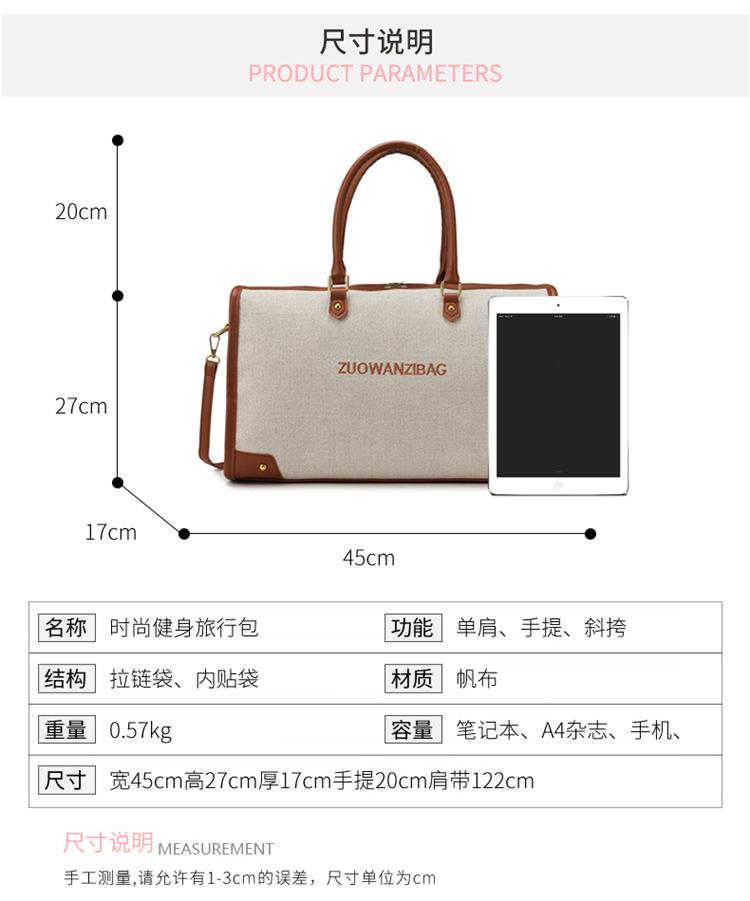 Bolsa de Viaje de Lona Transfronteriza para Mujeres Viajeras Nueva Bolsa de Equipaje de Viaje Portátil de Corta Distancia para Salir Bolsa Deportiva Fitness Cruzada
