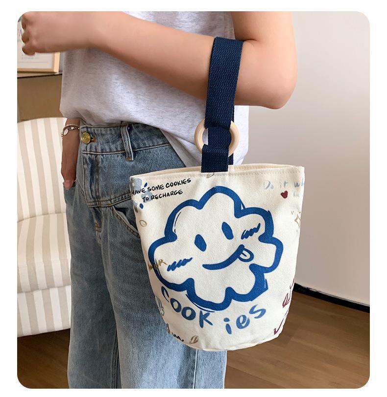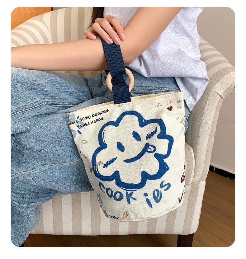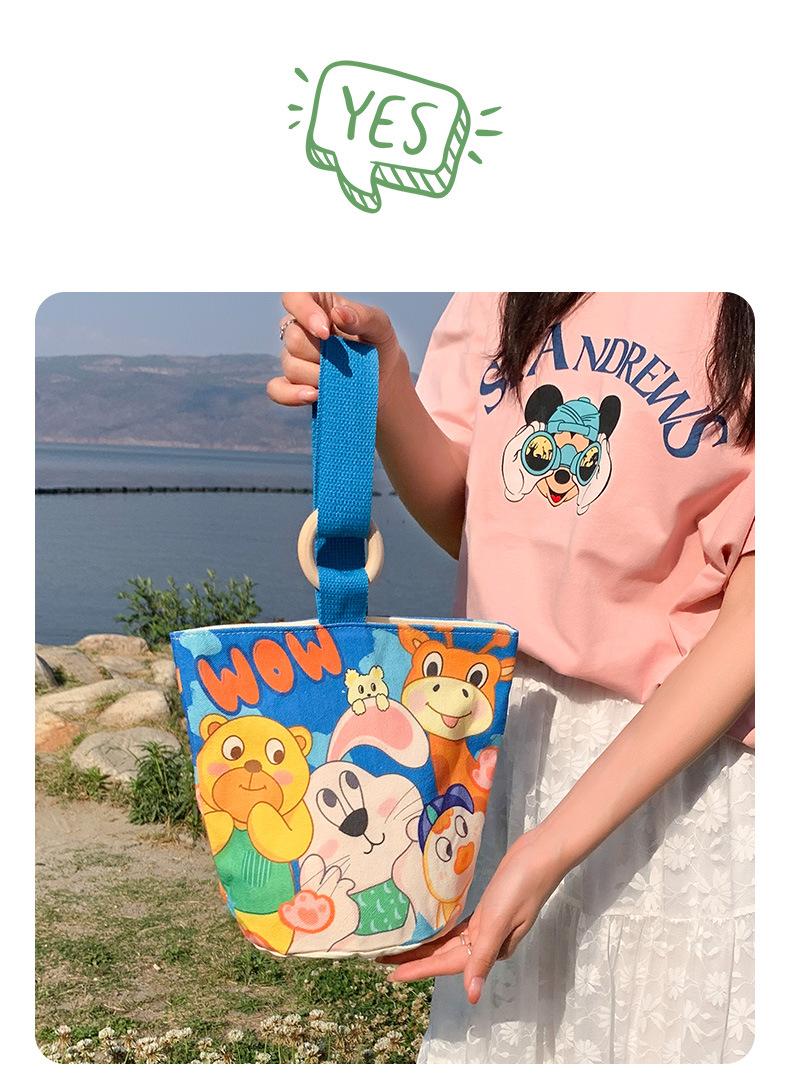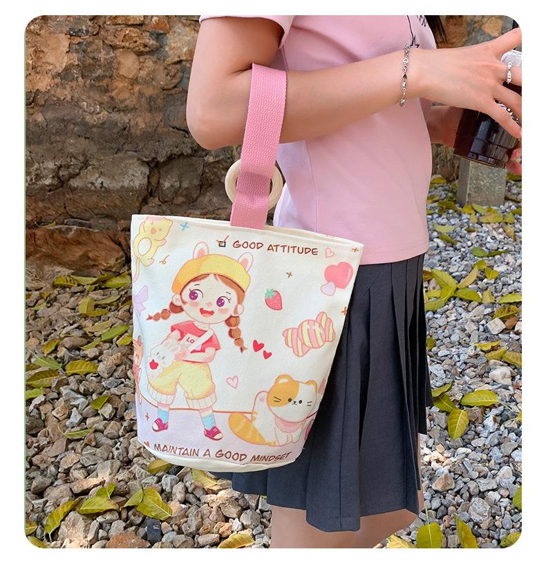 Bolsa de Lona de Dibujos Animados para Mujer, Bolso Tipo Cubo de Gran Capacidad, Bolso de Mano 2025 Nuevo, Bolso de Hombro para Trabajadora de Oficina, Bolso de Mano al Por Mayor