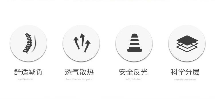 Breathable, Waterproof, Super light, Wear-resistant, Reduce burden, Spine protector