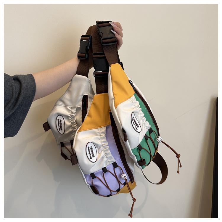 Bolso de Pecho Unisex Niche Trendy de Color Contrastante para Hombre Estilo Japonés Harajuku Ins Estudiante Retro Riñonera para Mujer Mochila Cruzada Versátil