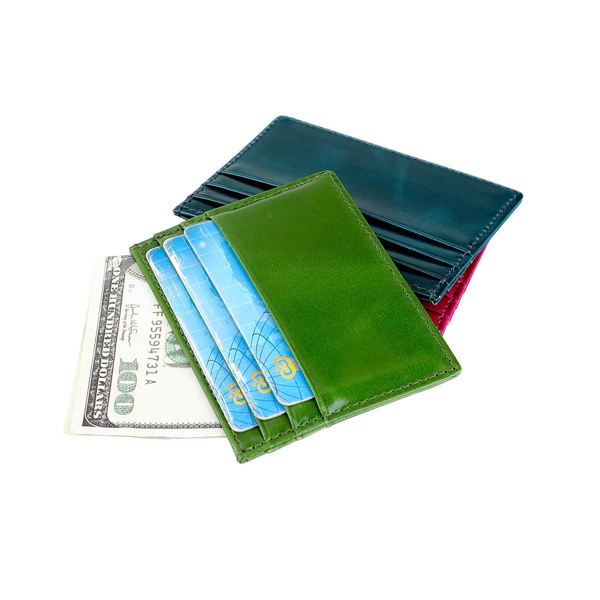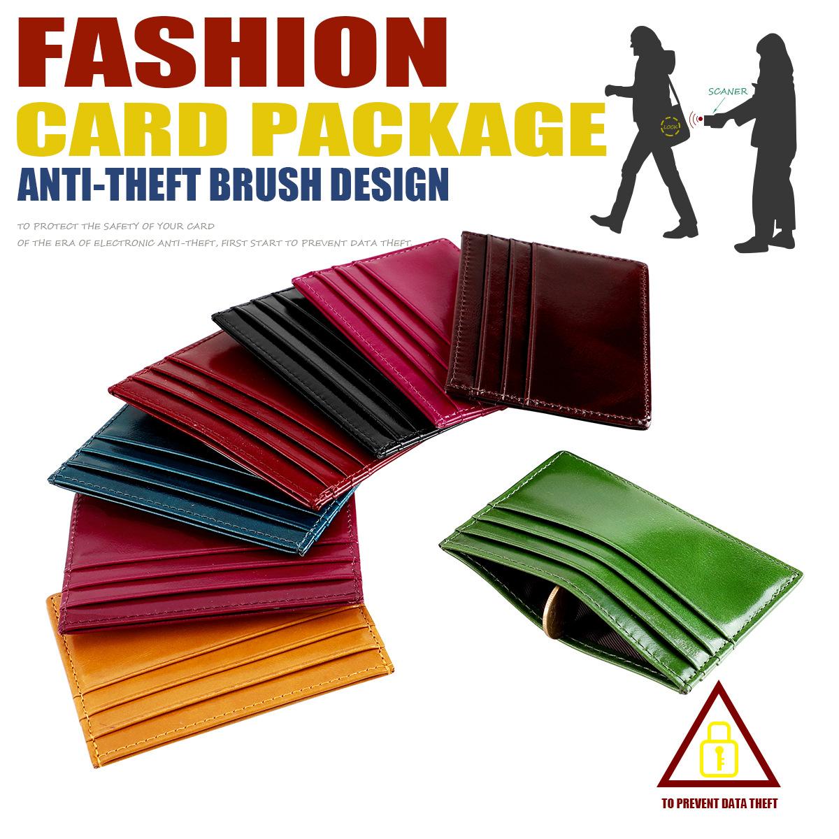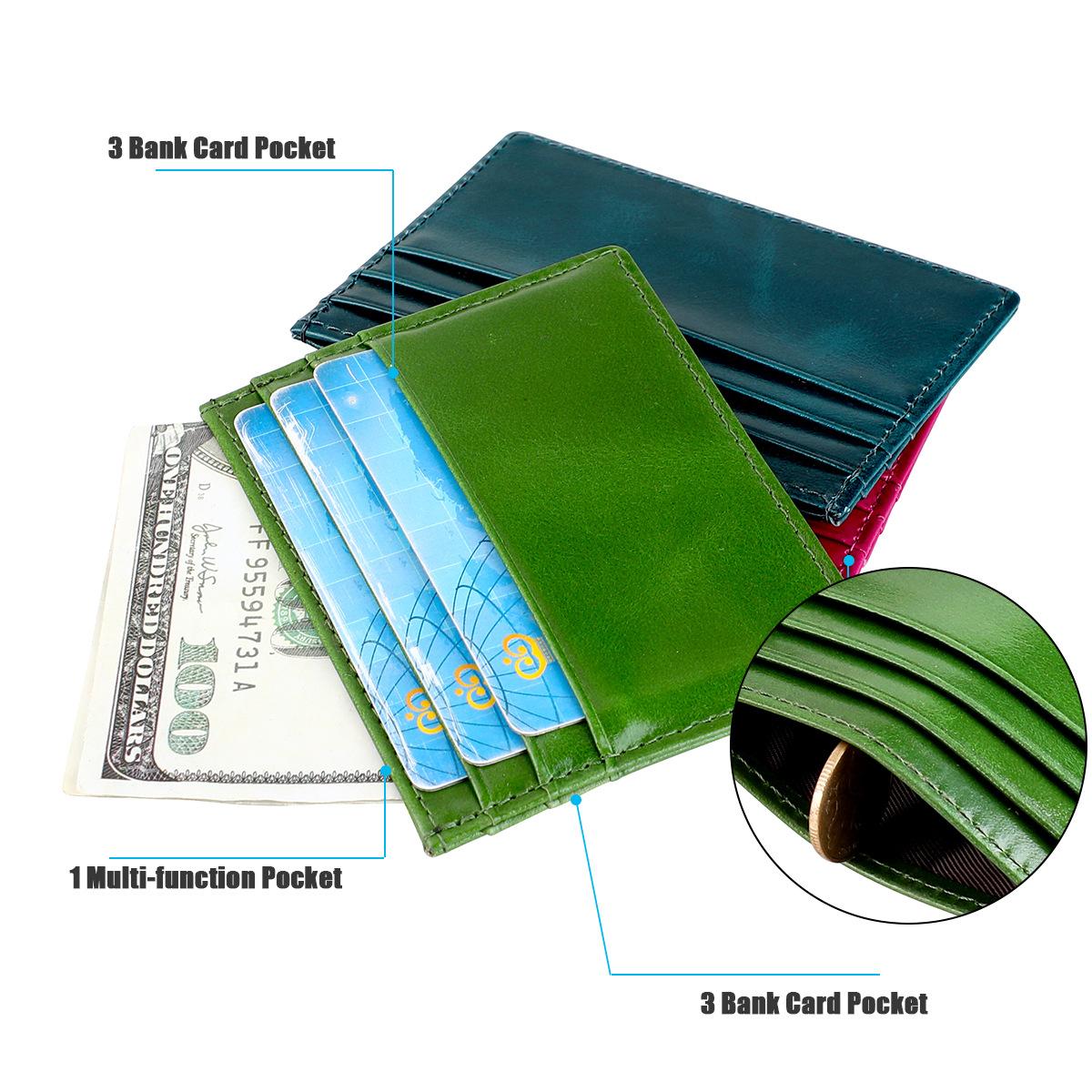 Nuevo tarjetero de moda antirrobo, billetera de cuero encerado al aceite, tarjetero para tarjetas bancarias, tarjetas de crédito, identificación, cuero genuino