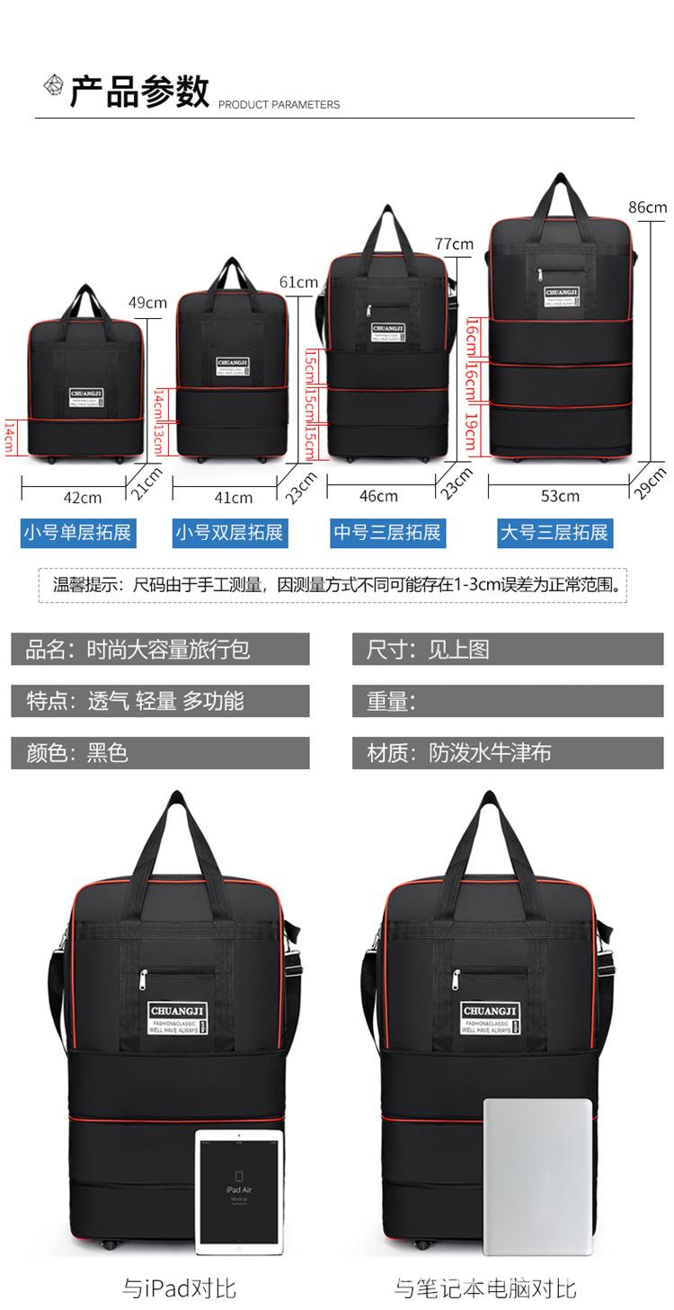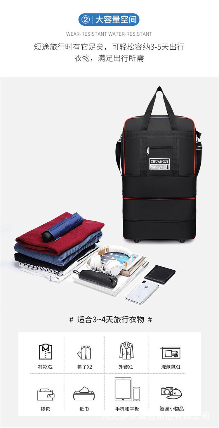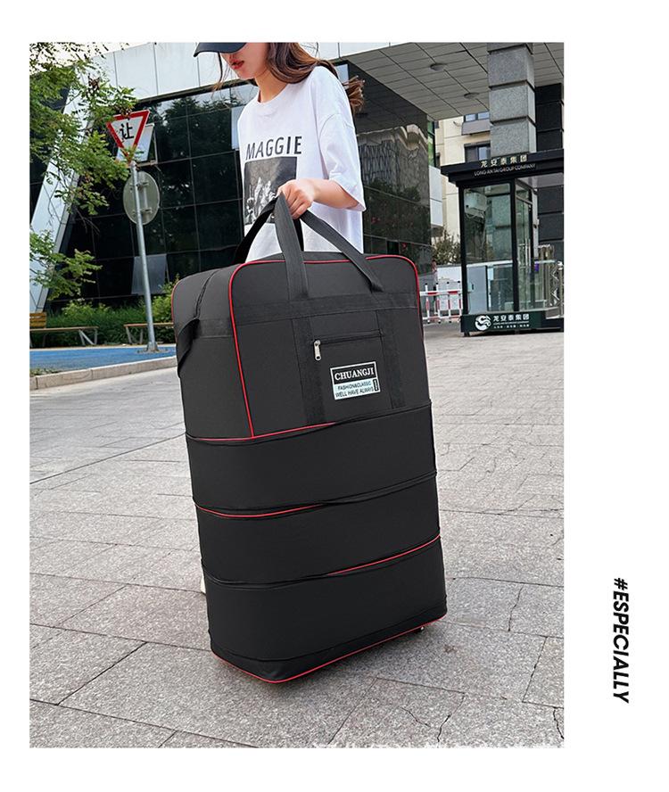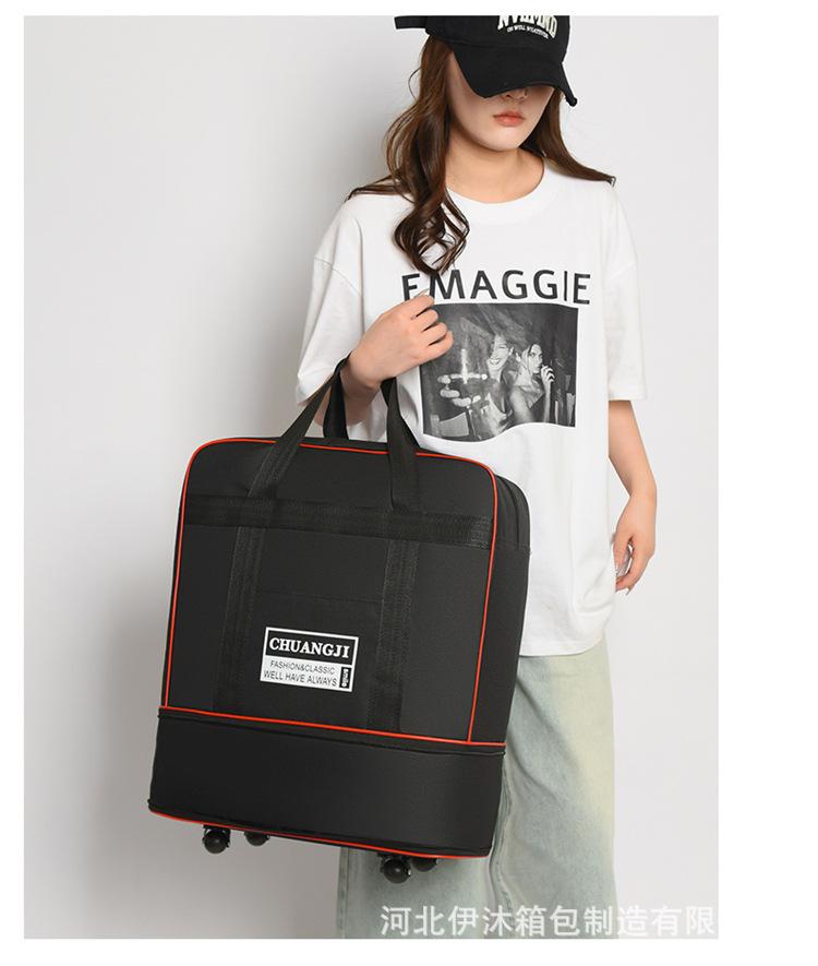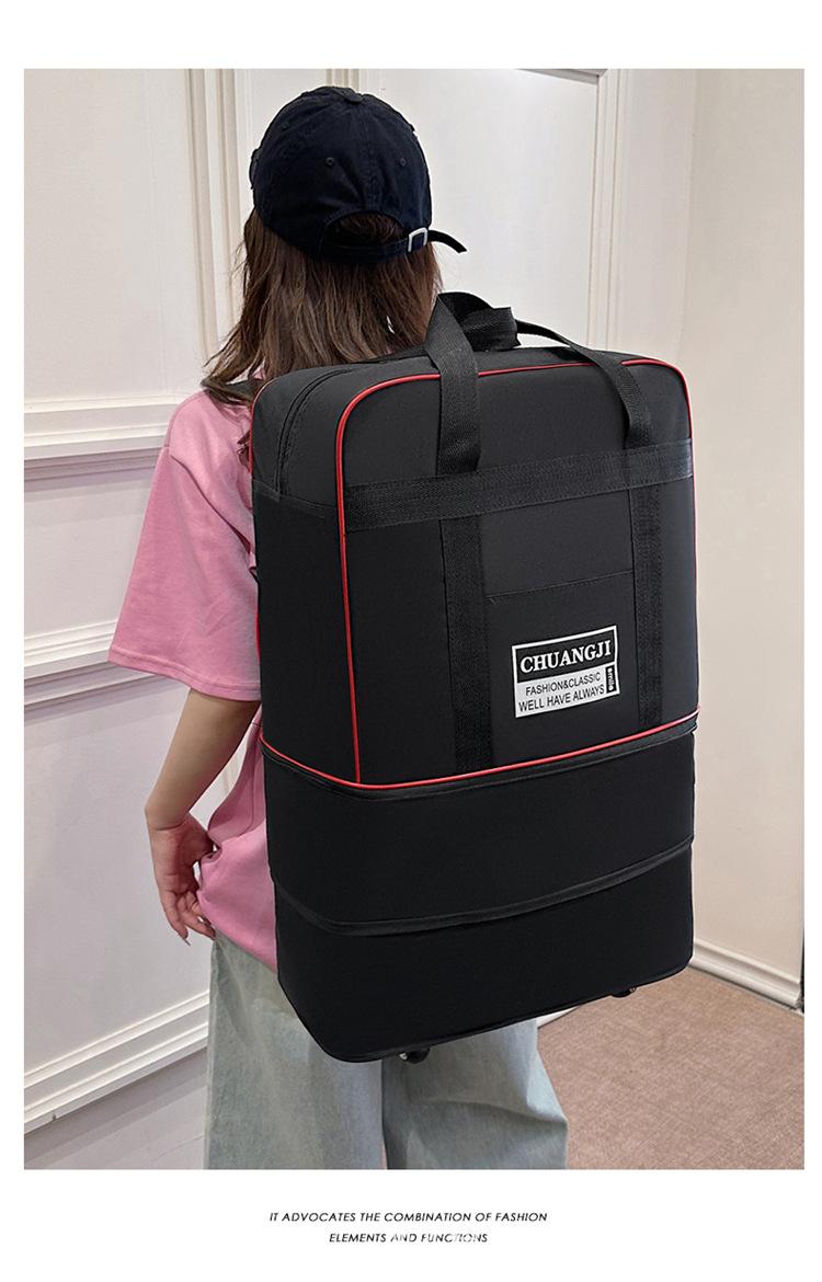158 Bolsa de Mano para Aerolínea Gran Capacidad Color Contraste Plegable Bolsa de Viaje Rueda Universal Movible Viaje Tela Oxford Bolsa Duffel