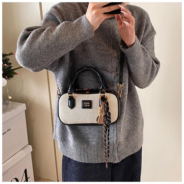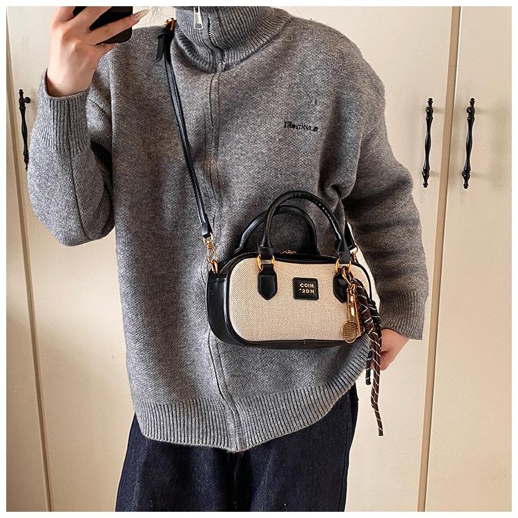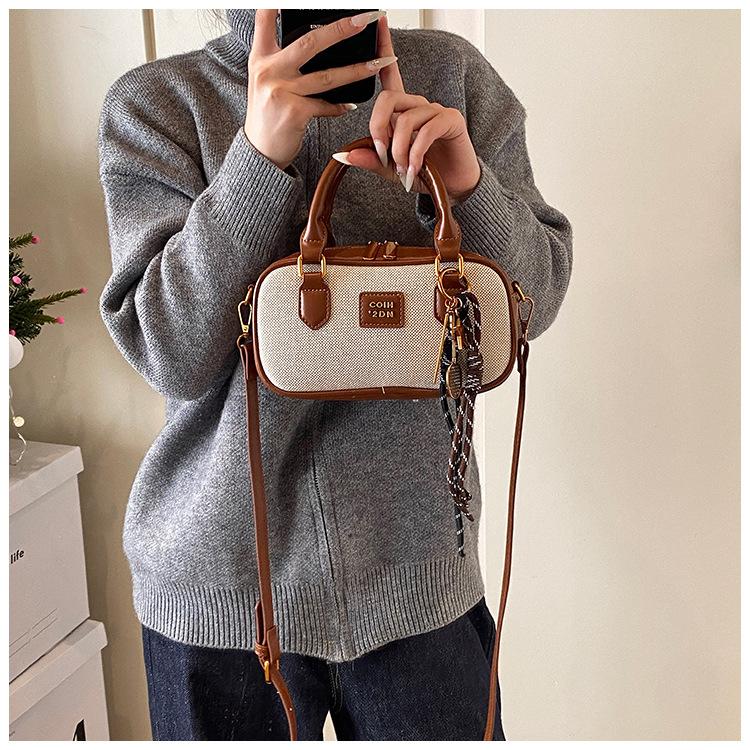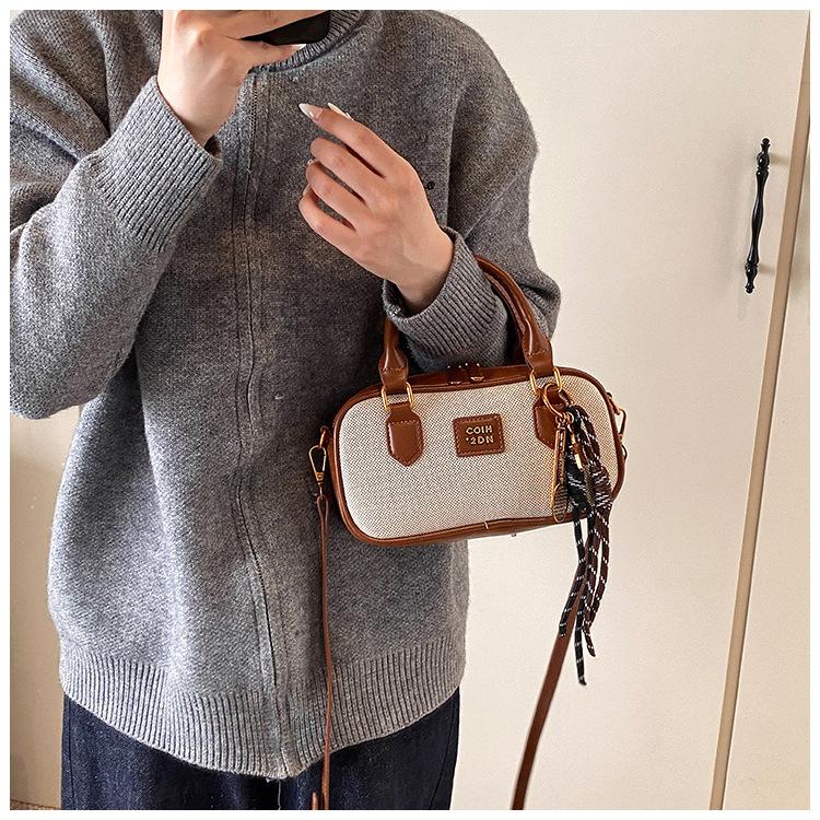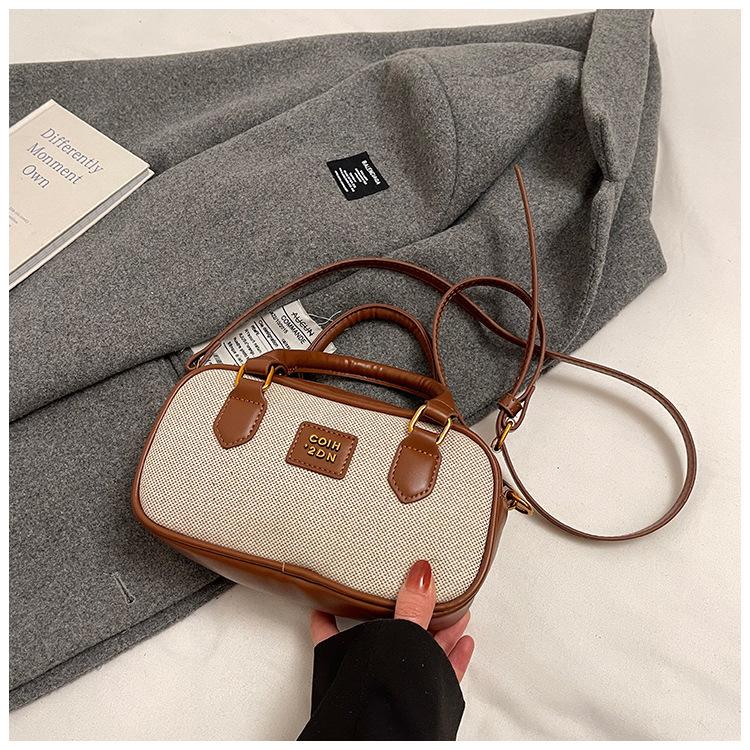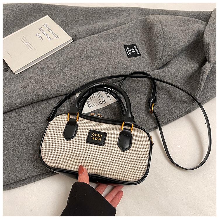 2025 Verano Nuevo Retro Popular Casual Portátil Bolso Boston Pequeño Moda Femenina Casual Contraste de Color Bolso Bandolera