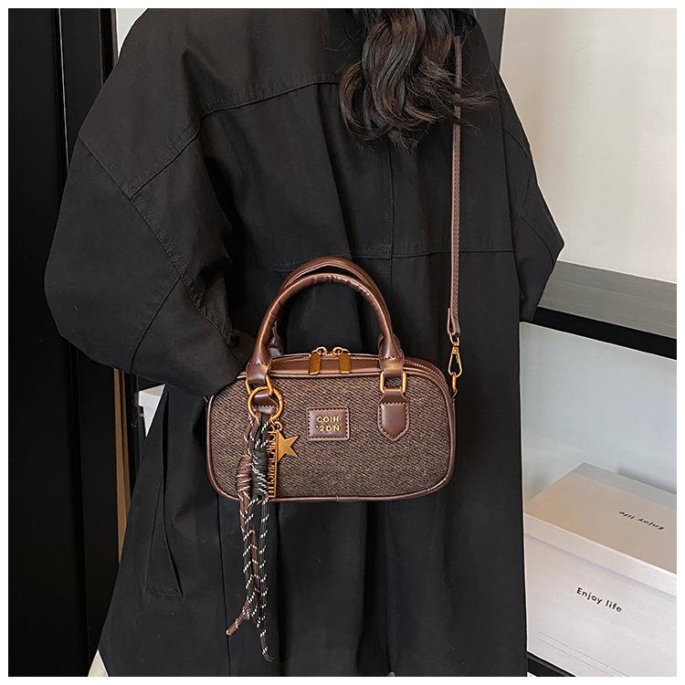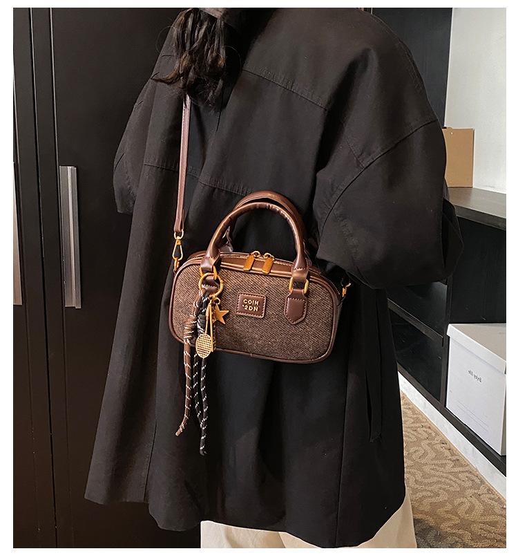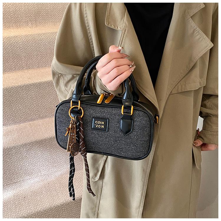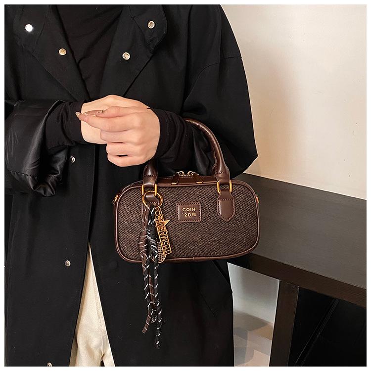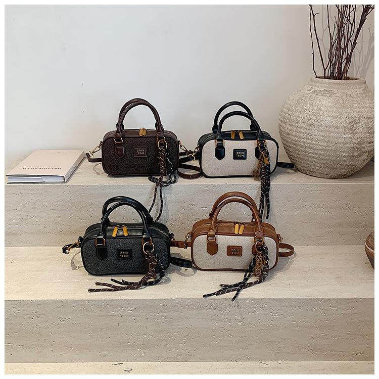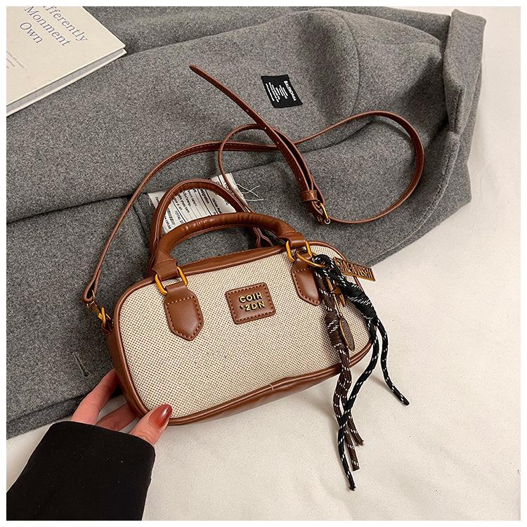 2025 Verano Nuevo Retro Popular Casual Portátil Bolso Boston Pequeño Moda Femenina Casual Contraste de Color Bolso Bandolera
