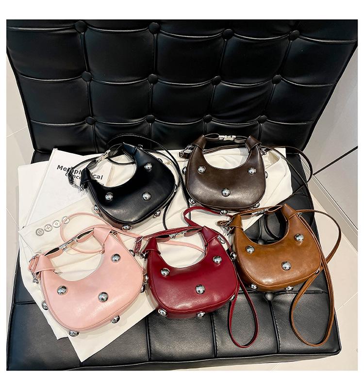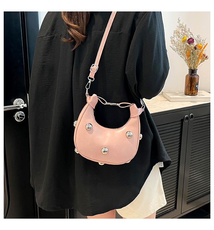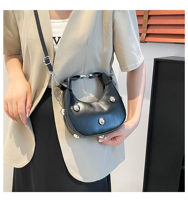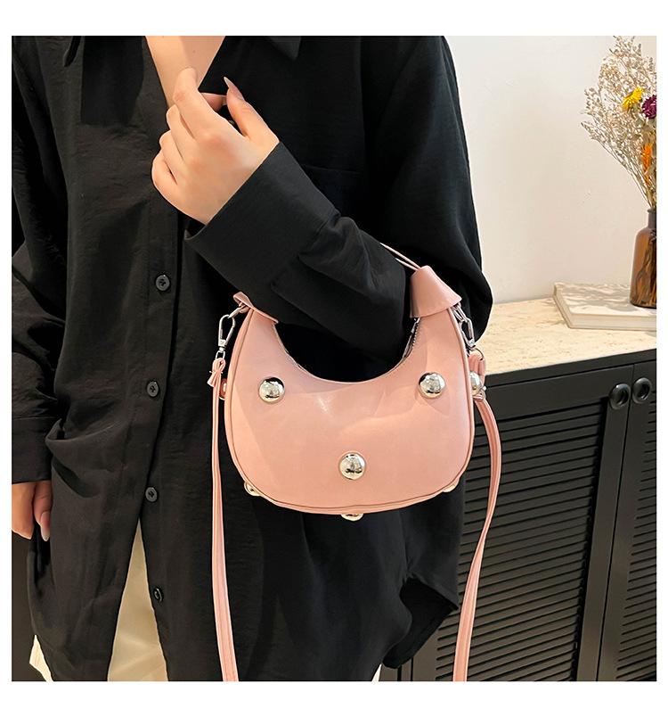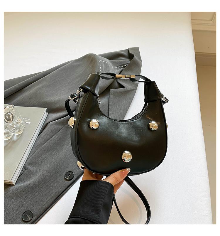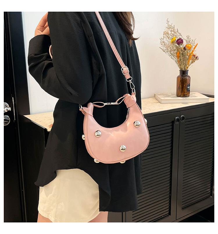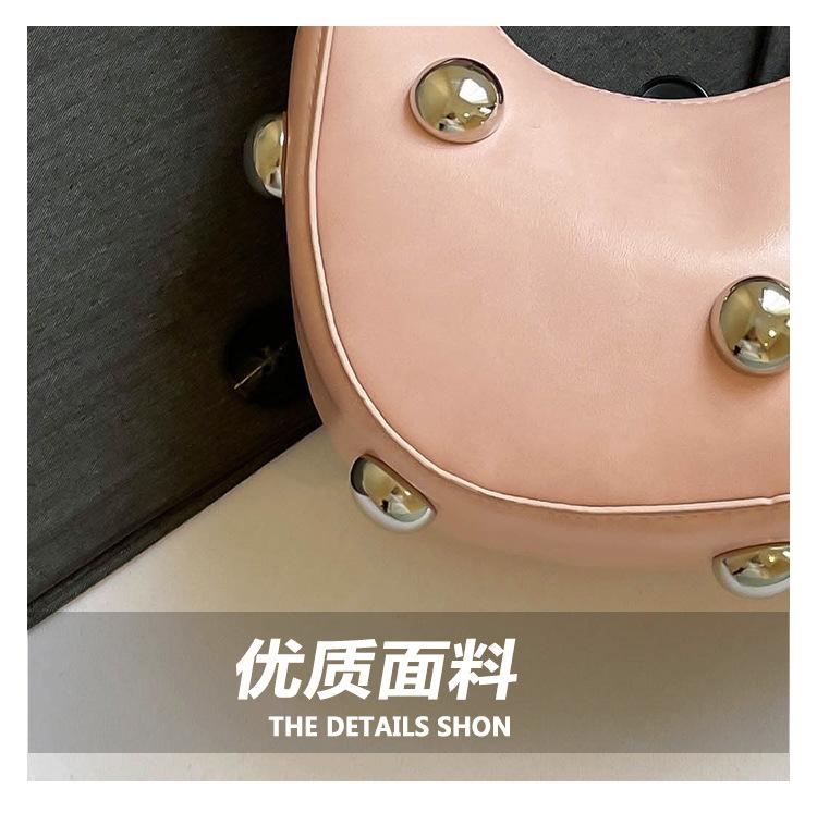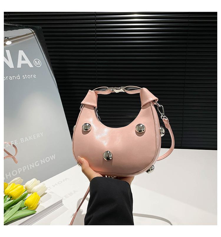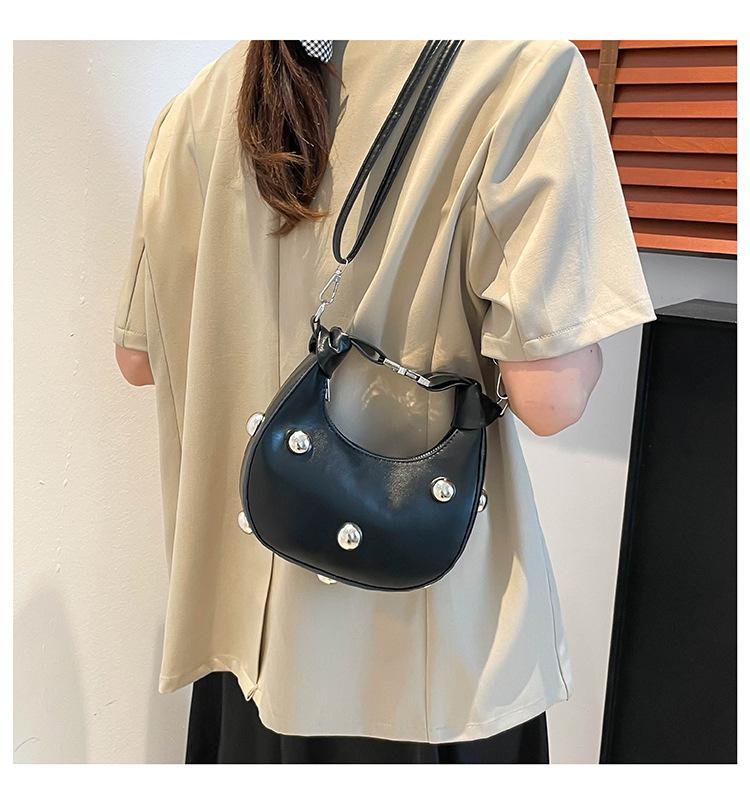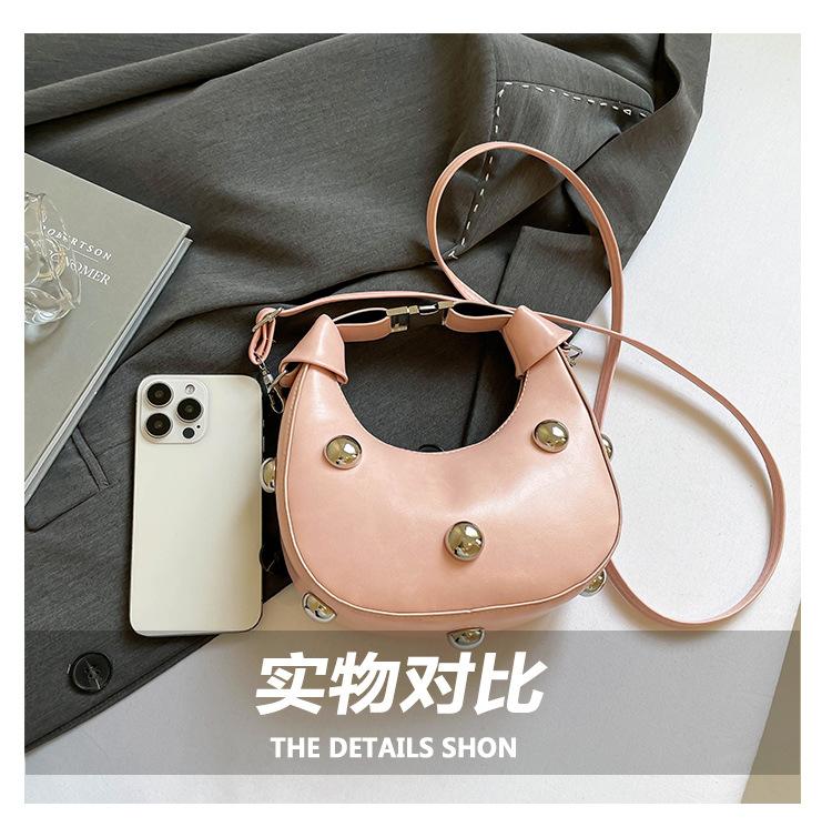 Bolso de Mano Media Luna con Remaches de Moda Coreana al por Mayor Bolso de Mujer 2025 Verano Nuevo Estilo Bolso de Hombro Bolso Cruzado para Viajar