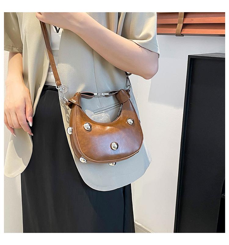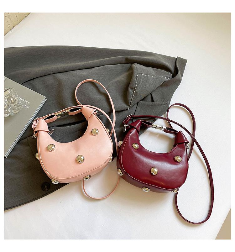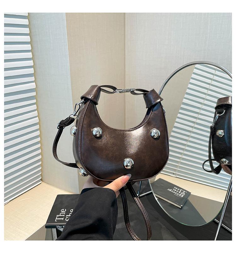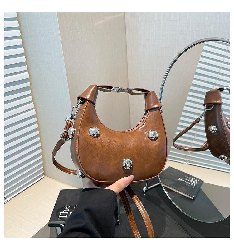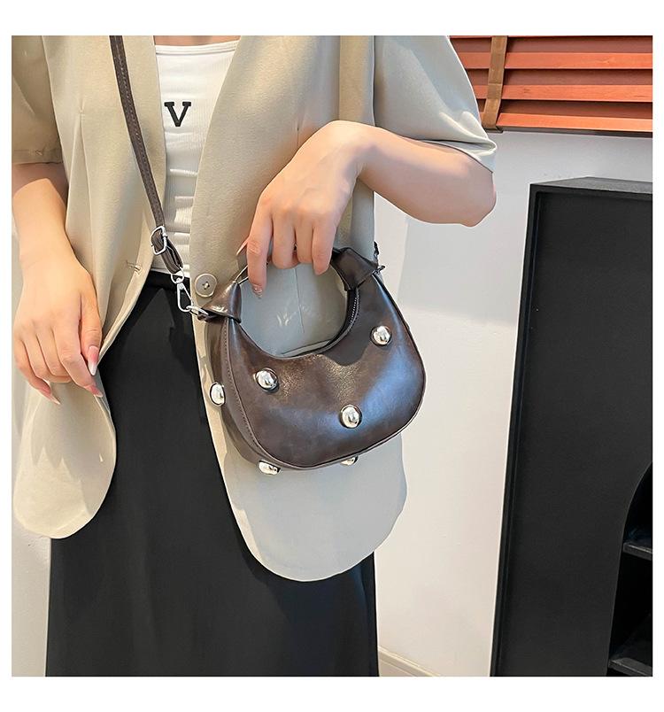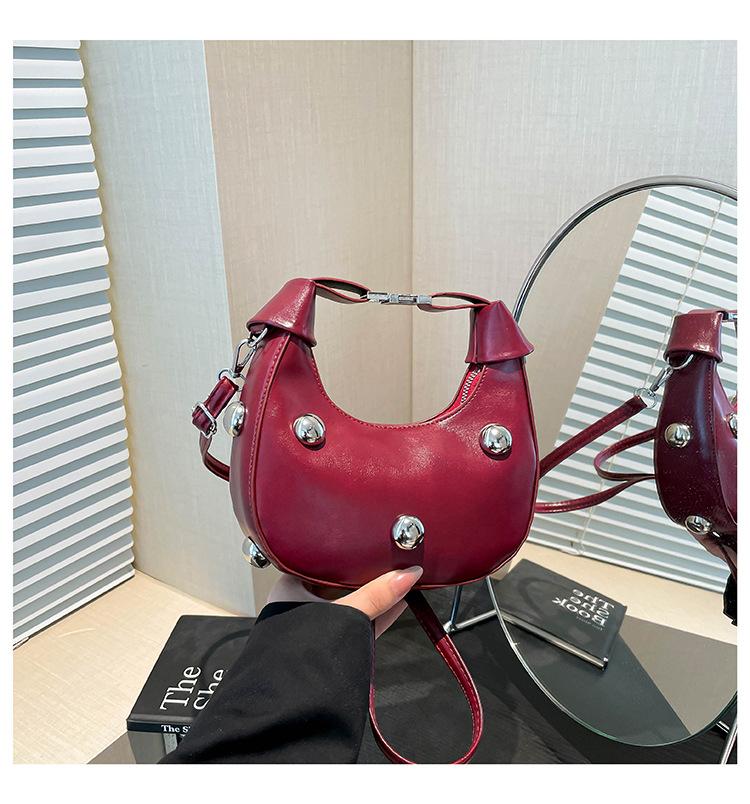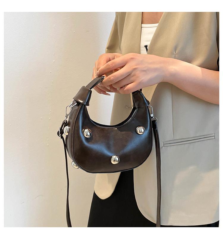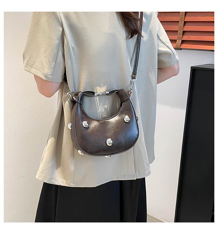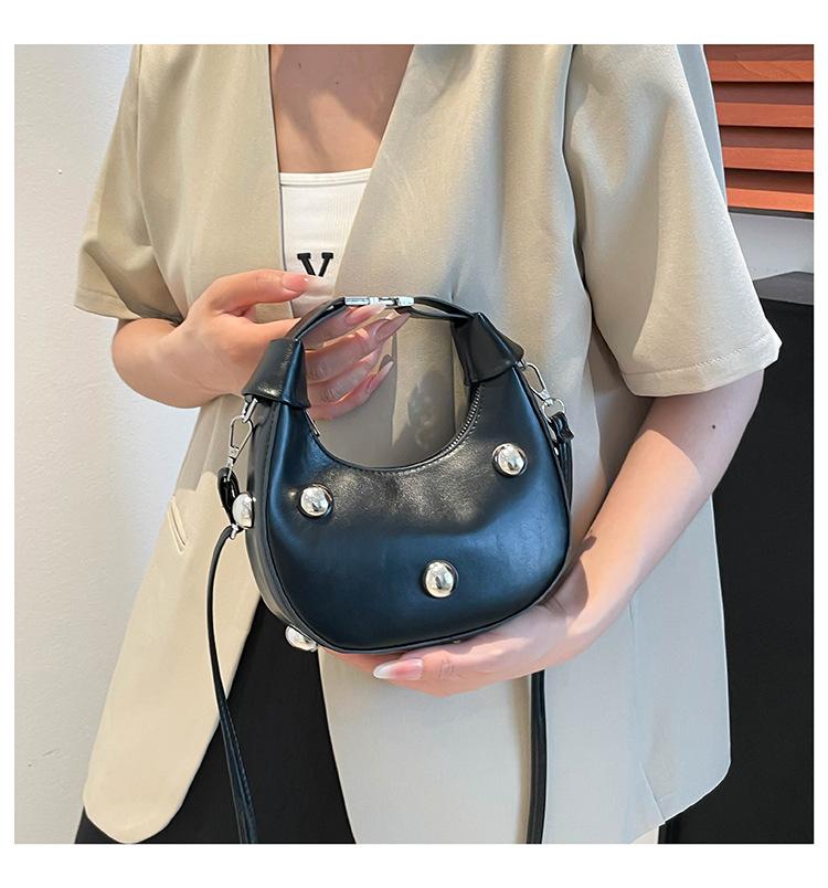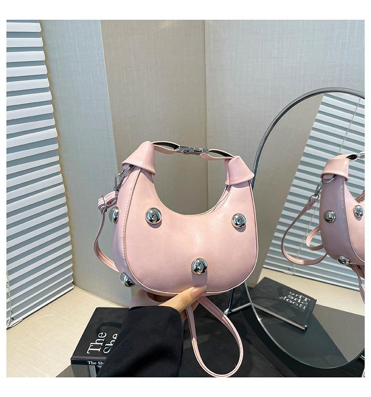 Bolso de Mano Media Luna con Remaches de Moda Coreana al por Mayor Bolso de Mujer 2025 Verano Nuevo Estilo Bolso de Hombro Bolso Cruzado para Viajar