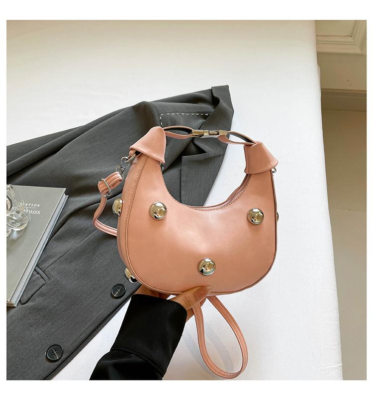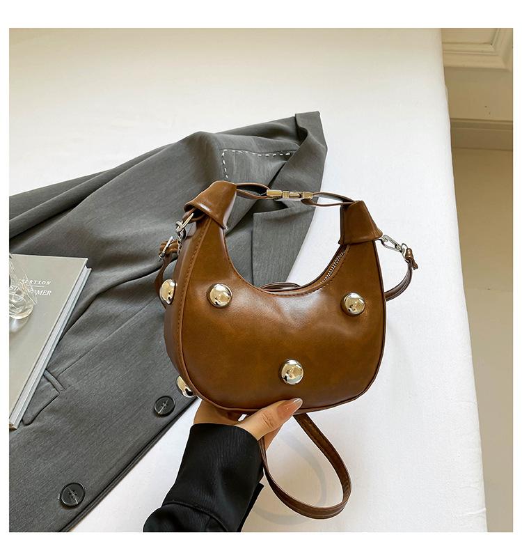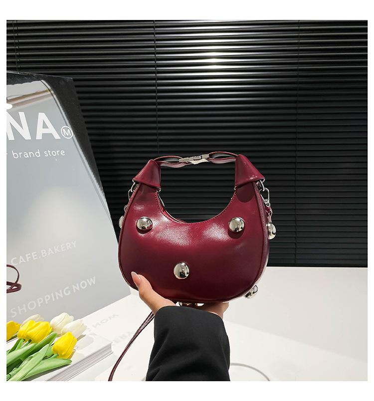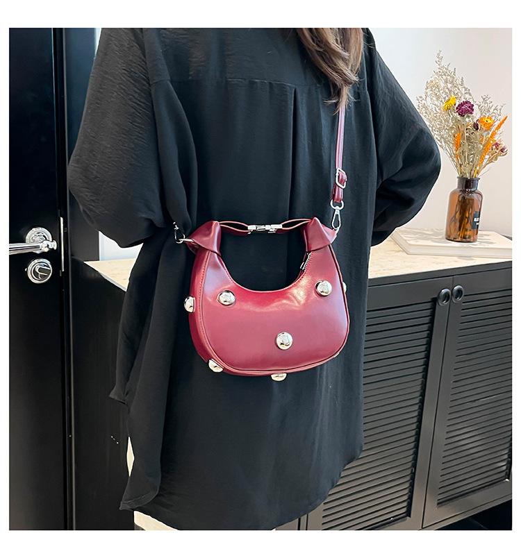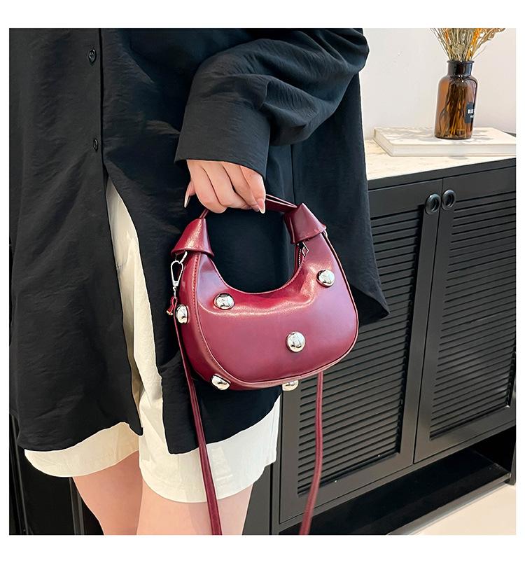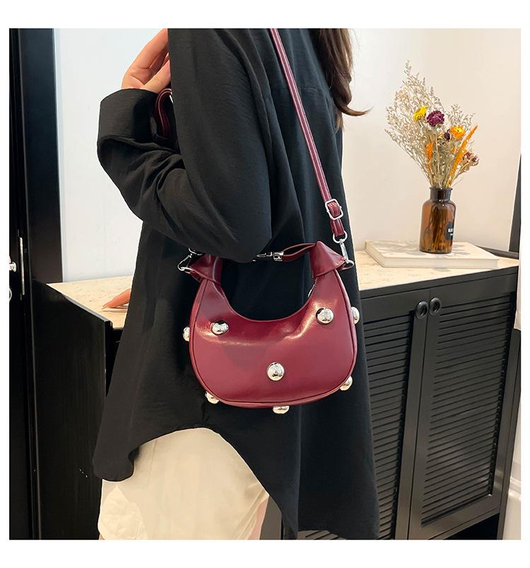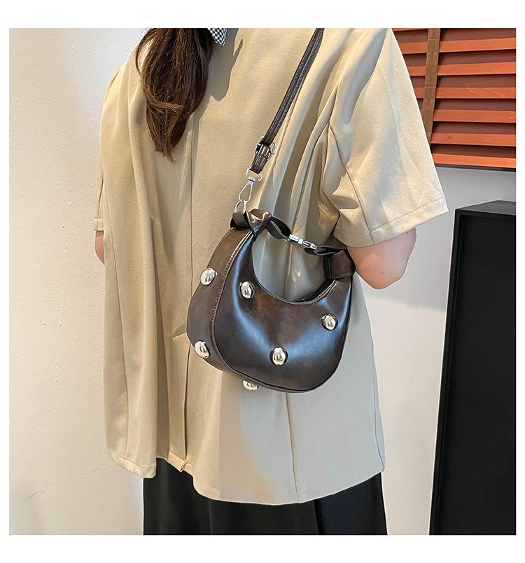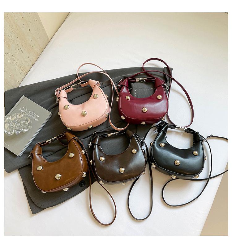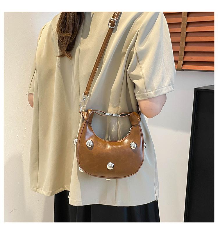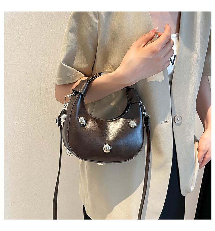 Bolso de Mano Media Luna con Remaches de Moda Coreana al por Mayor Bolso de Mujer 2025 Verano Nuevo Estilo Bolso de Hombro Bolso Cruzado para Viajar