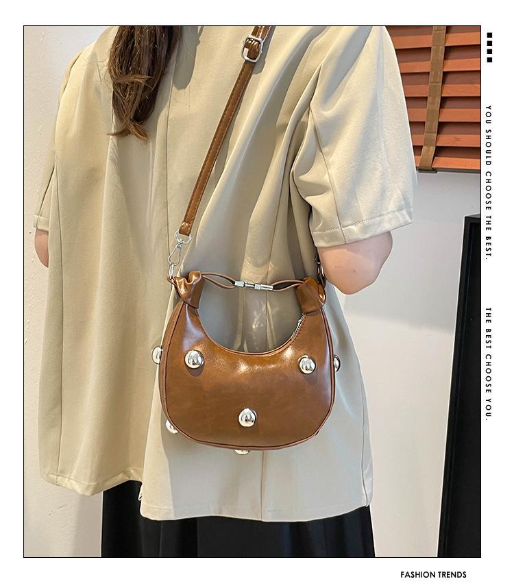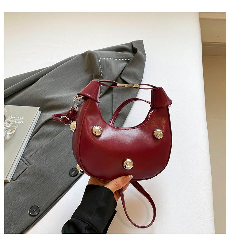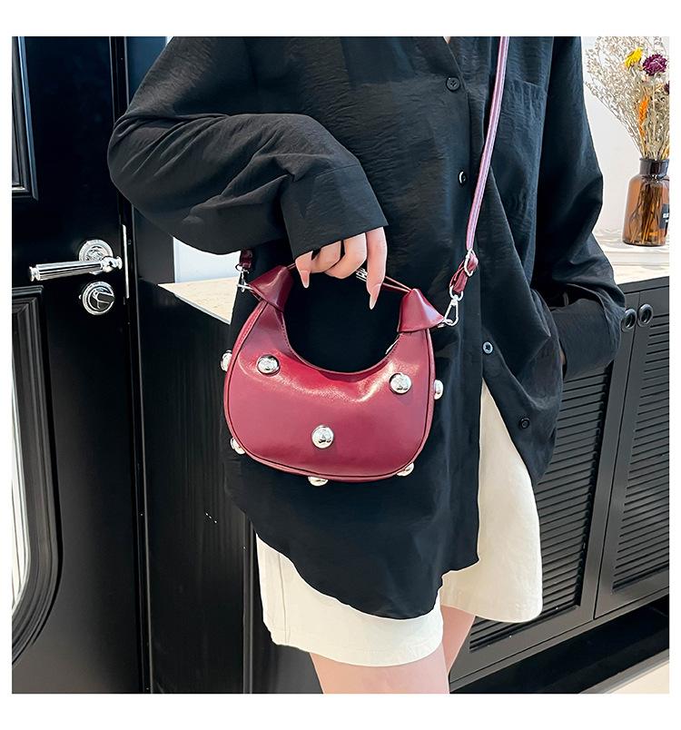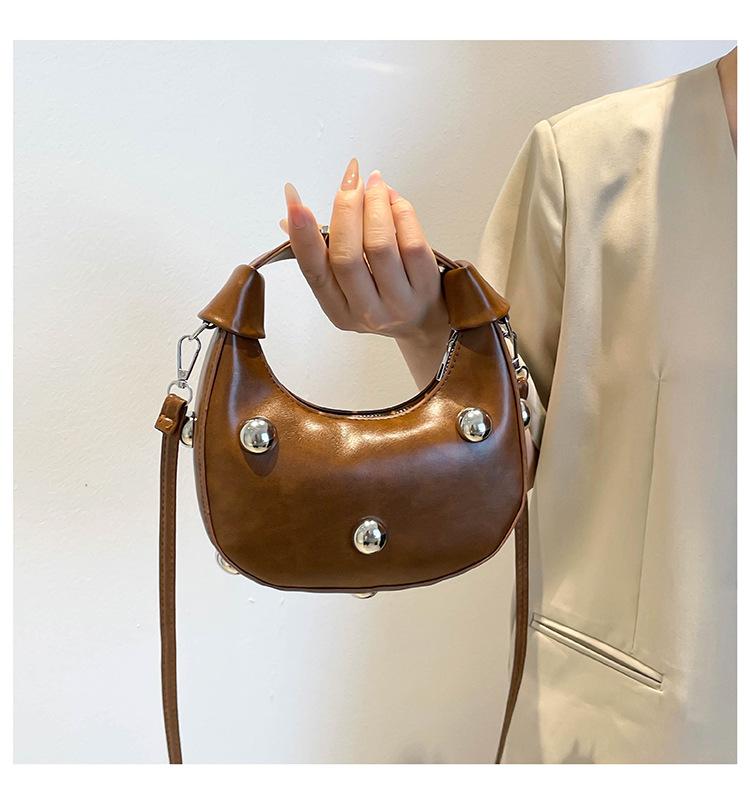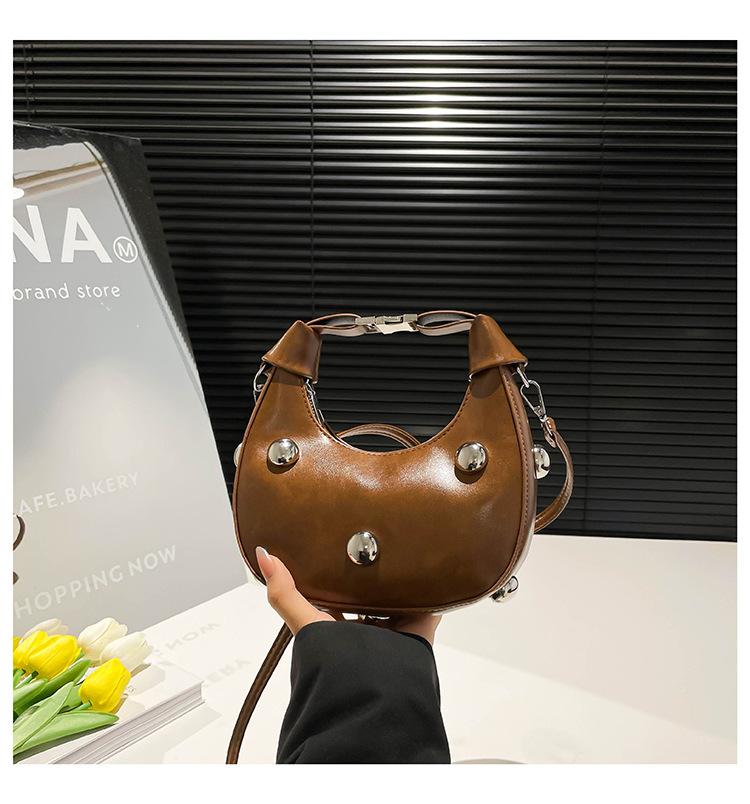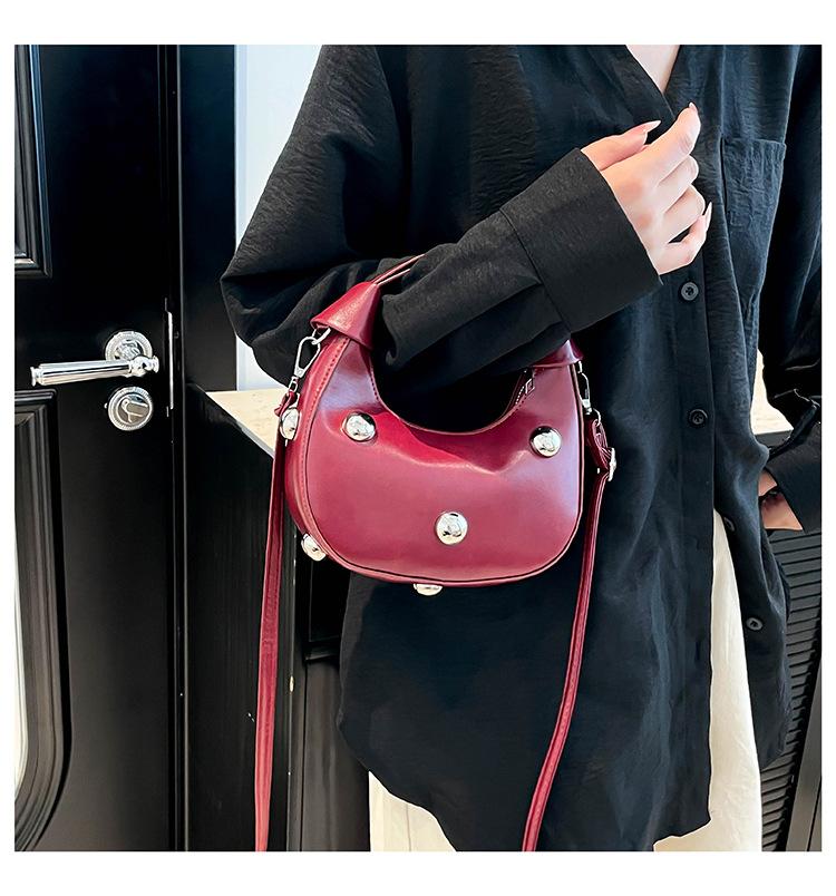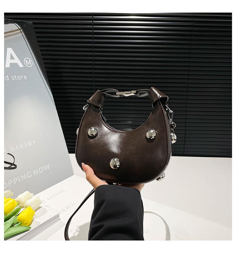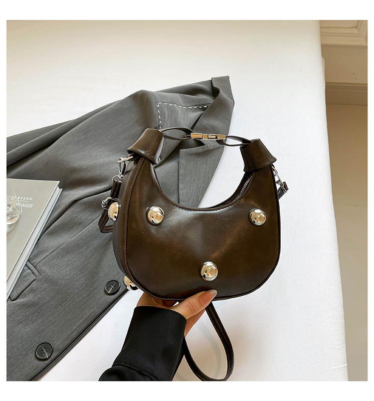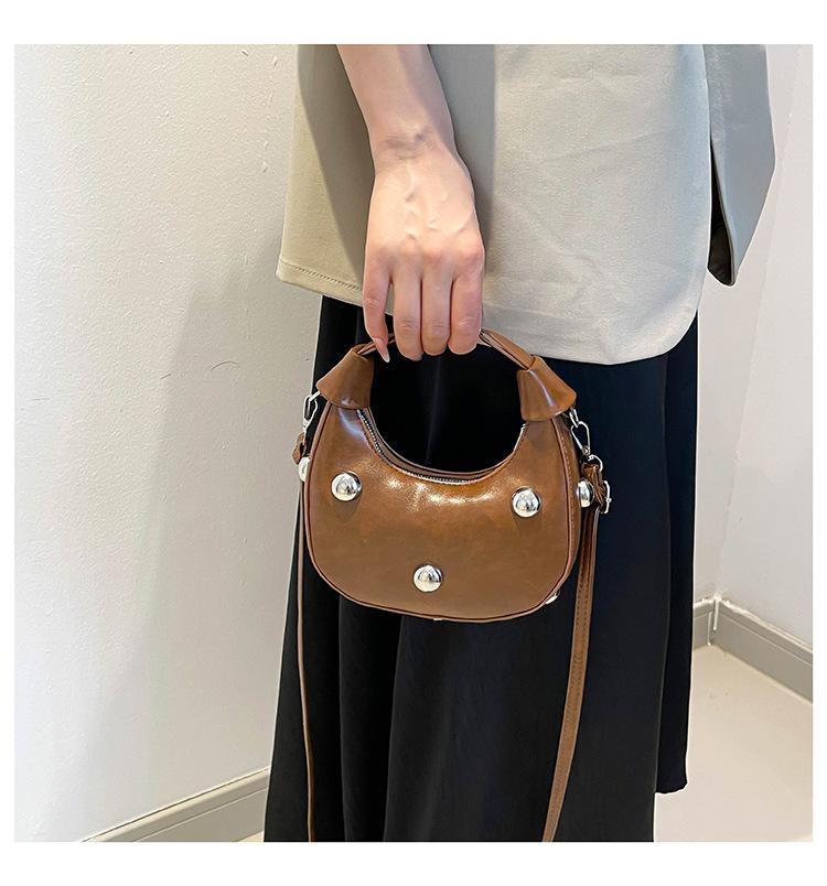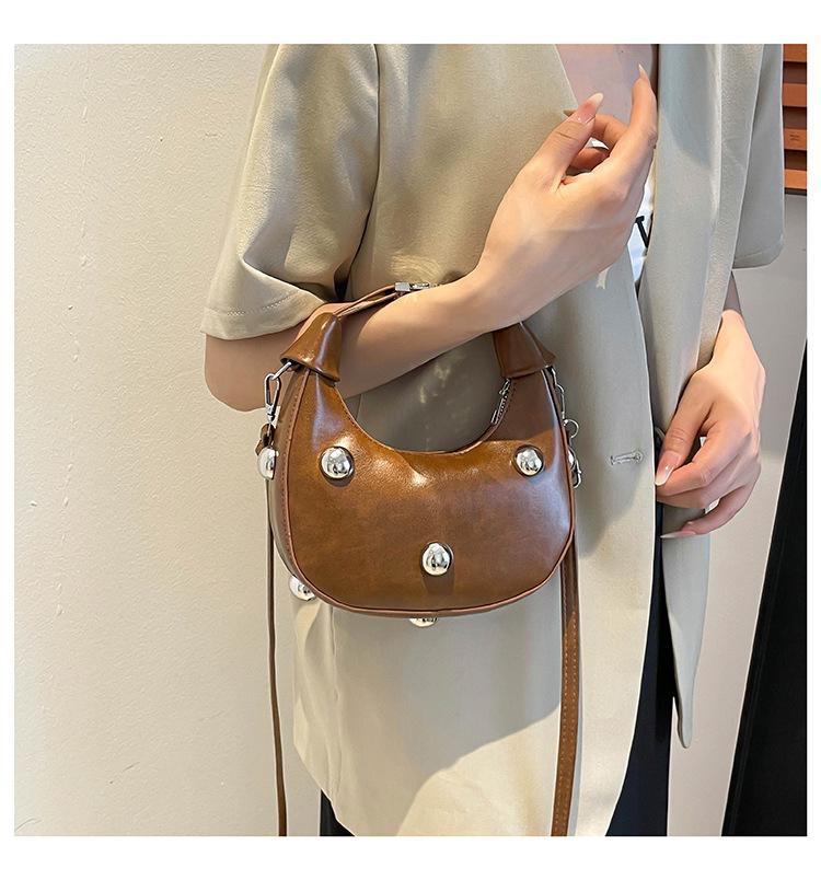 Bolso de Mano Media Luna con Remaches de Moda Coreana al por Mayor Bolso de Mujer 2025 Verano Nuevo Estilo Bolso de Hombro Bolso Cruzado para Viajar