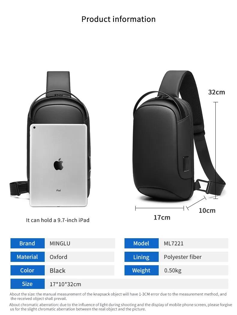 Nueva bolsa de pecho para hombre, bolsa de mensajero de gran capacidad, bolsa de hombro casual, bolsa de hombro multifuncional impermeable para exteriores, bolsa para hombre transfronteriza