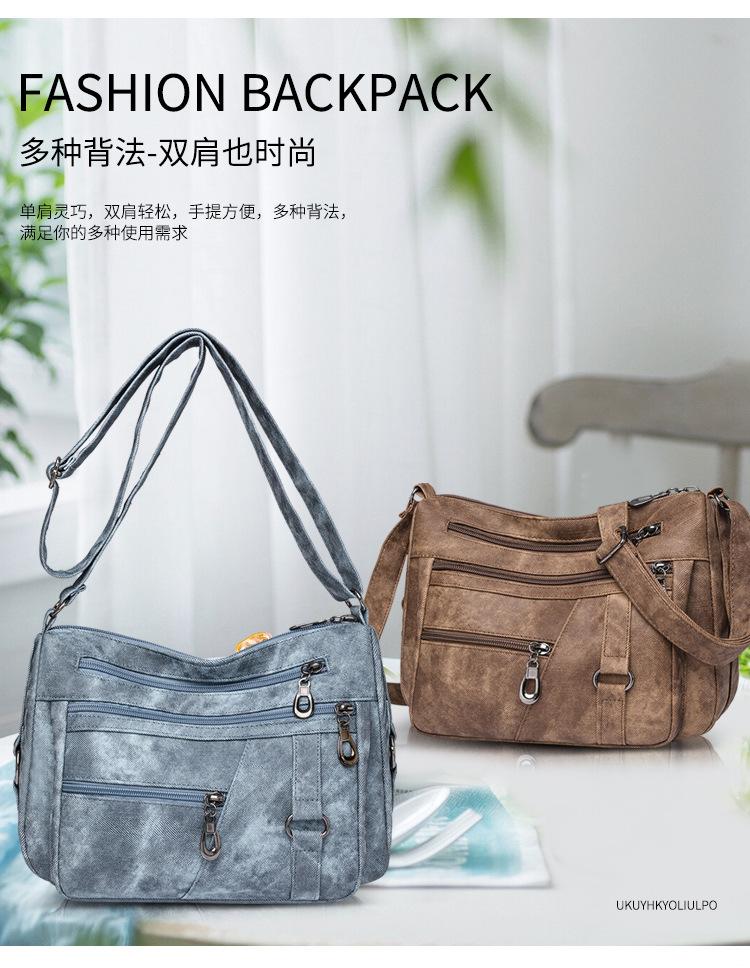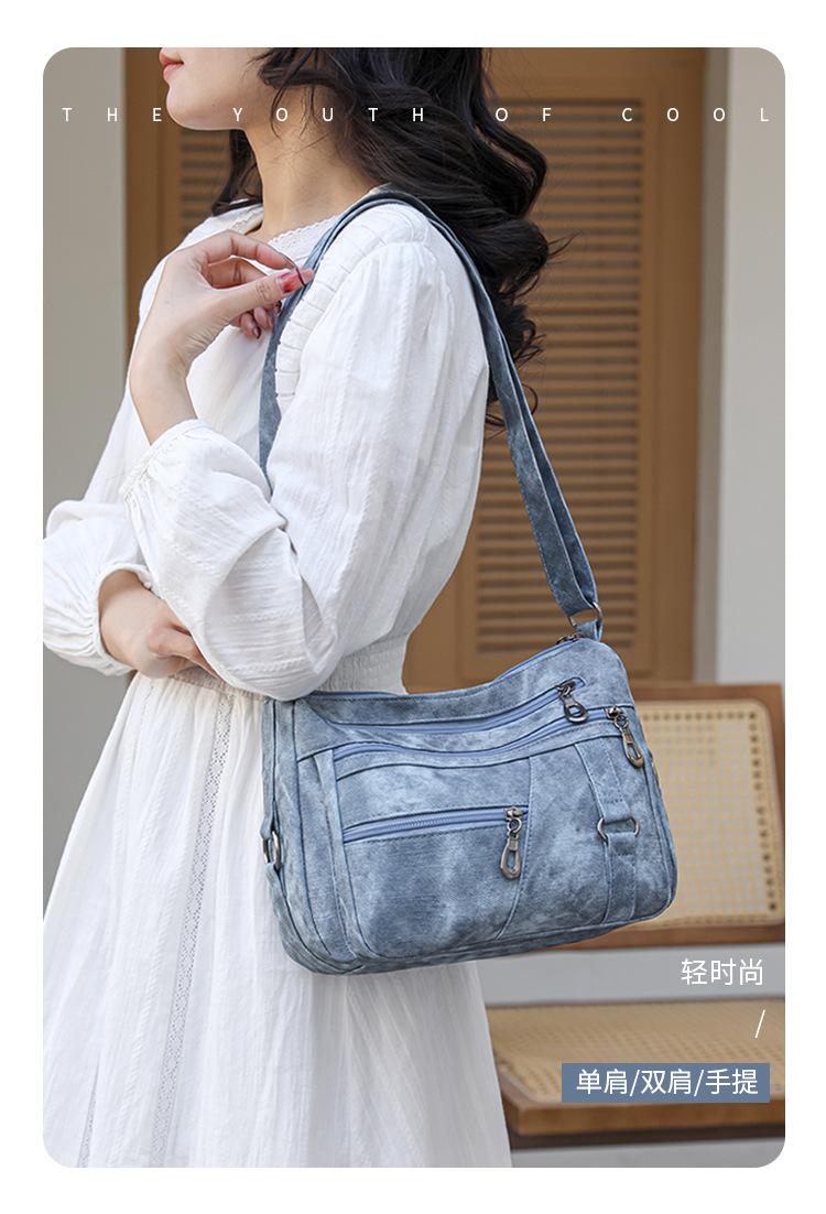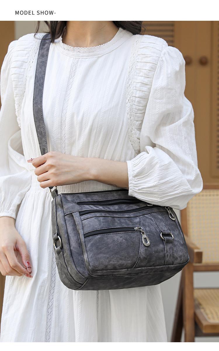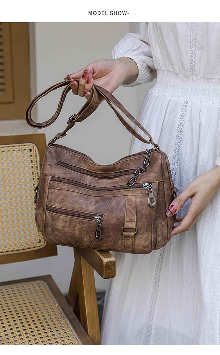 Bolso de Cuero Suave Multicapa 2024 Nuevo Bolso Vintage para Mujer Moderno Combinable Bolso para Madre de Mediana Edad Bolso de Hombro Cruzado de Gran Capacidad