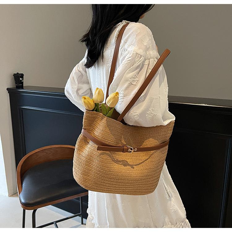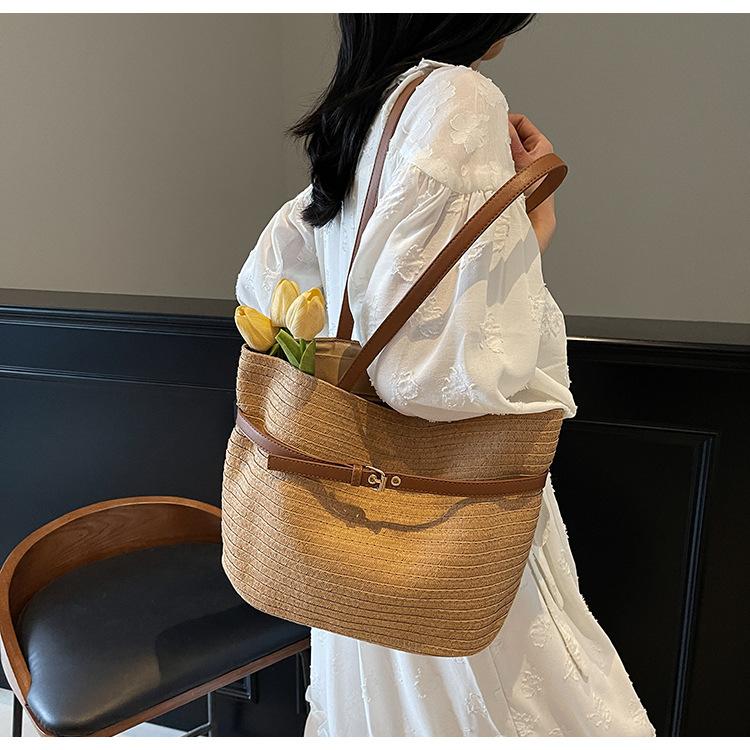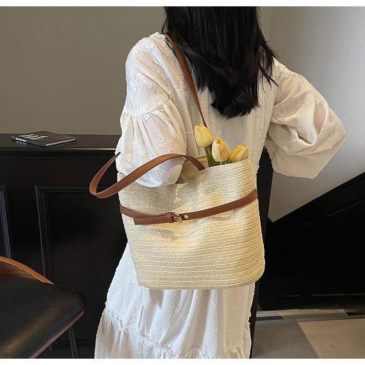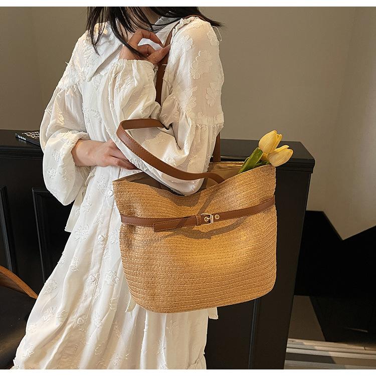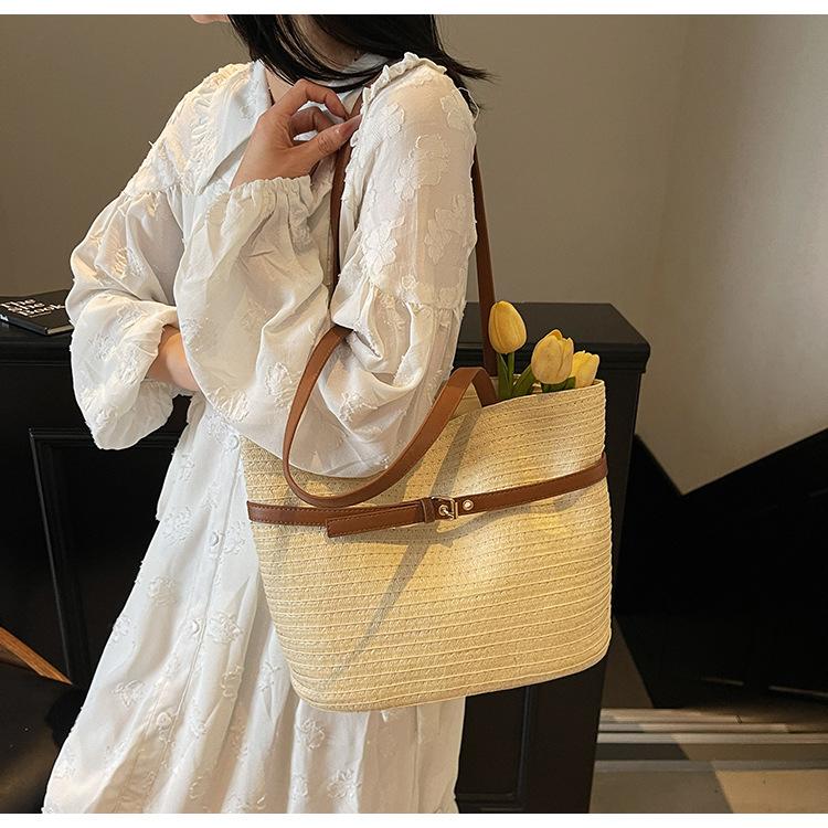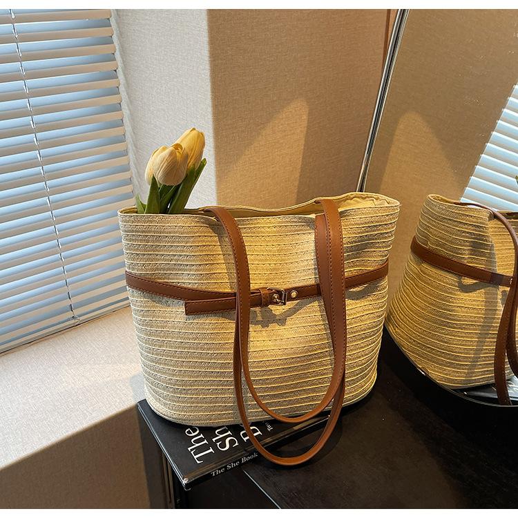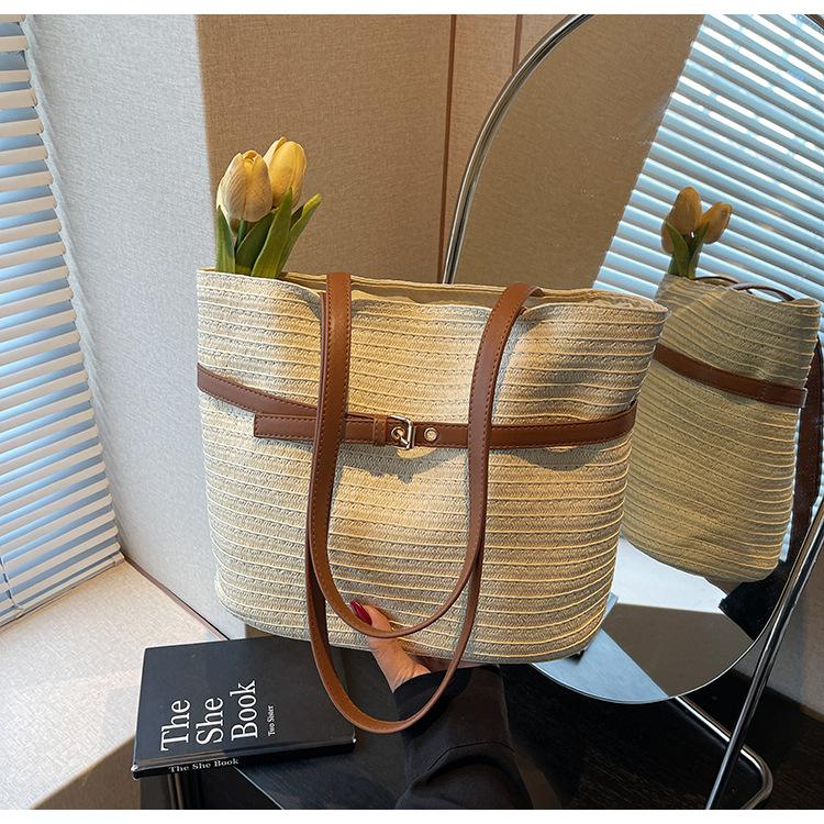 Bolso Tejido de Gran Capacidad para Mujer para Viajes de Verano Playa 2025 Nuevo Bolso Tote de Hombro
