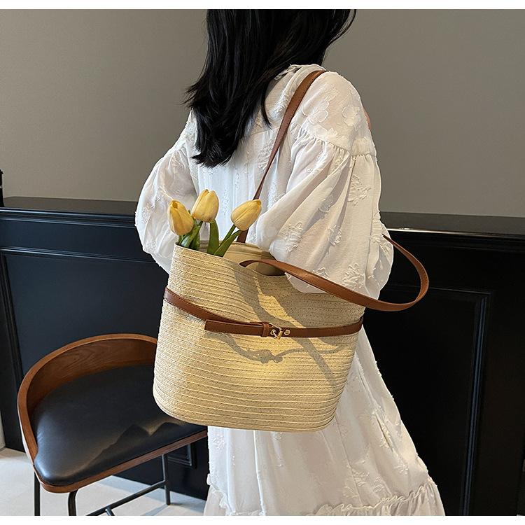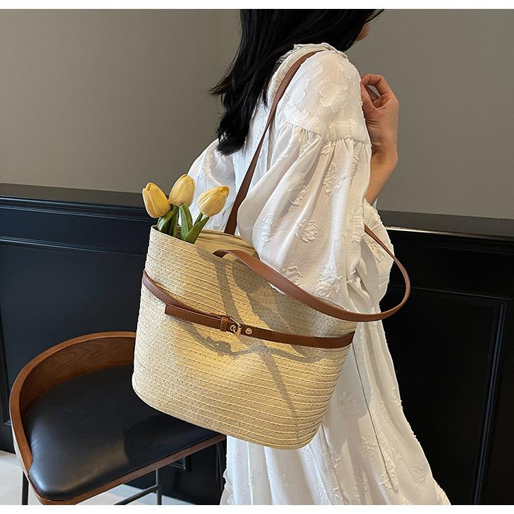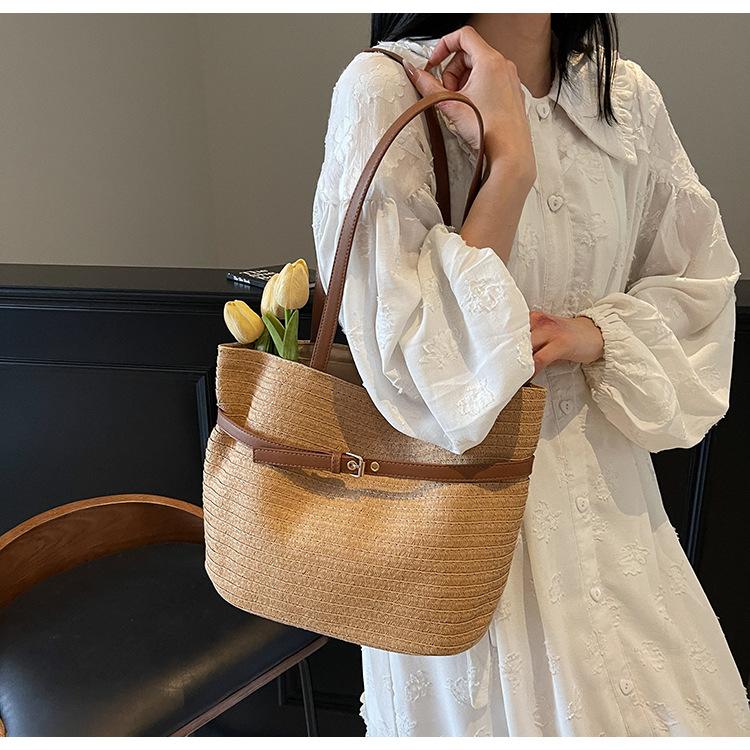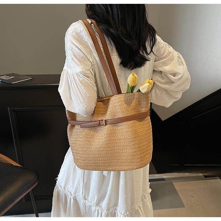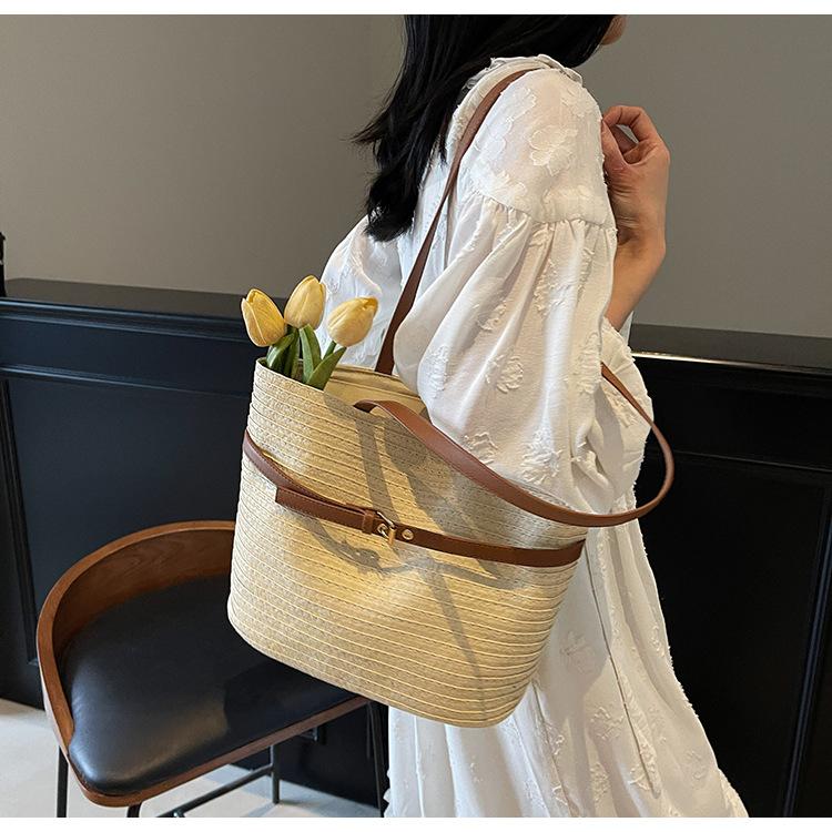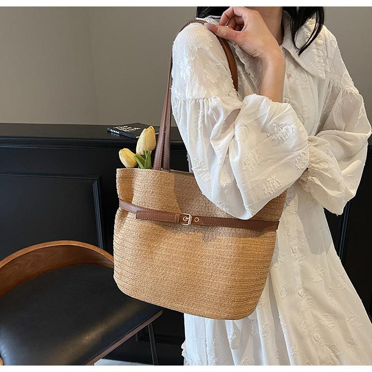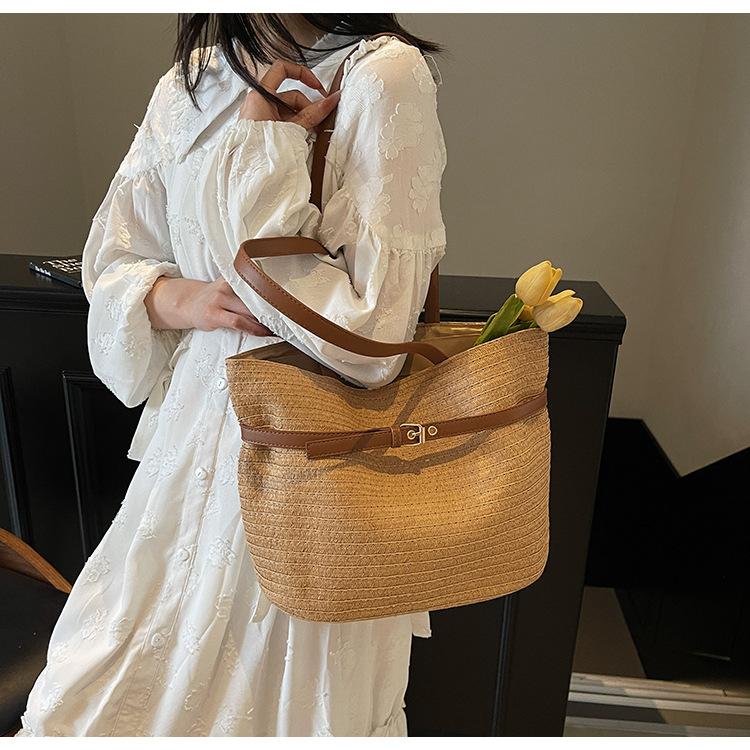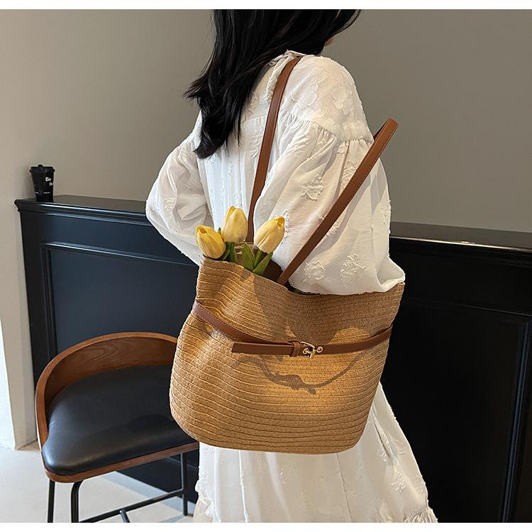 Bolso Tejido de Gran Capacidad para Mujer para Viajes de Verano Playa 2025 Nuevo Bolso Tote de Hombro