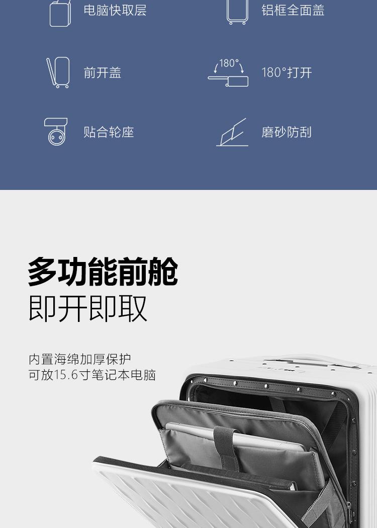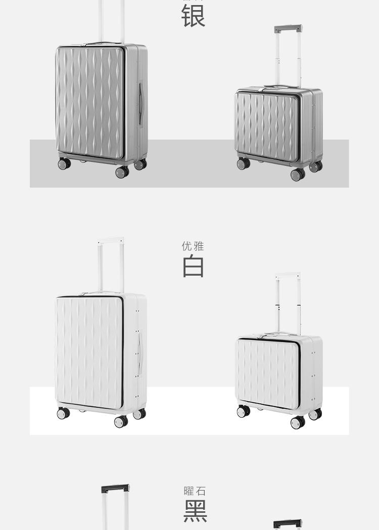 Maleta Trolley de Aluminio de Apertura Frontal al por Mayor Personalizada, Maleta de Moda, Maleta de Cabina Multifuncional de Gran Capacidad