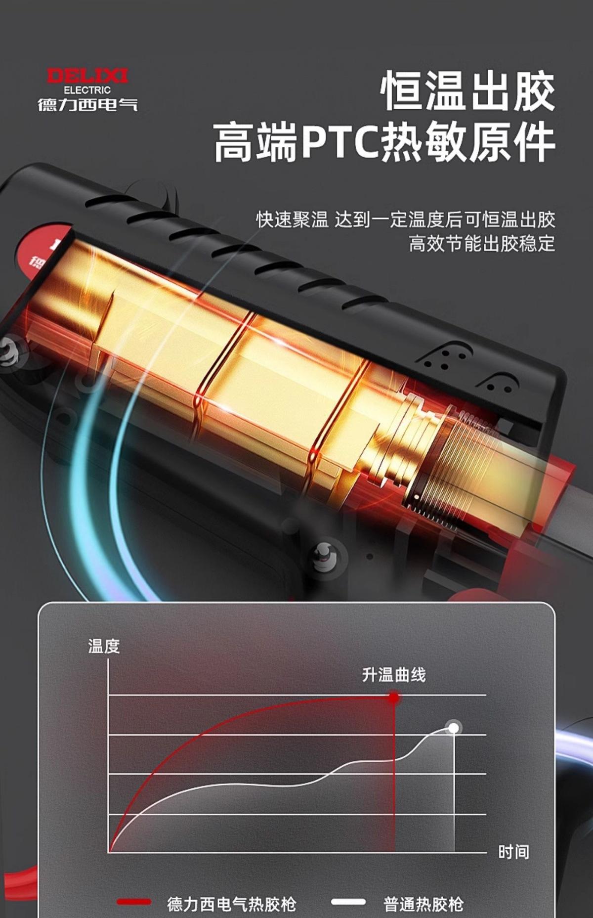 Pistola de Pegamento Caliente Delixi Electric para Manualidades Infantiles y Uso Doméstico, Pistola de Fusión en Caliente de Alta Potencia, Barra de Pegamento de Fusión en Caliente