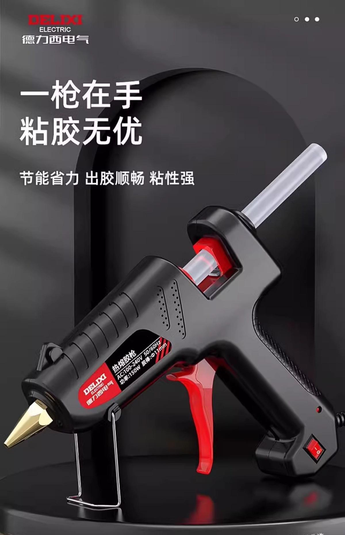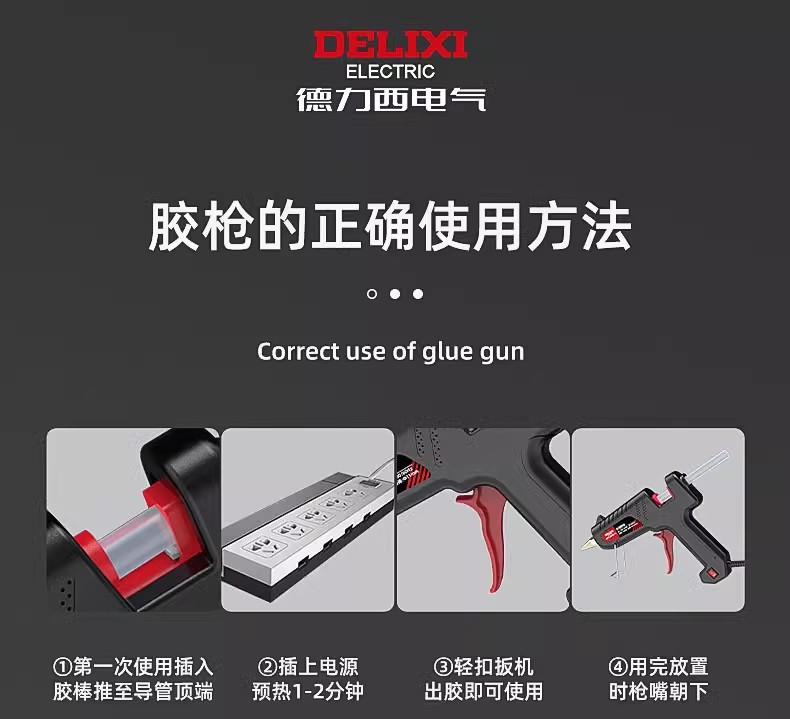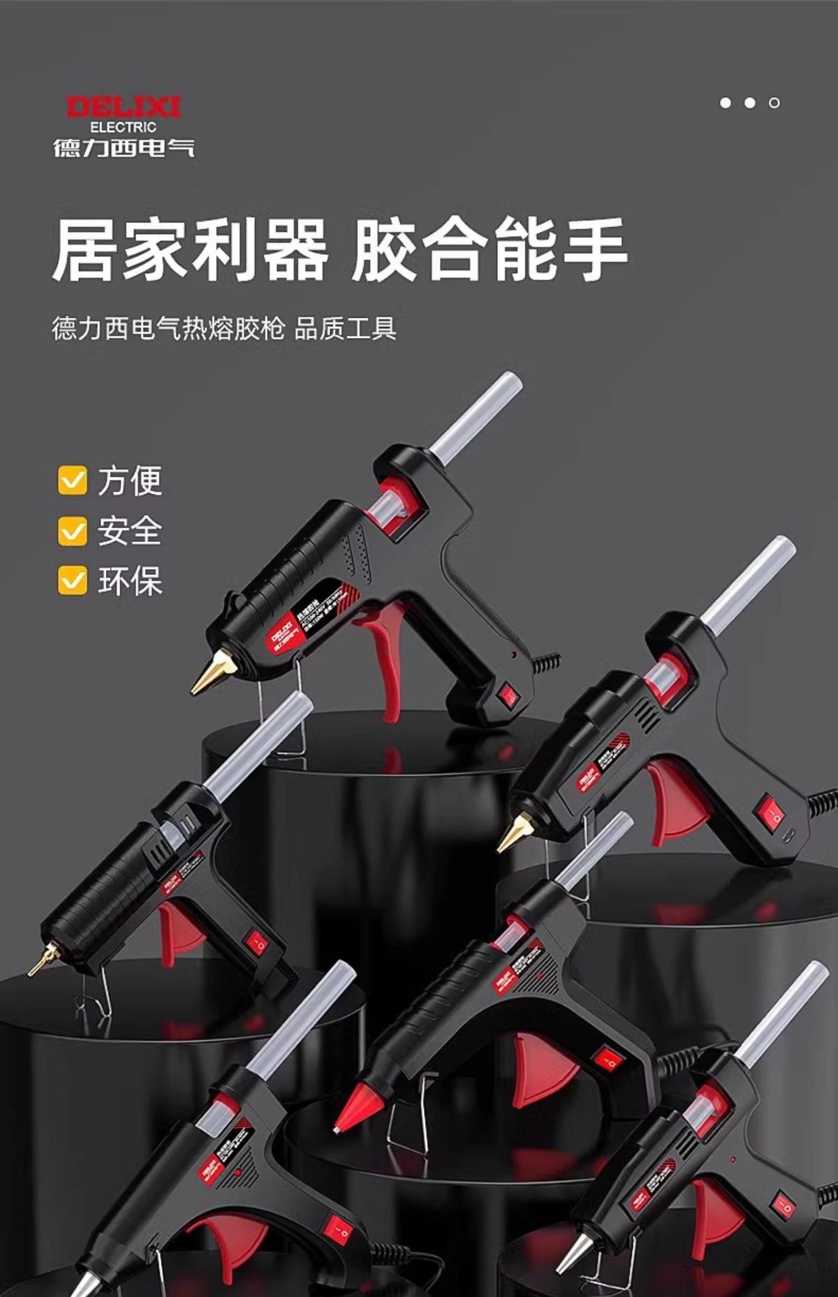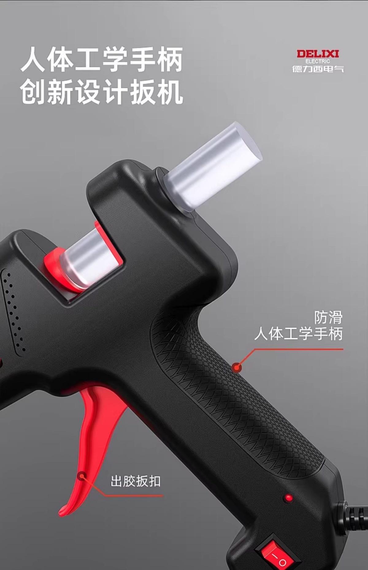 Delixi electric - black hot melt glue gun + 60 glue sticks + advanced storage bag