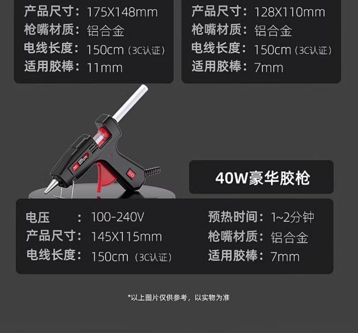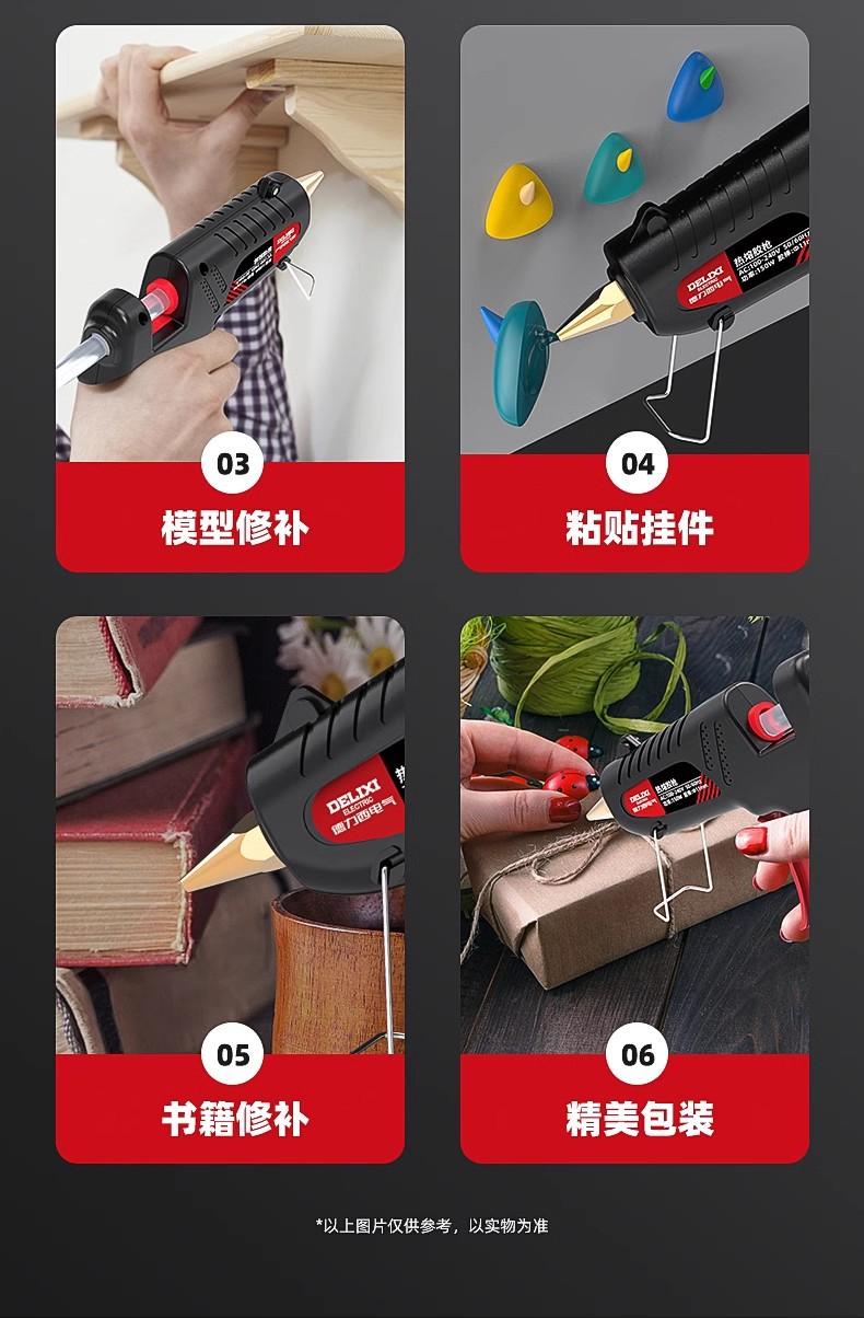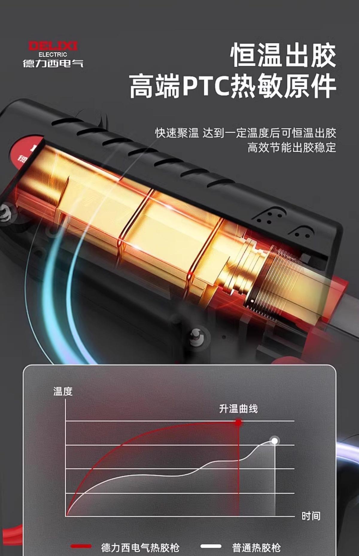 Delixi electric - black hot melt glue gun + 60 glue sticks + advanced storage bag