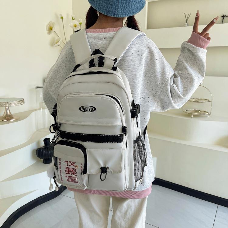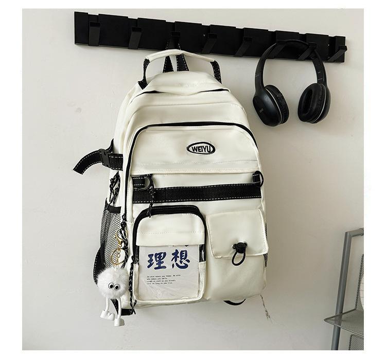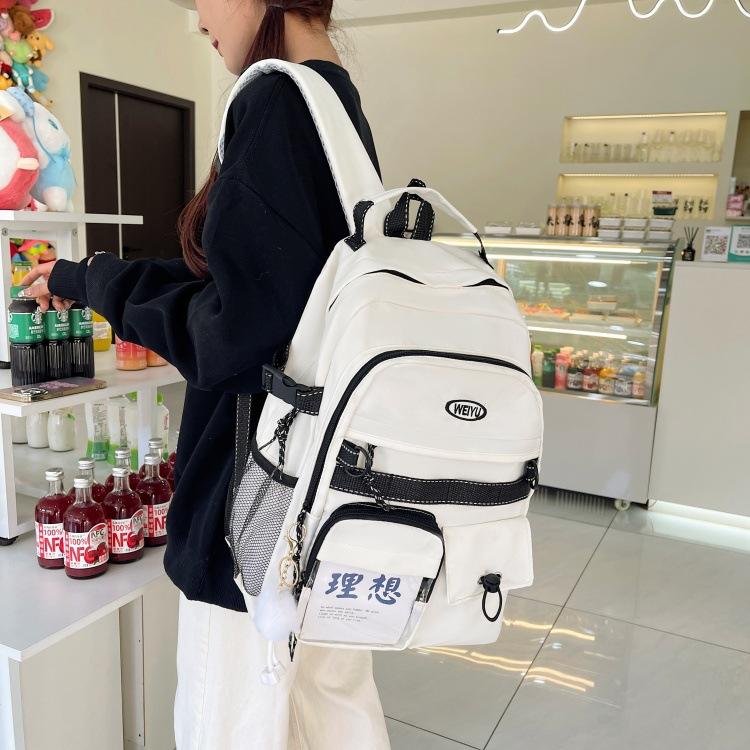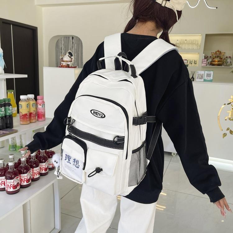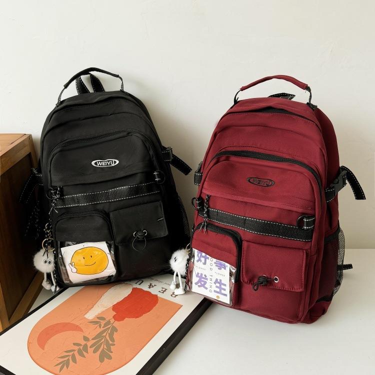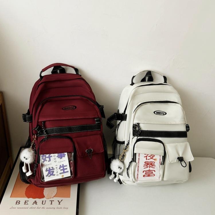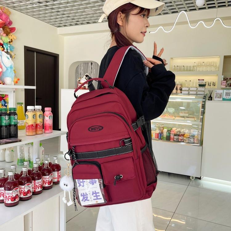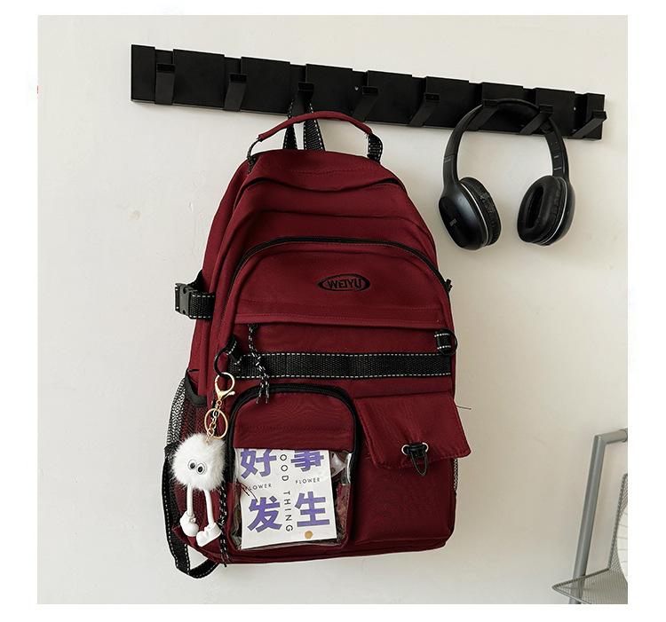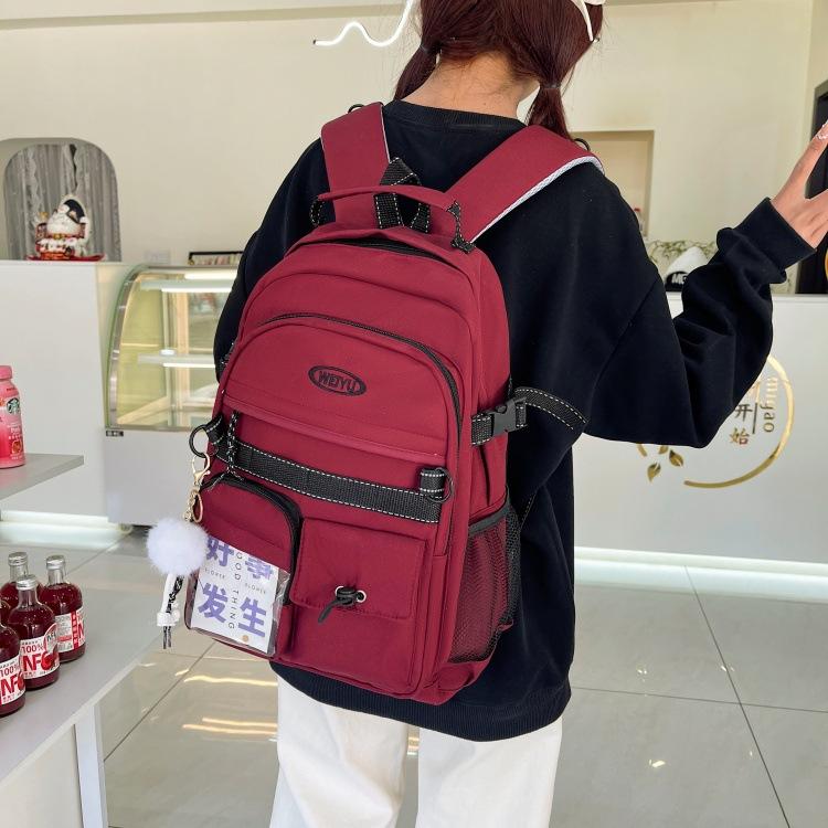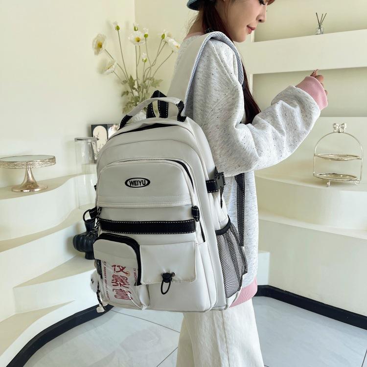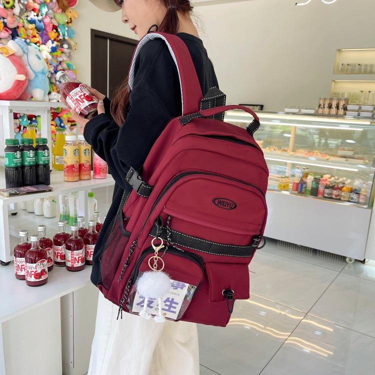 Mochila Escolar de Gran Capacidad para Secundaria y Preparatoria para Mujer, Color Sólido, Simple, Casual, para Viaje, Mochila de Lona de Moda que Combina con Todo