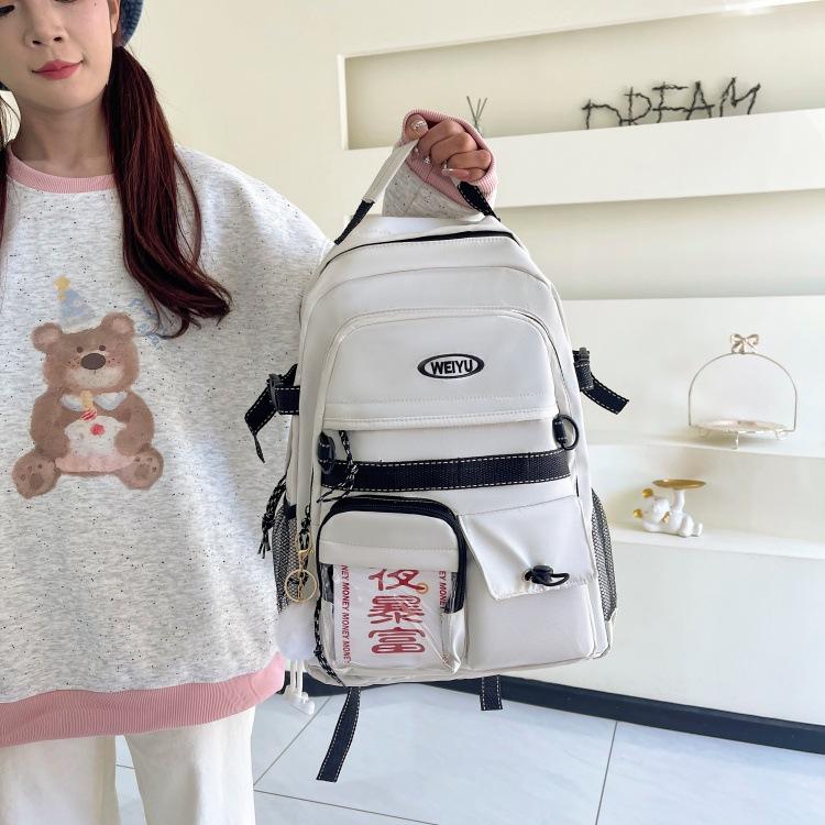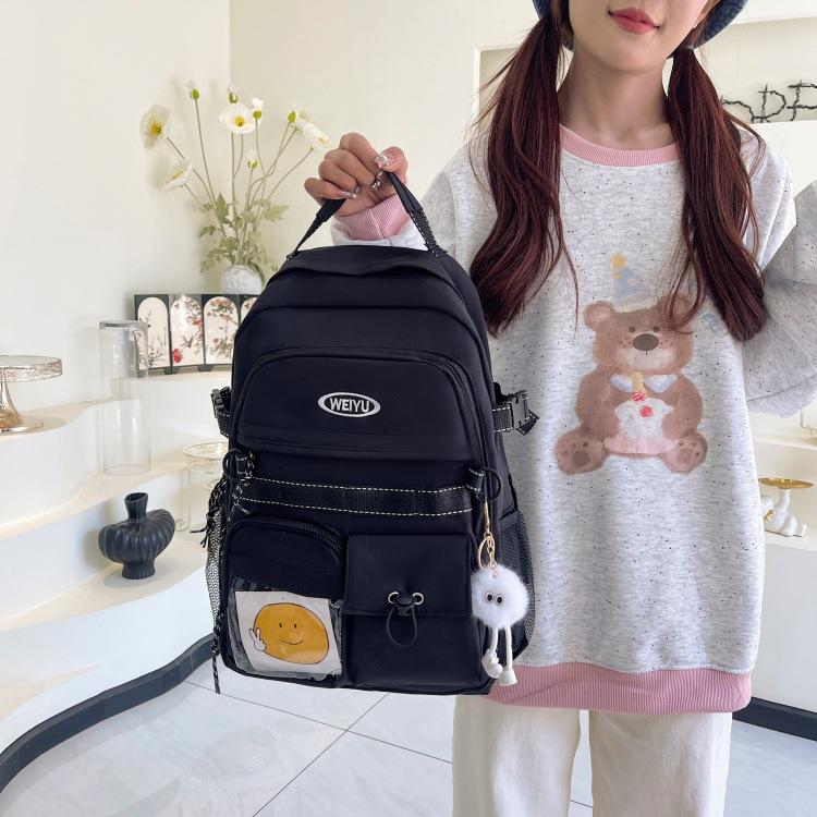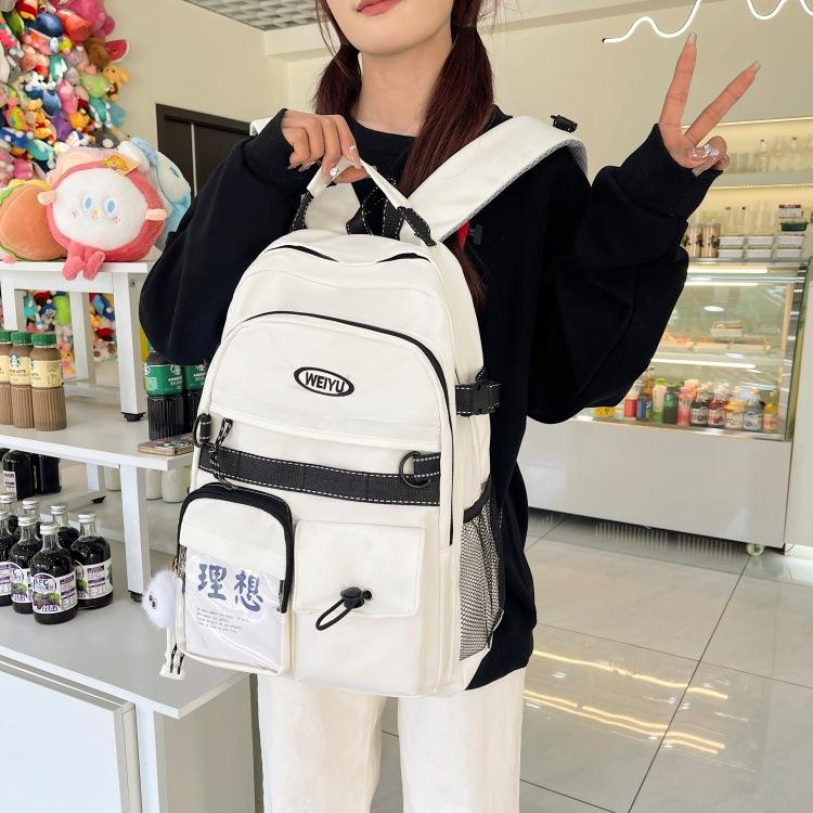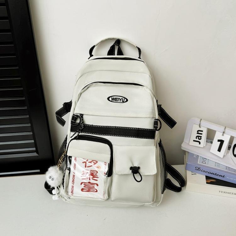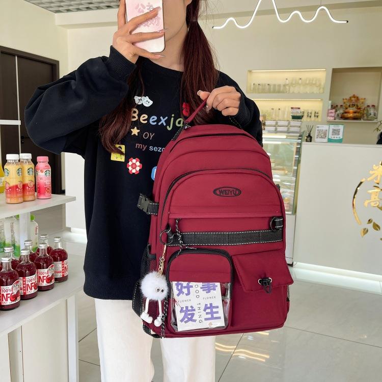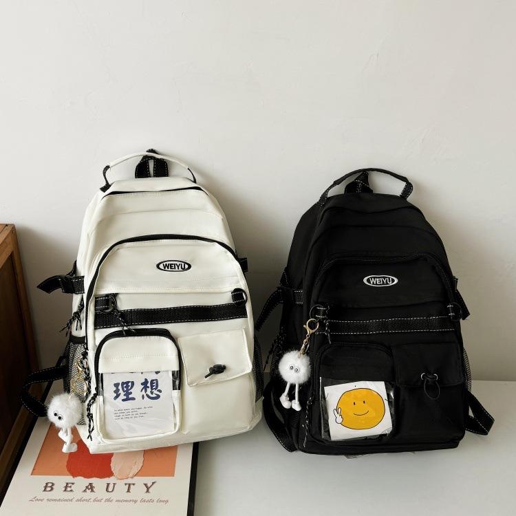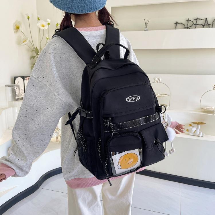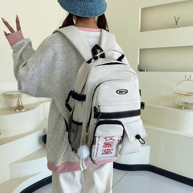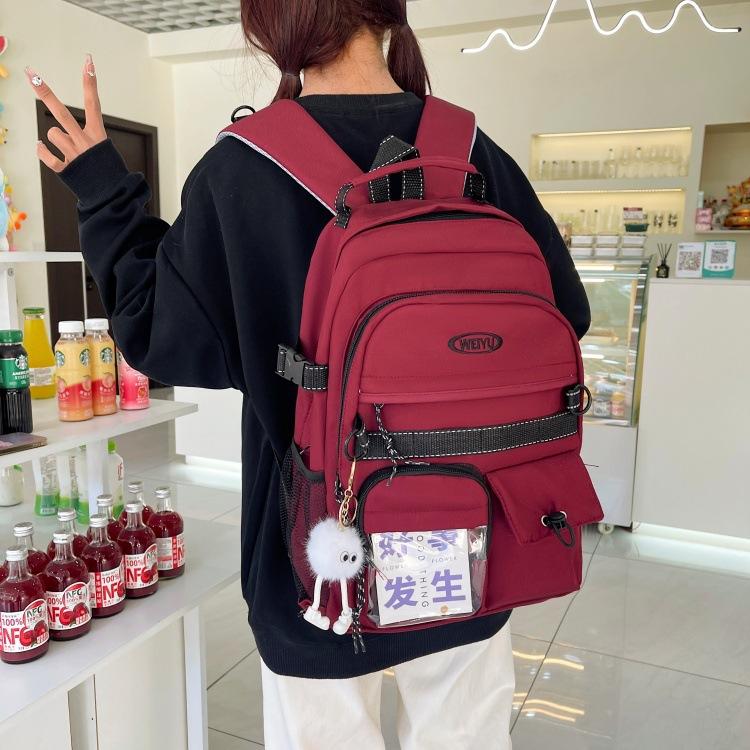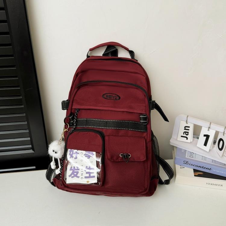 Mochila Escolar de Gran Capacidad para Secundaria y Preparatoria para Mujer, Color Sólido, Simple, Casual, para Viaje, Mochila de Lona de Moda que Combina con Todo