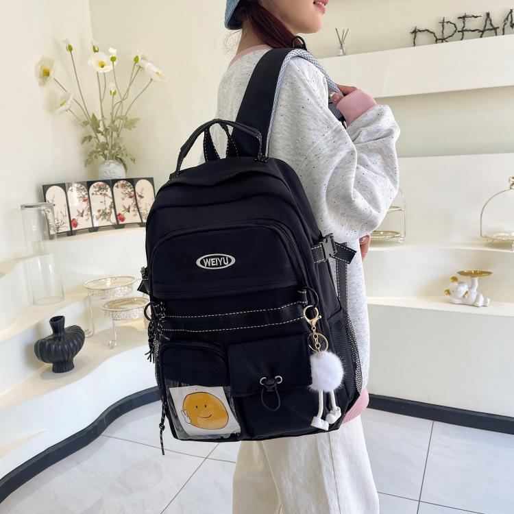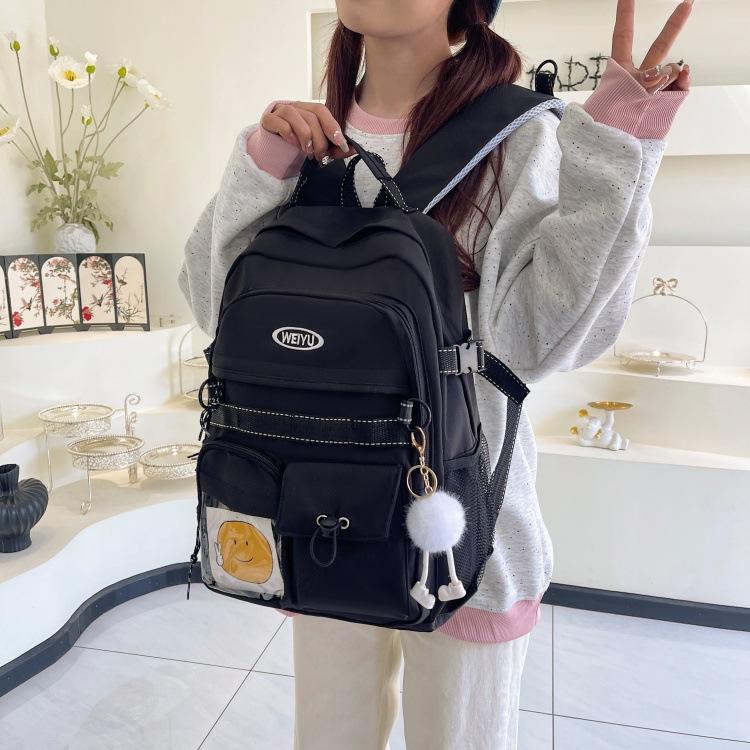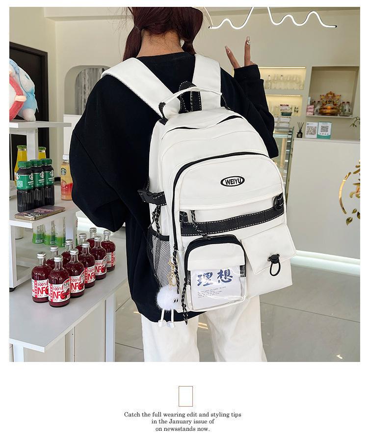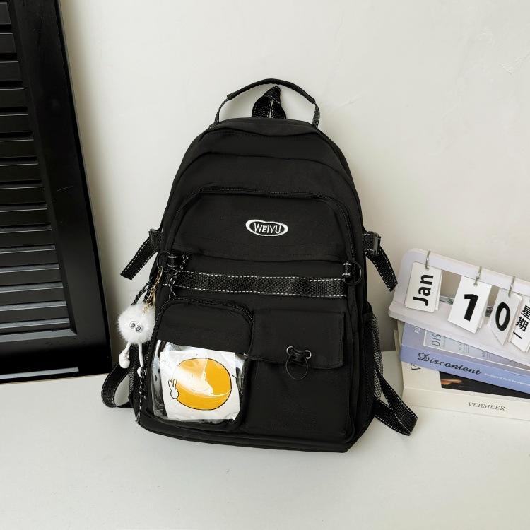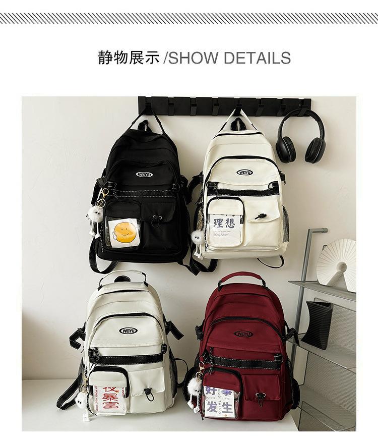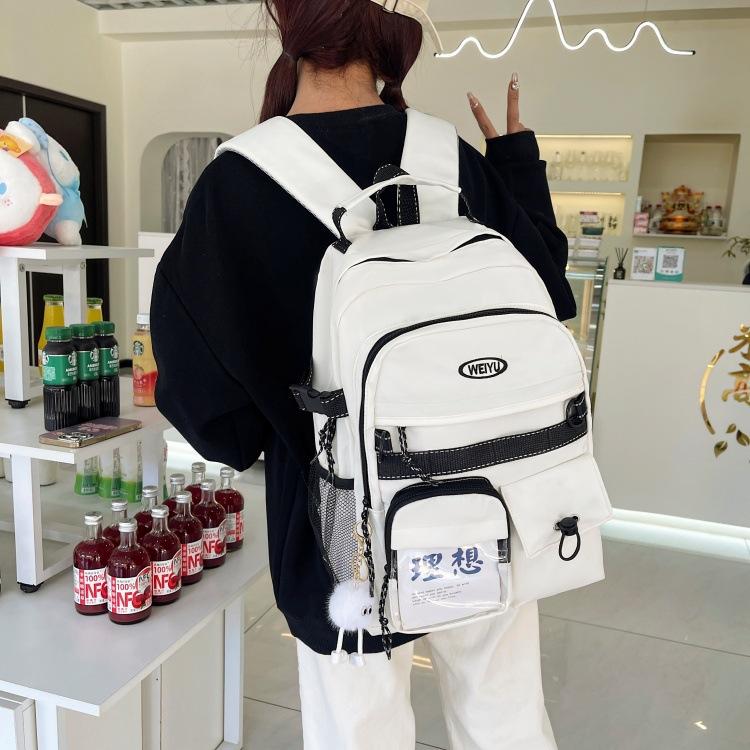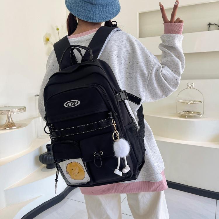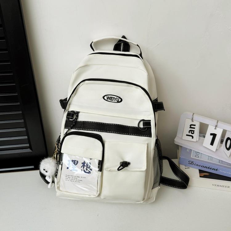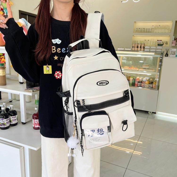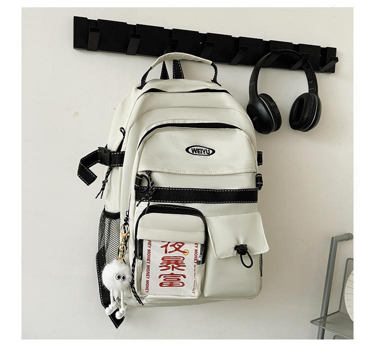 Mochila Escolar de Gran Capacidad para Secundaria y Preparatoria para Mujer, Color Sólido, Simple, Casual, para Viaje, Mochila de Lona de Moda que Combina con Todo