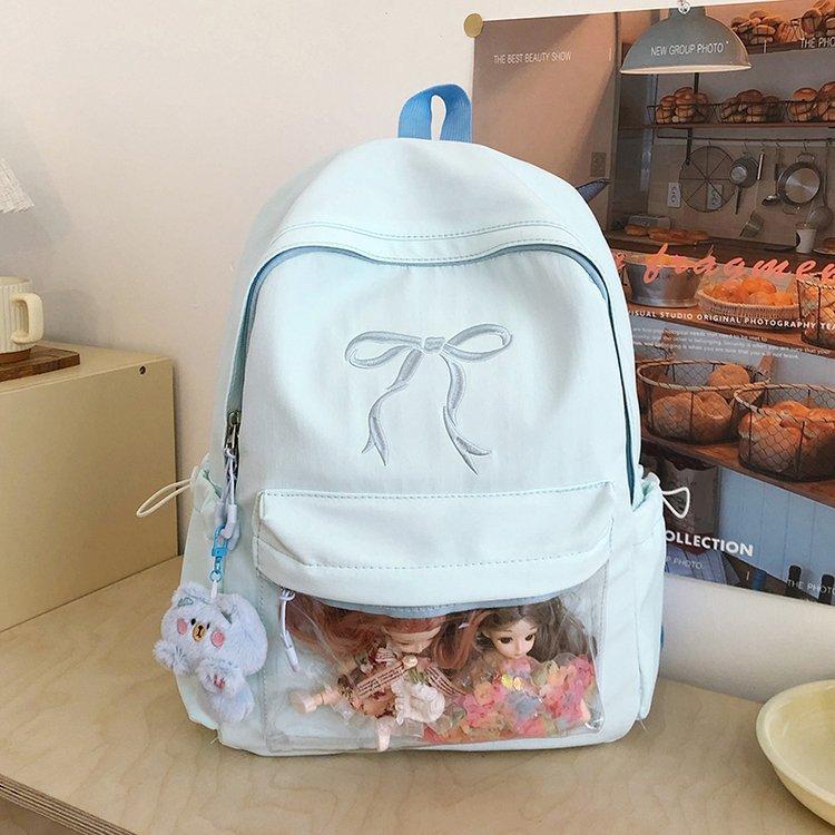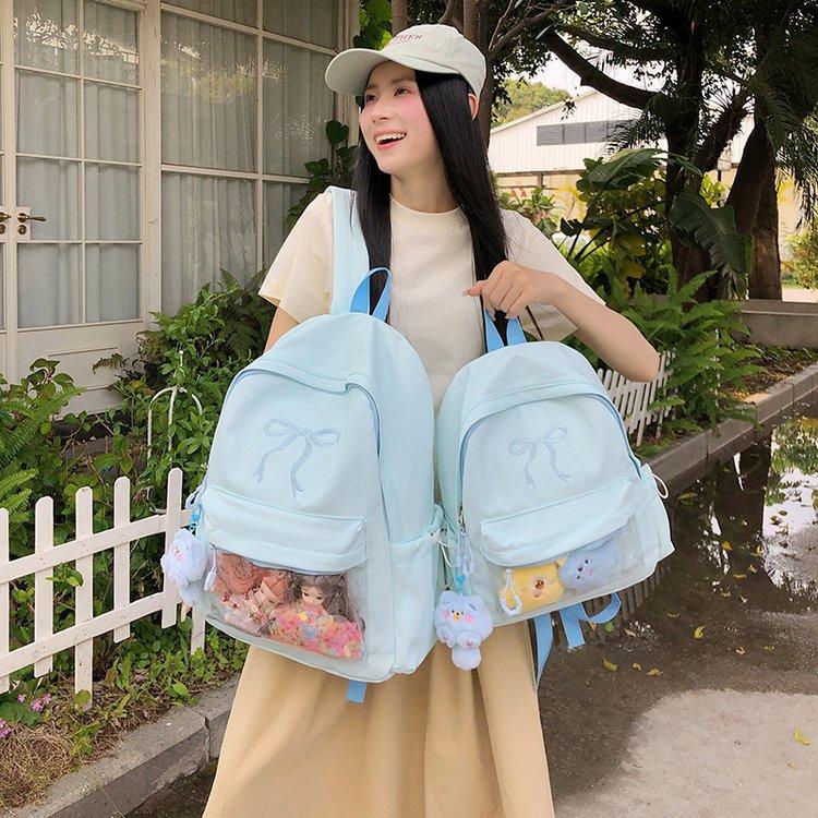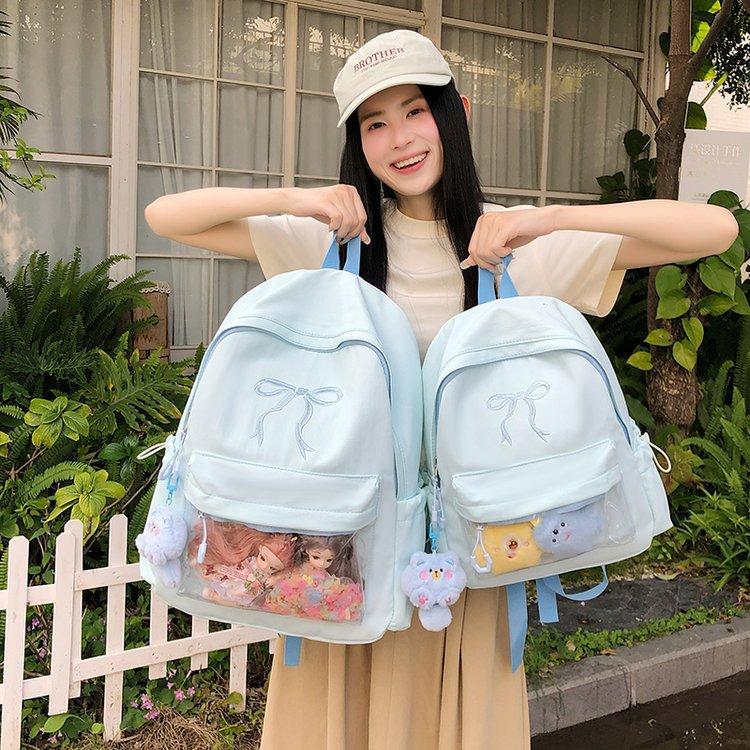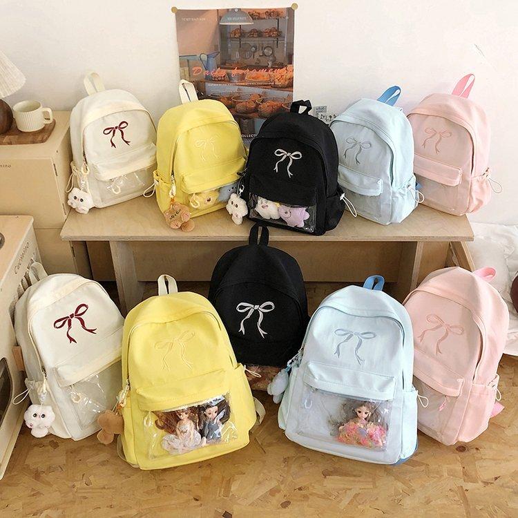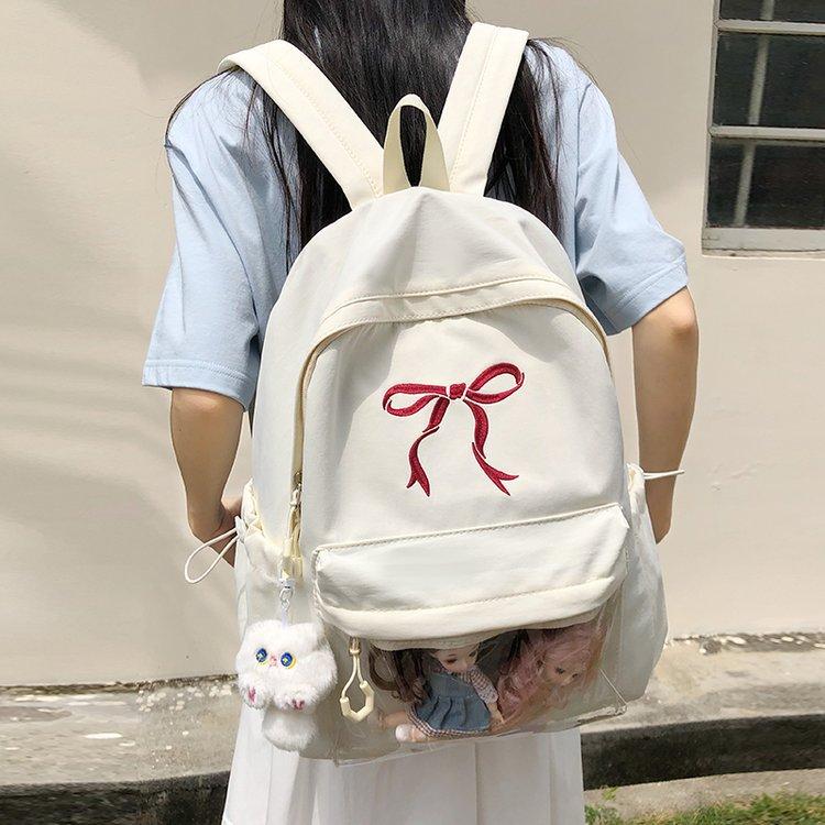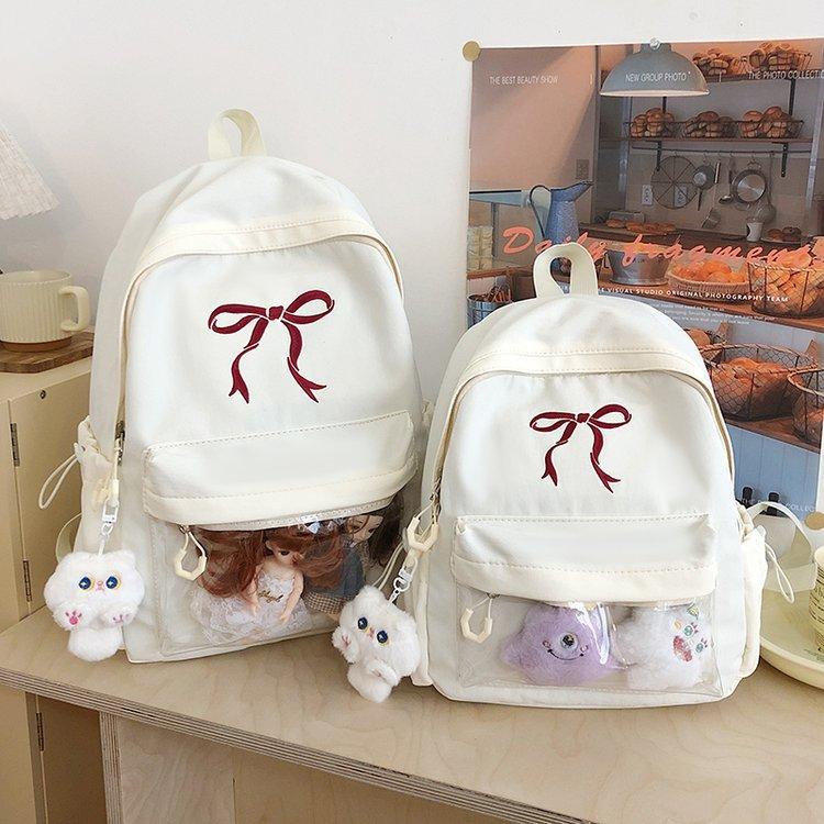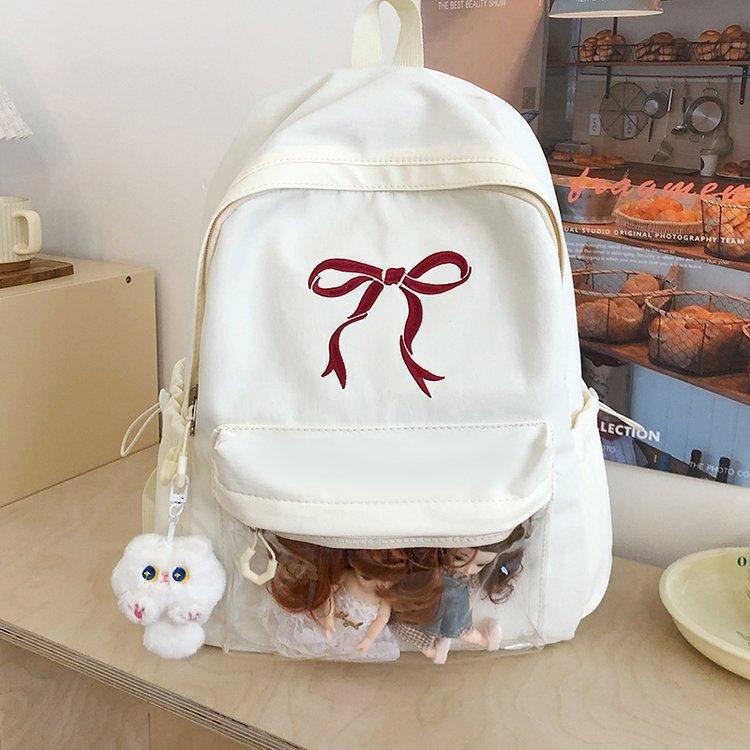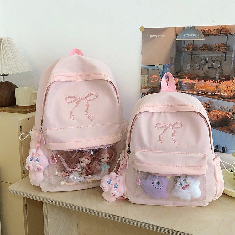 Bolsa de Dolor para Niña Versátil Japonesa de Gran Capacidad, Bolsa para Computadora para Estudiante, Mochila Escolar Linda con Lazo para Estudiante de Preparatoria