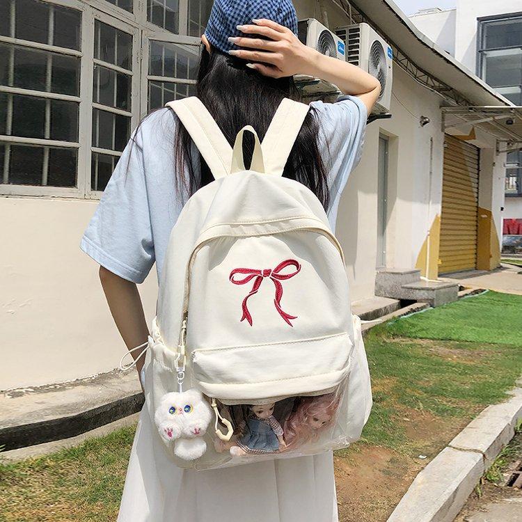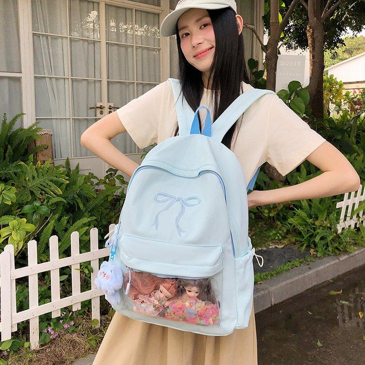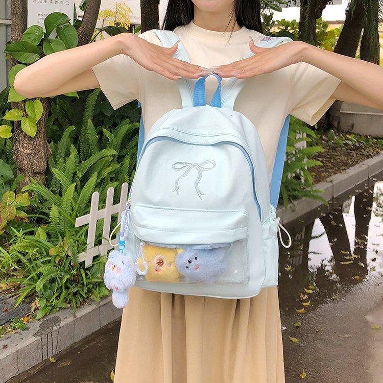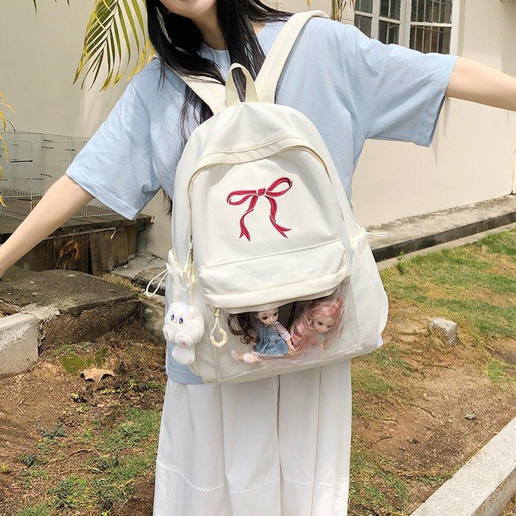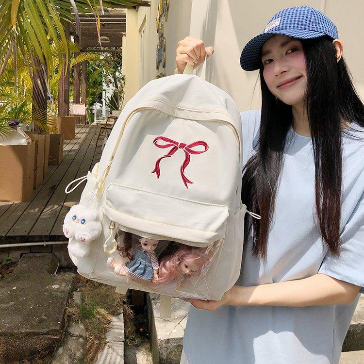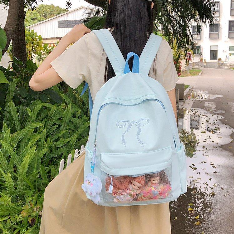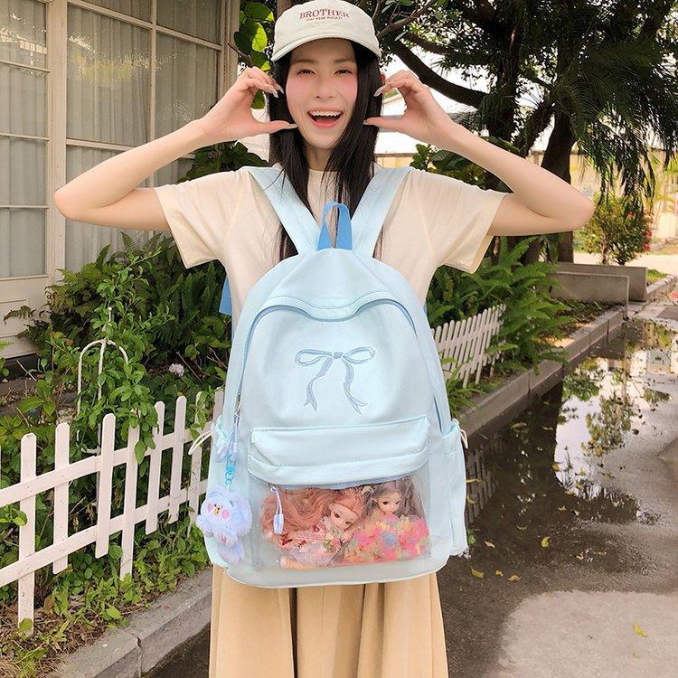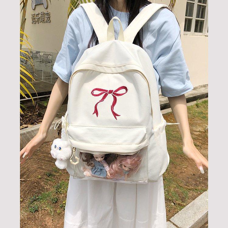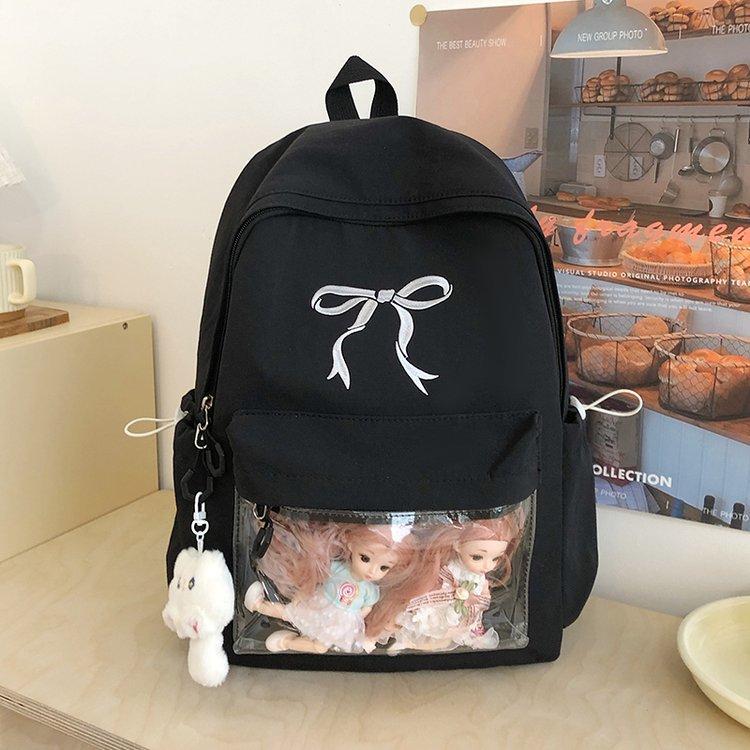 Bolsa de Dolor para Niña Versátil Japonesa de Gran Capacidad, Bolsa para Computadora para Estudiante, Mochila Escolar Linda con Lazo para Estudiante de Preparatoria