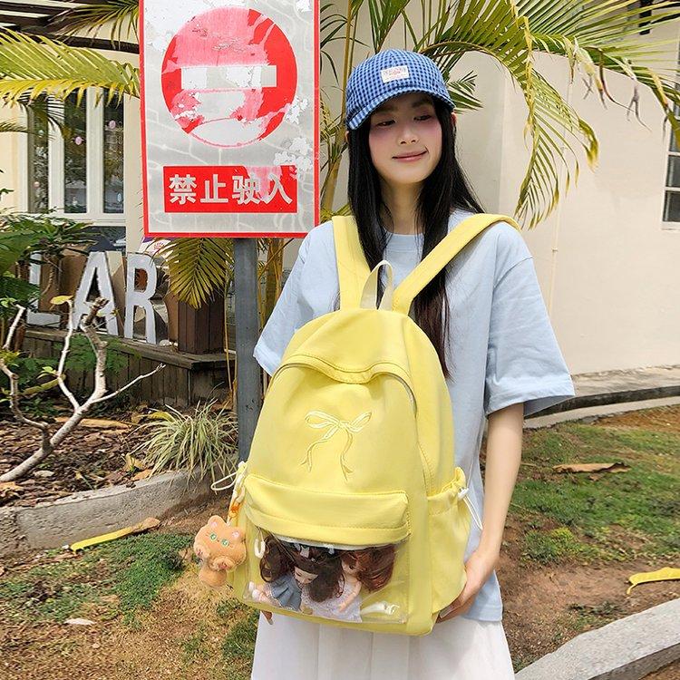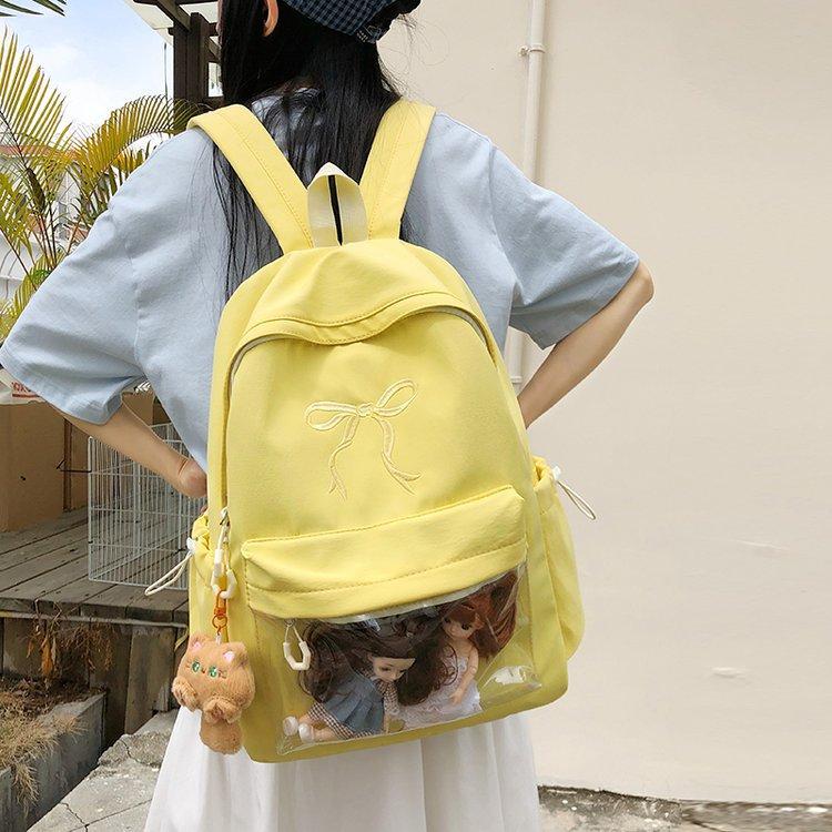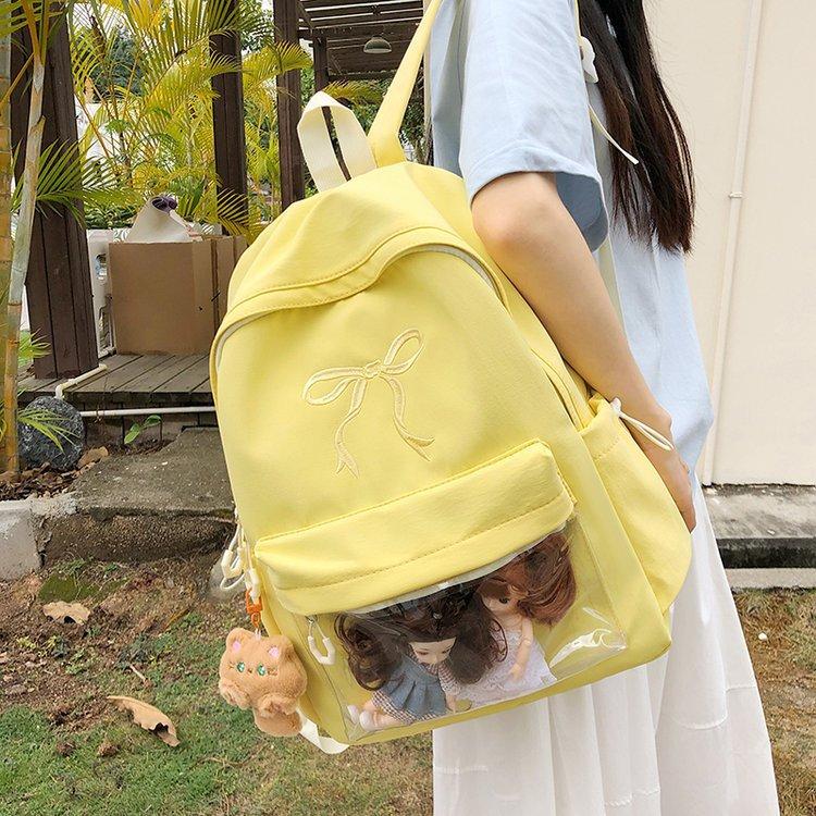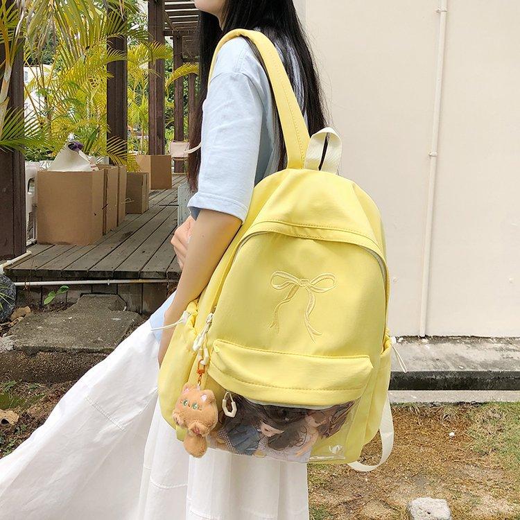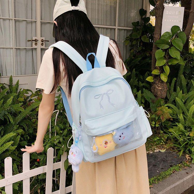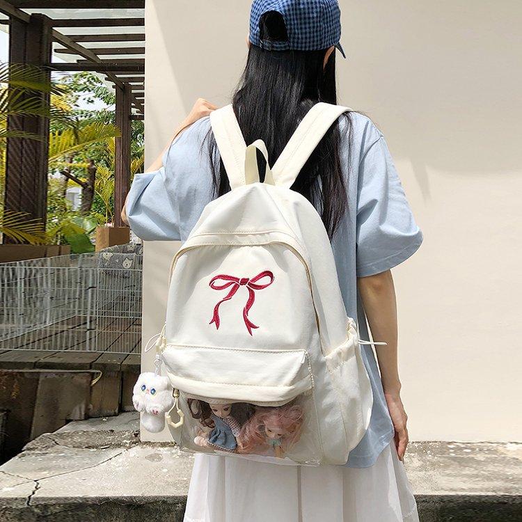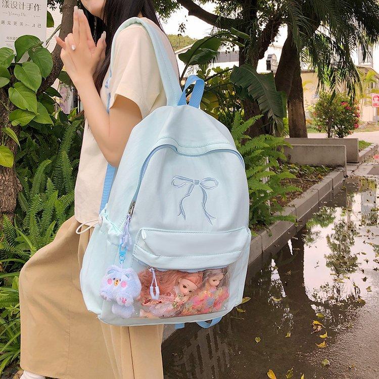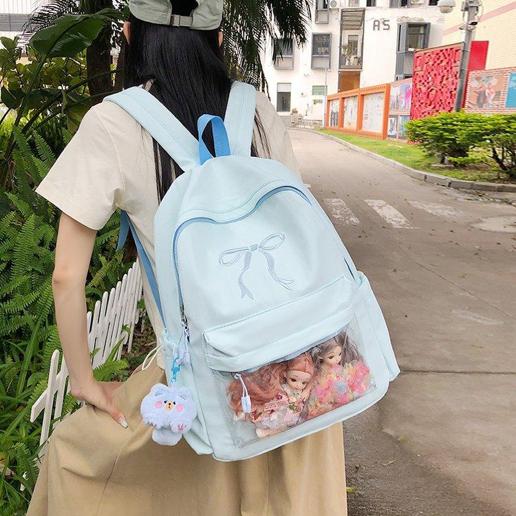 Bolsa de Dolor para Niña Versátil Japonesa de Gran Capacidad, Bolsa para Computadora para Estudiante, Mochila Escolar Linda con Lazo para Estudiante de Preparatoria